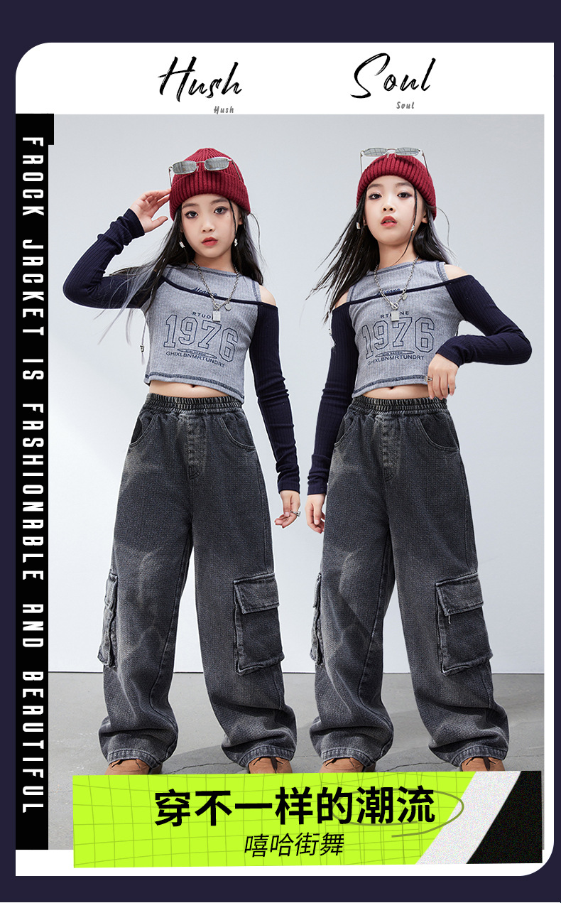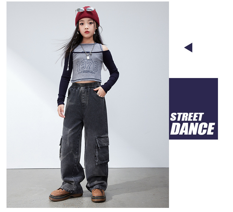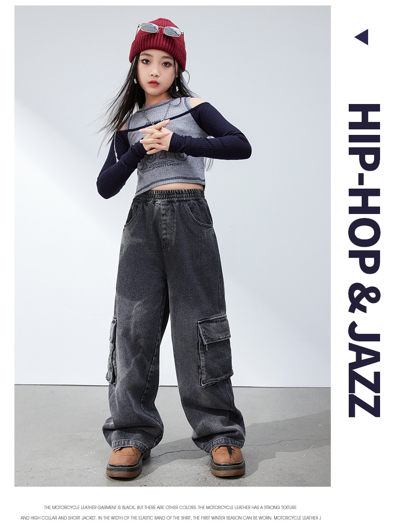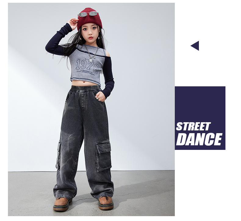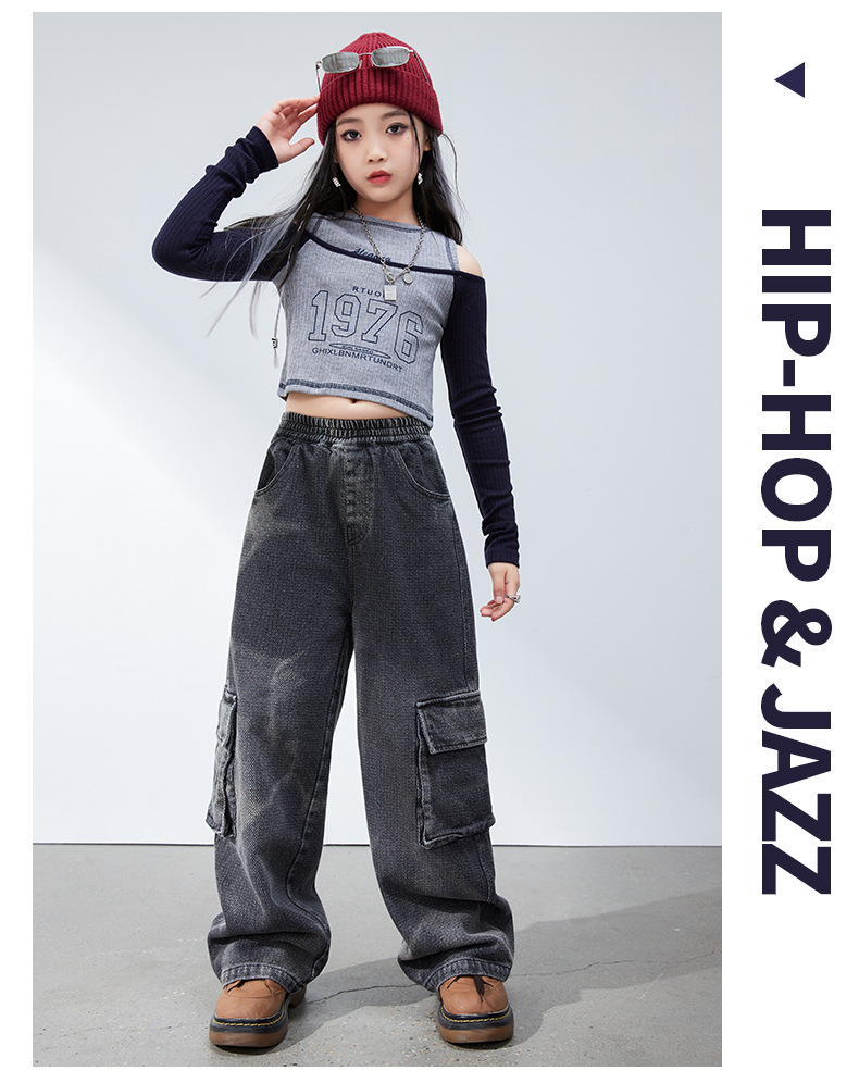 재즈 댄스 걸스 의상 봄 가을 힙합 스트리트 댄스 어린이 패션 의류 어린이 모델 쇼 6 월 1 일 공연스토어 가기