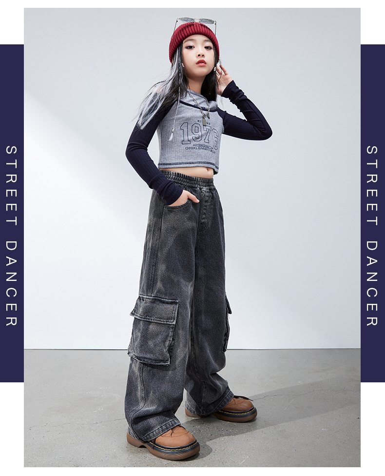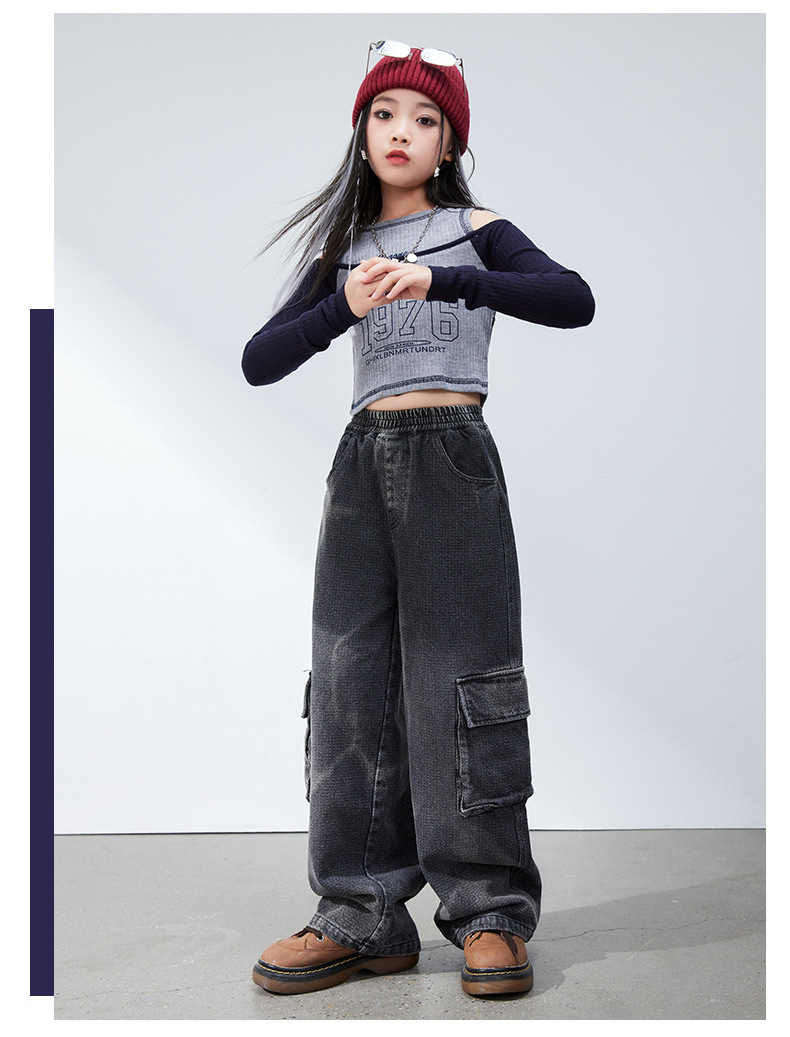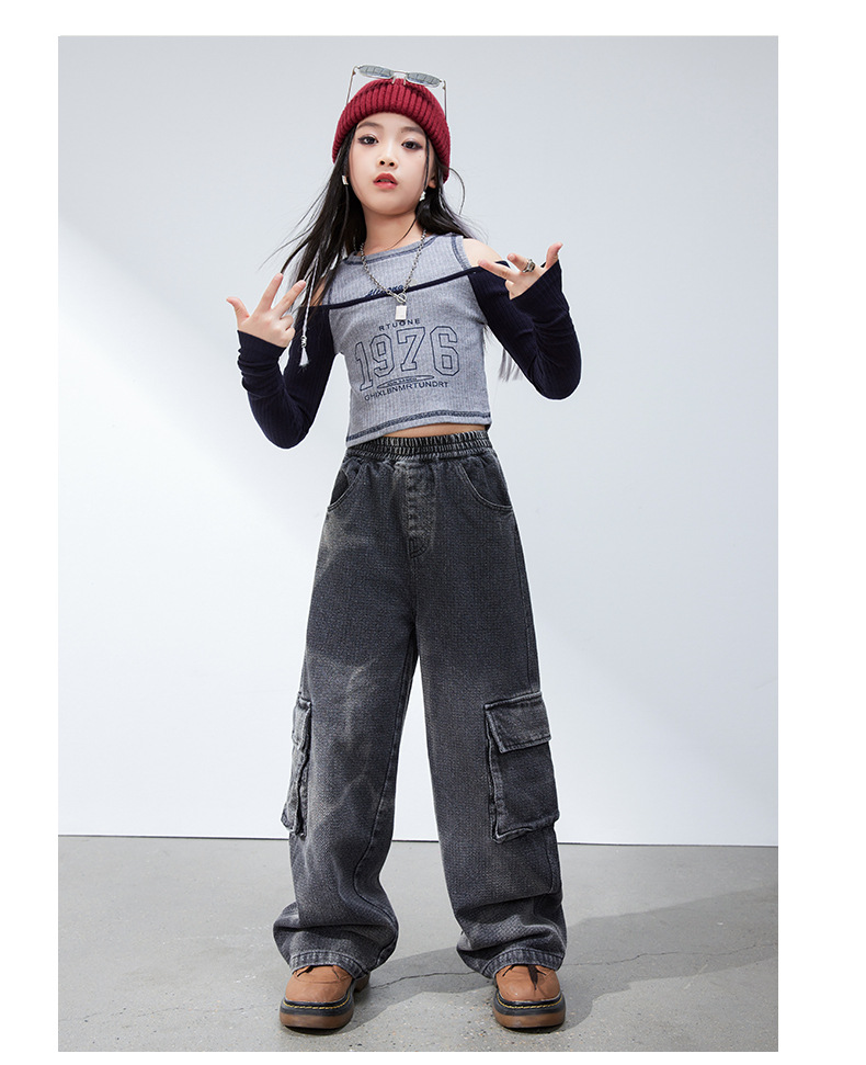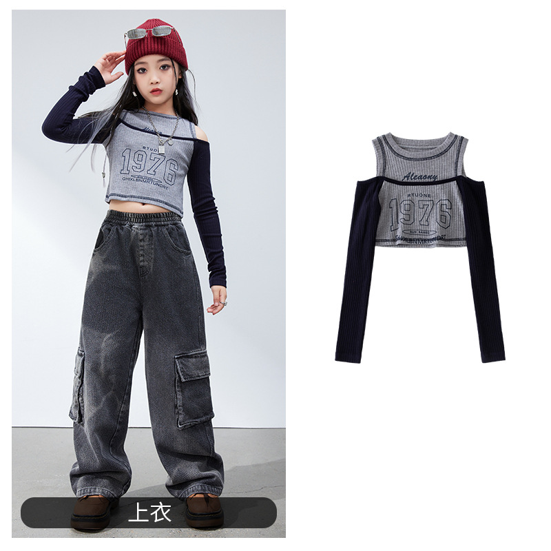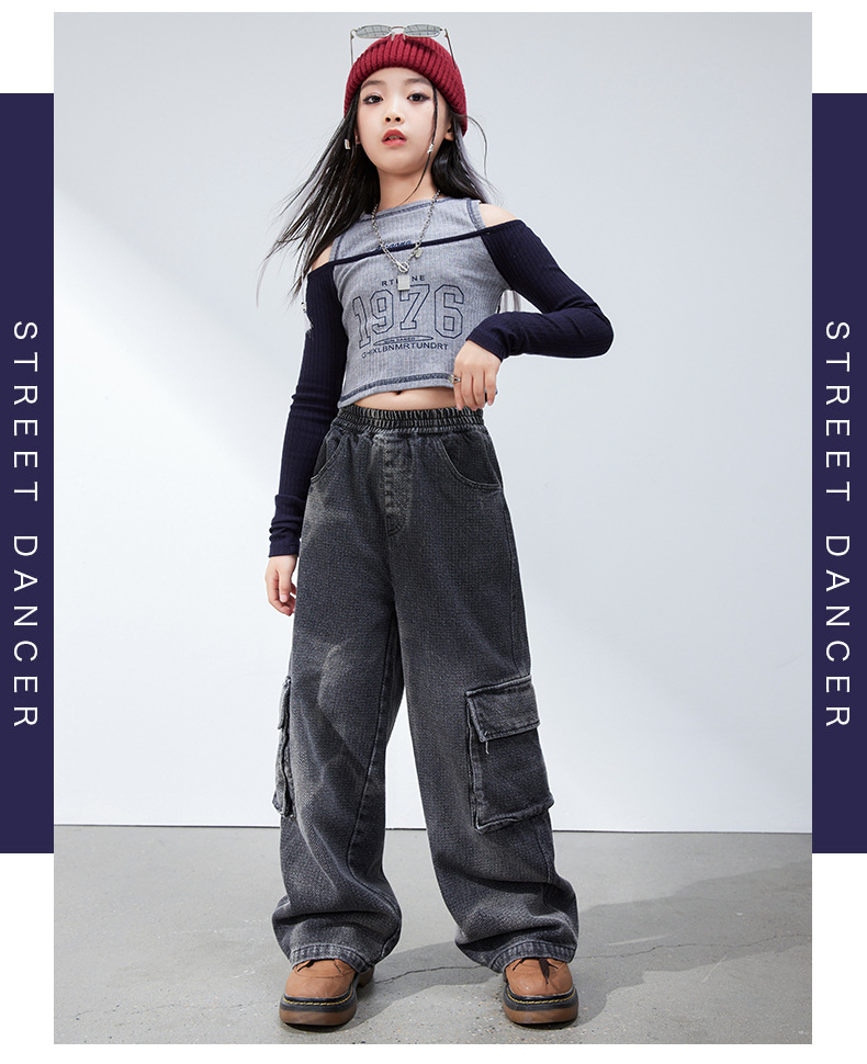 재즈 댄스 걸스 의상 봄 가을 힙합 스트리트 댄스 어린이 패션 의류 어린이 모델 쇼 6 월 1 일 공연스토어 가기