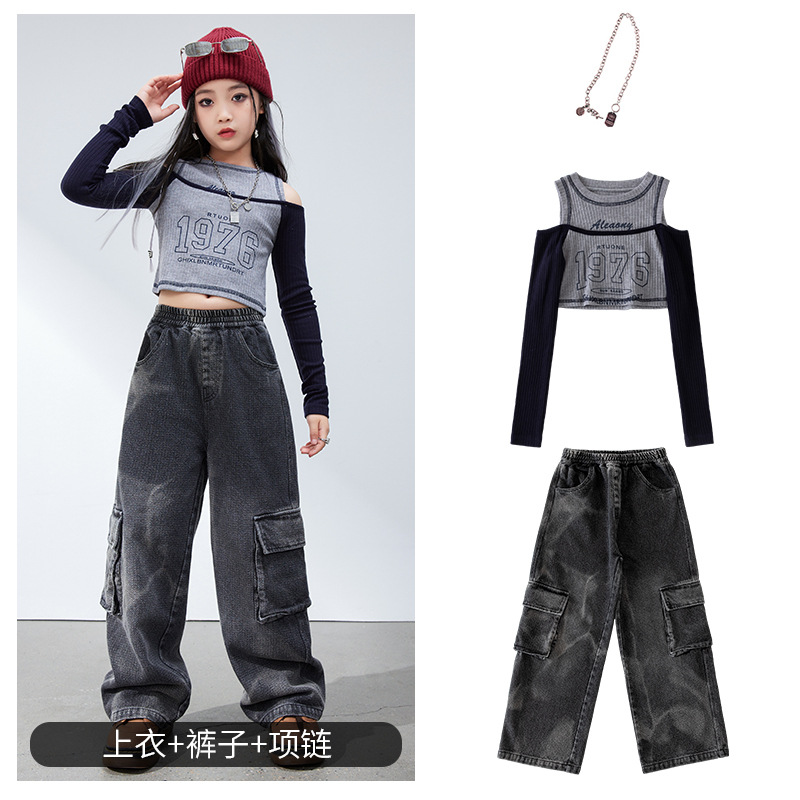 재즈 댄스 걸스 의상 봄 가을 힙합 스트리트 댄스 어린이 패션 의류 어린이 모델 쇼 6 월 1 일 공연