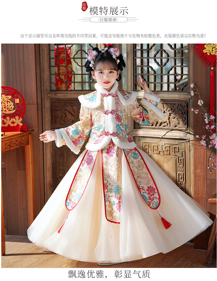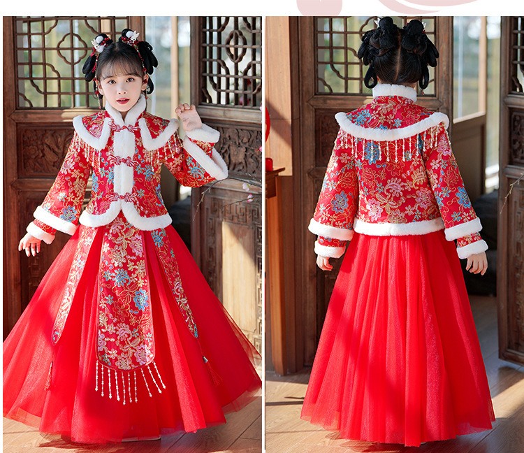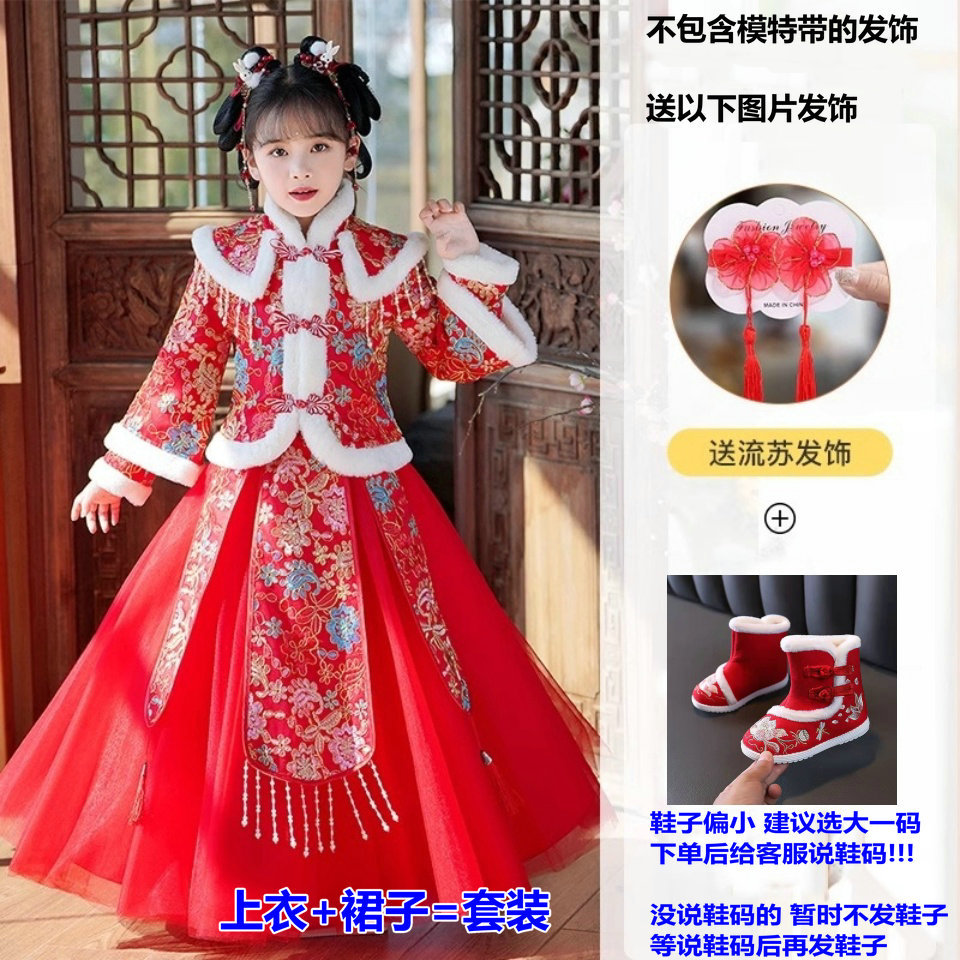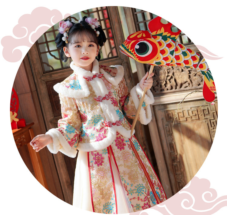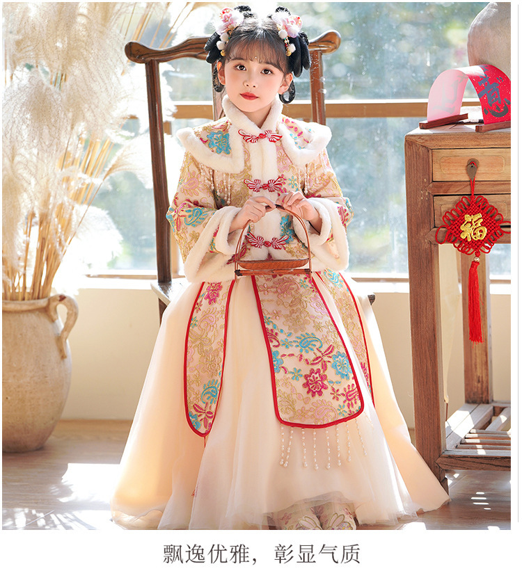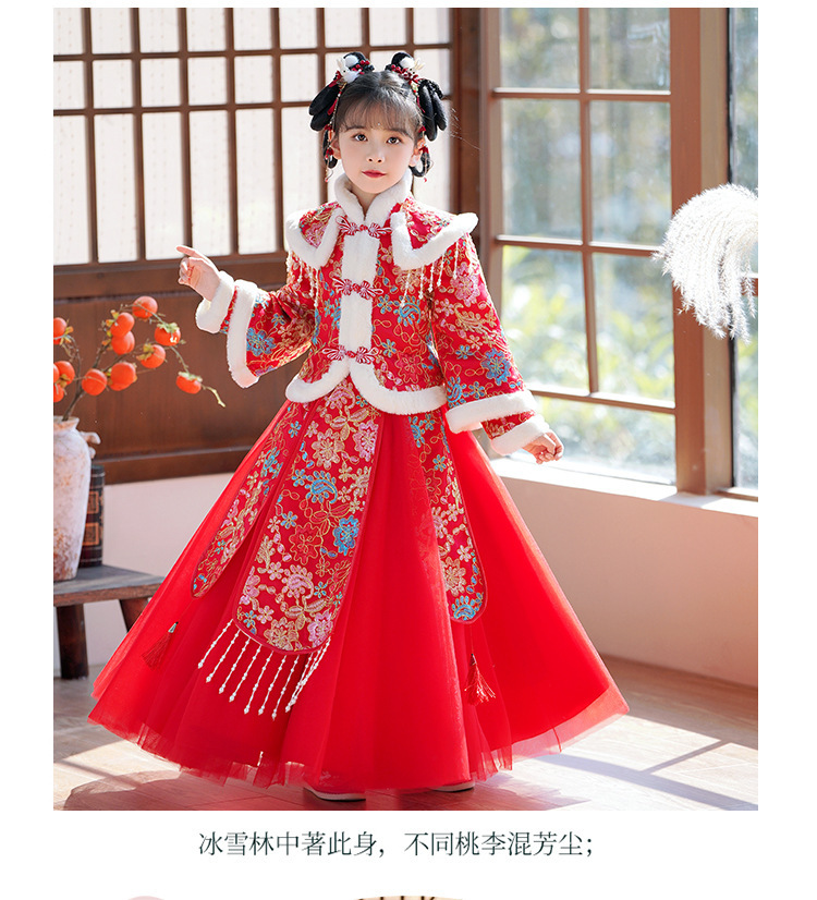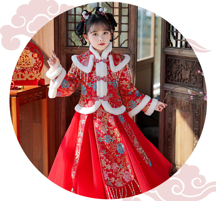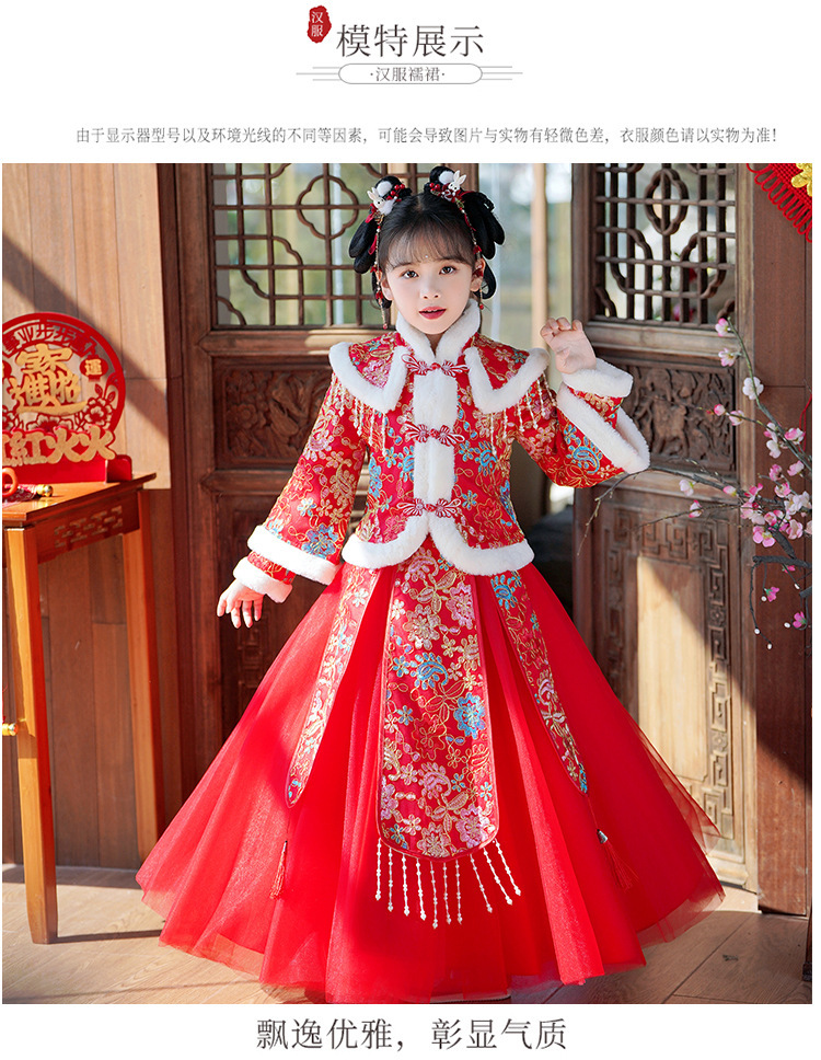 한푸 소녀들의 겨울 옷 겨울 새 중국 고대 옷이 기모 어린이 탕 세트 신년 의류스토어 가기