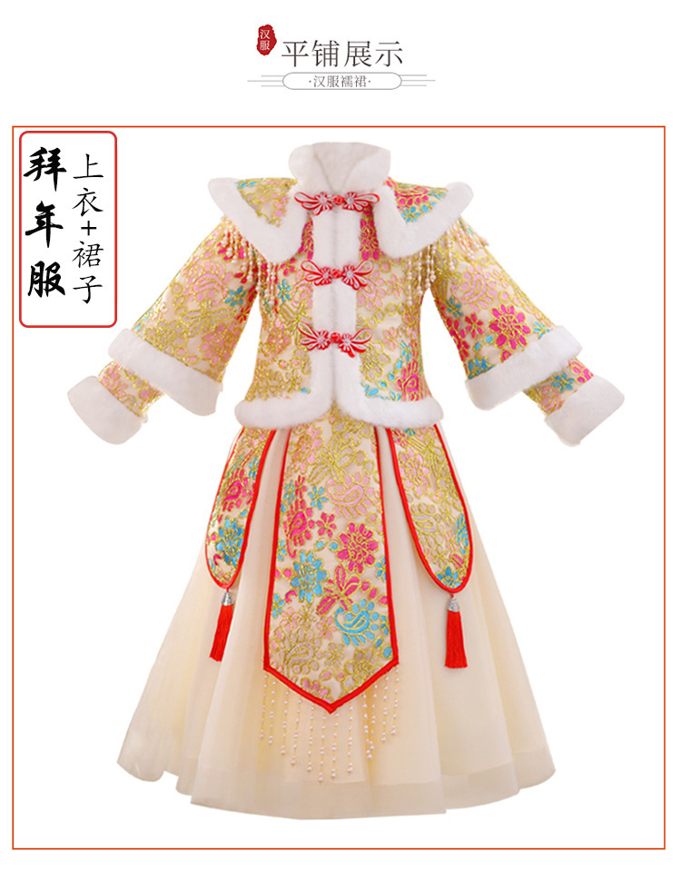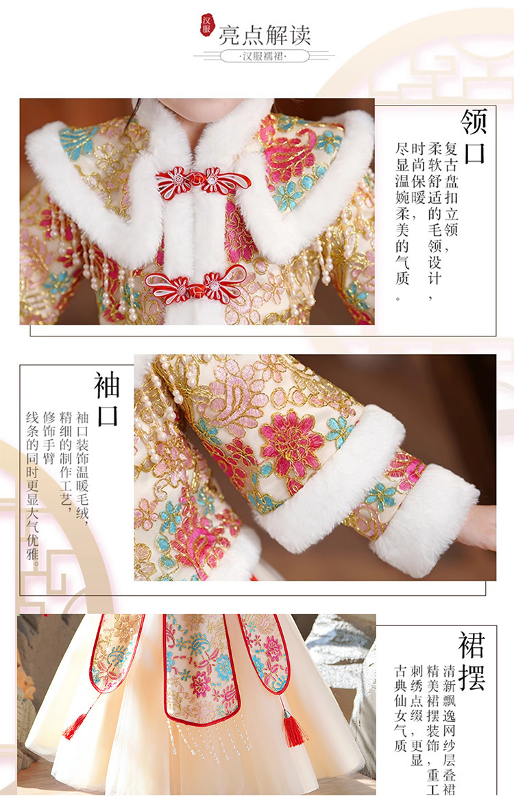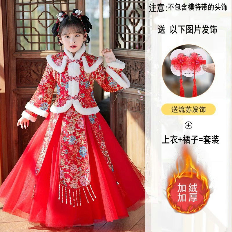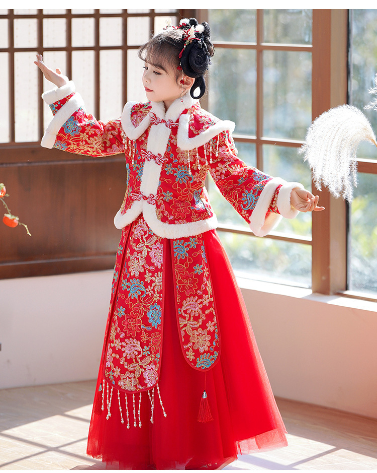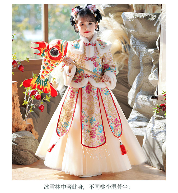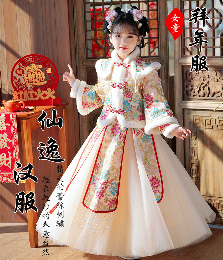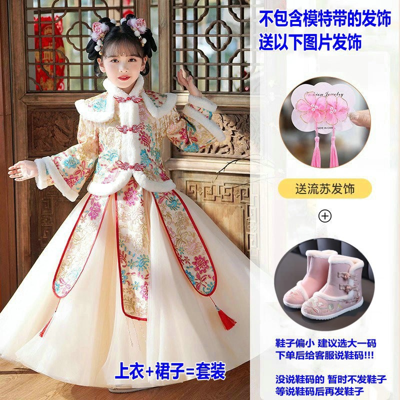 한푸 소녀들의 겨울 옷 겨울 새 중국 고대 옷이 기모 어린이 탕 세트 신년 의류스토어 가기