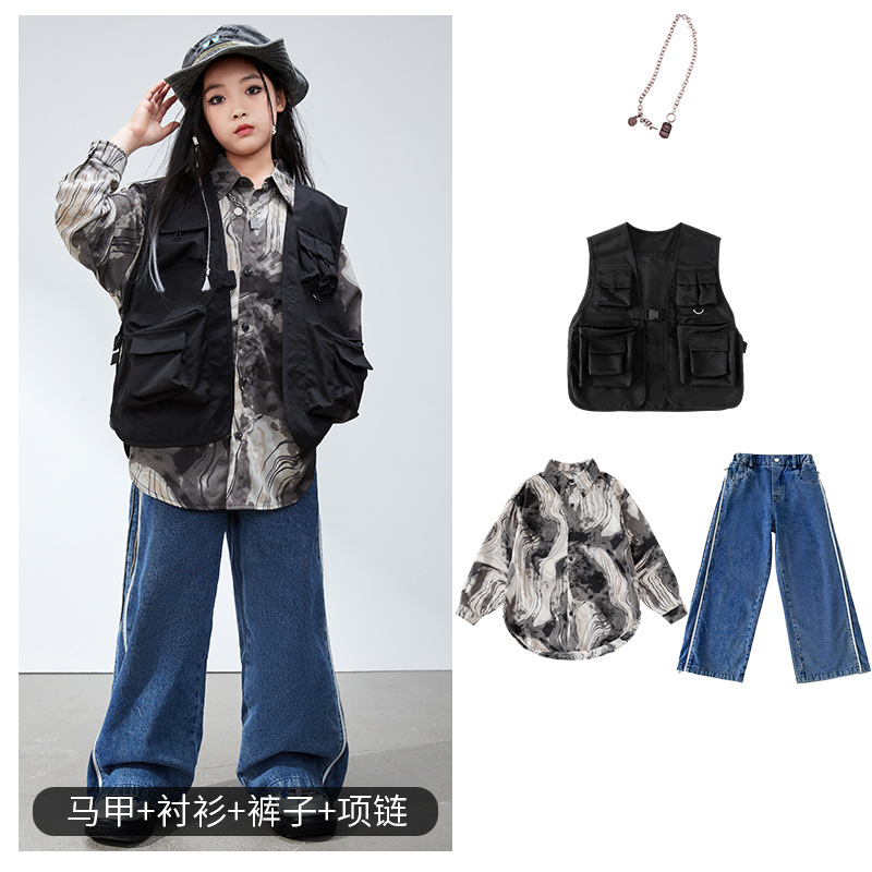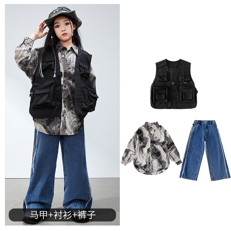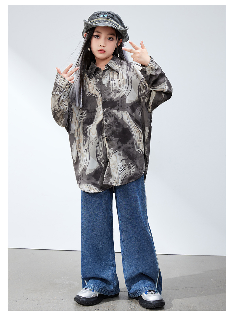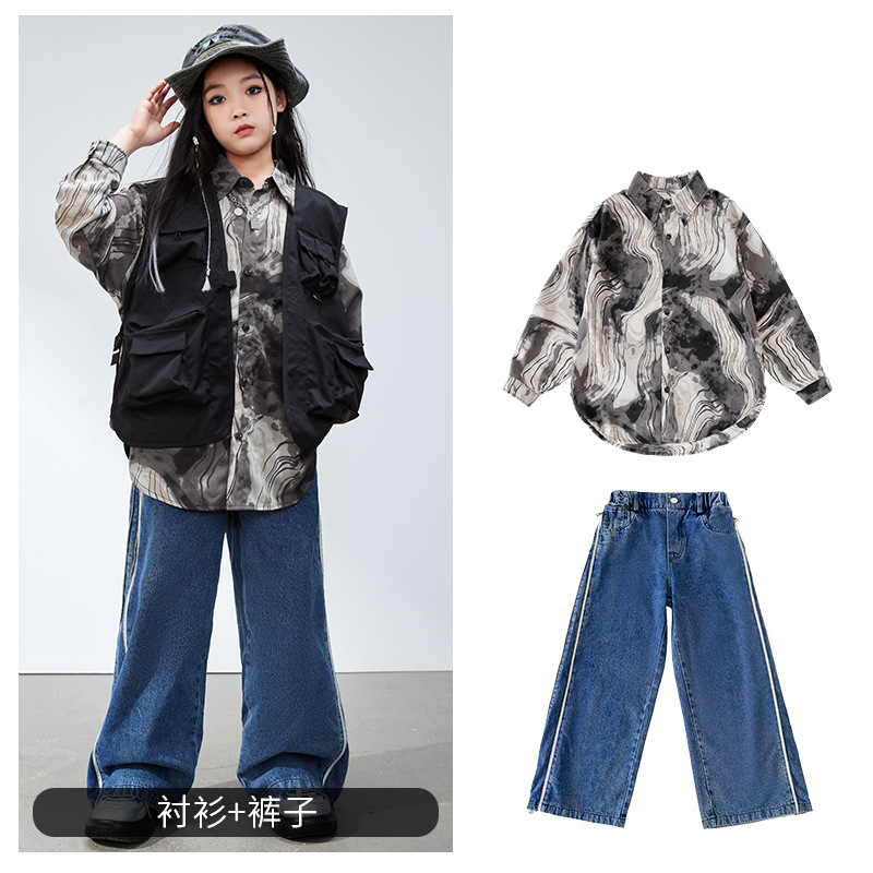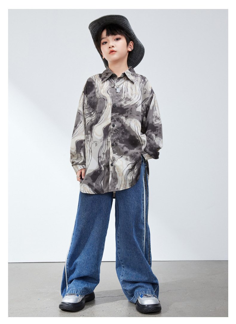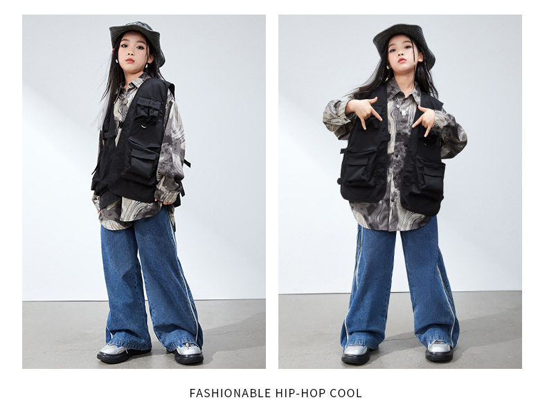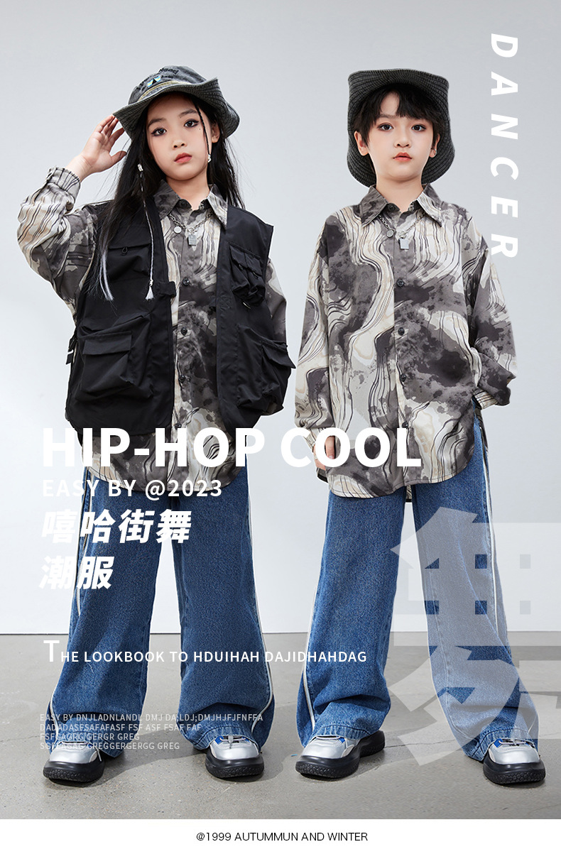 어린이 힙합 댄스 6 월 1 일 코인 소년과 소녀 스트리트 댄스 어린이 패션 옷 쿨 잉크 페인팅 셔츠 세트스토어 가기