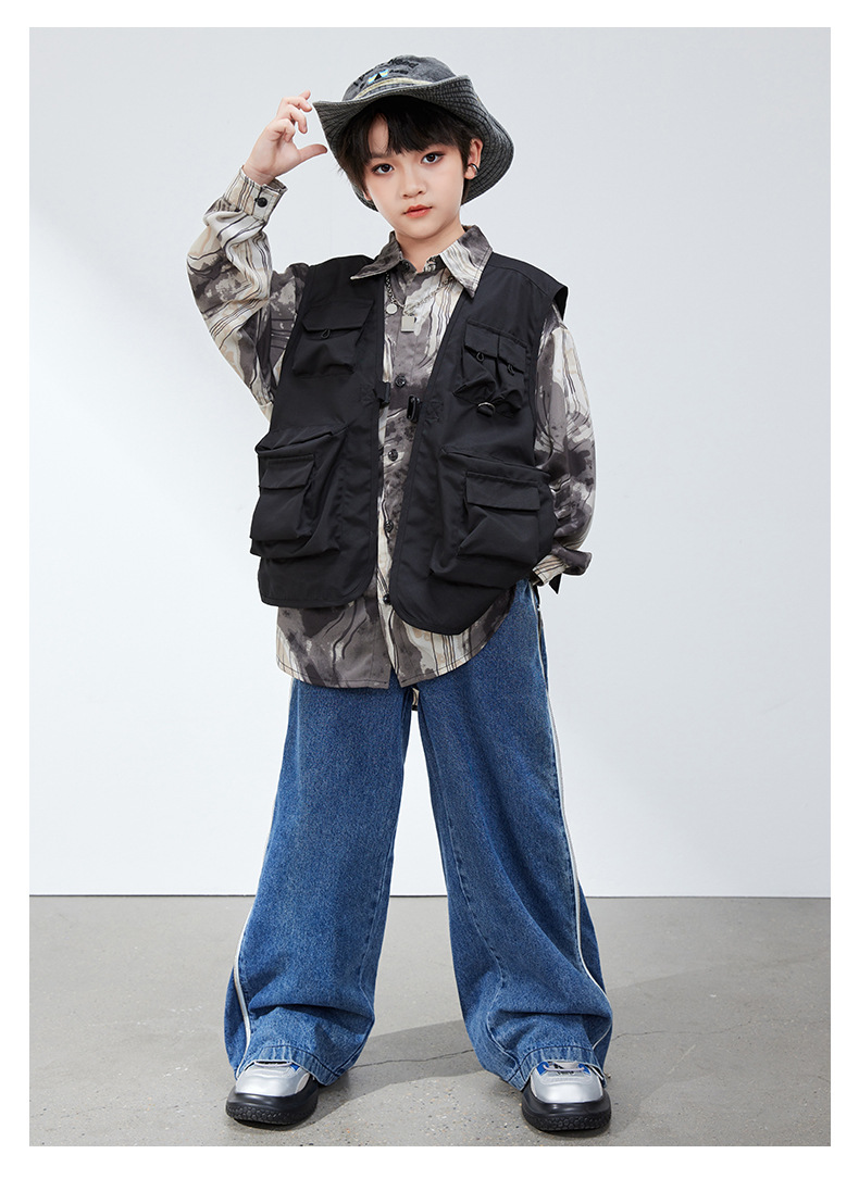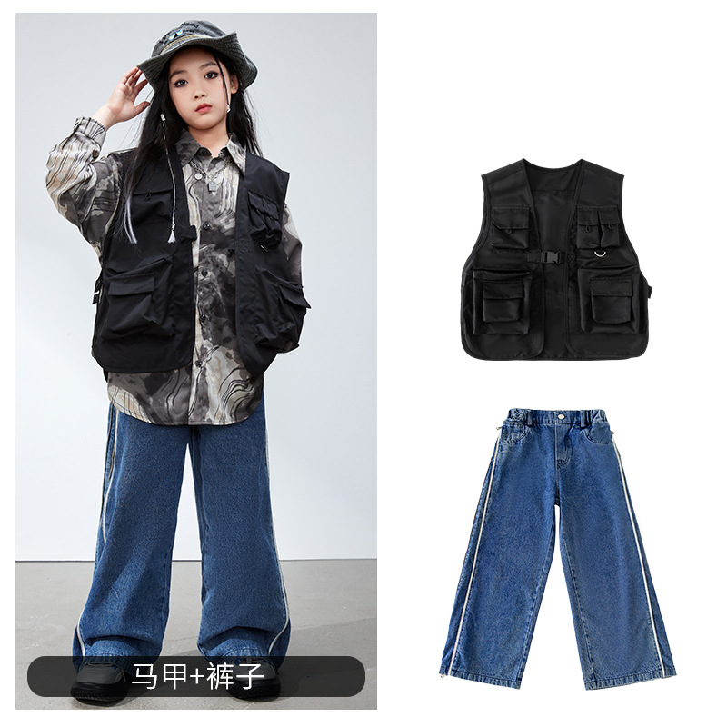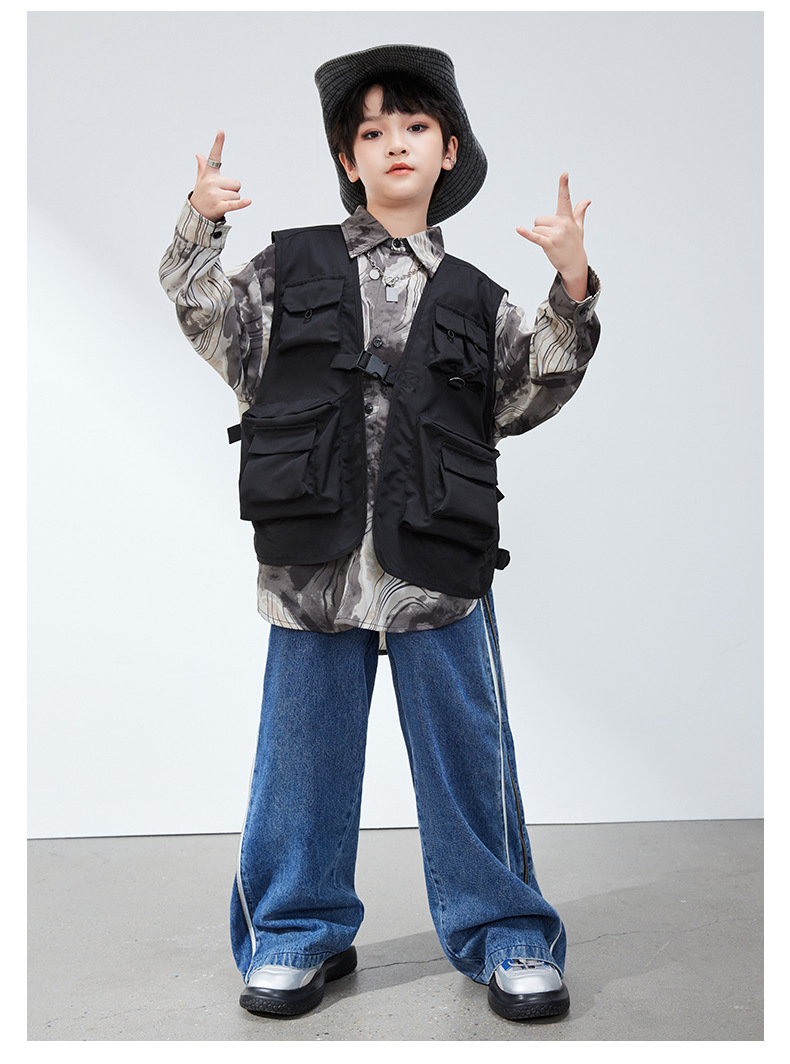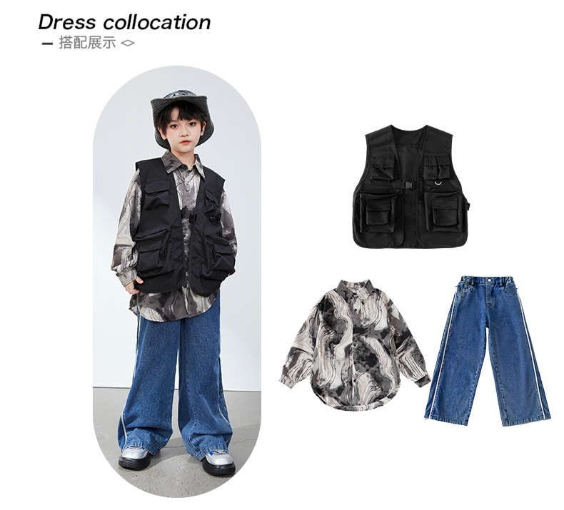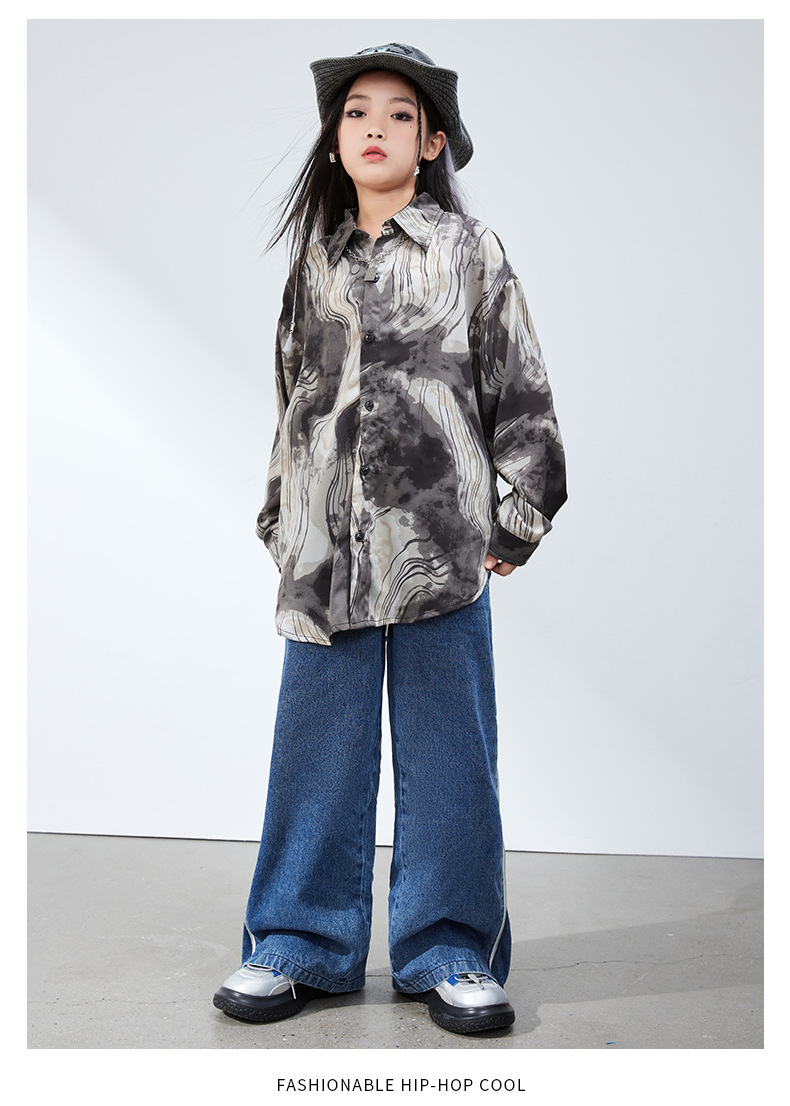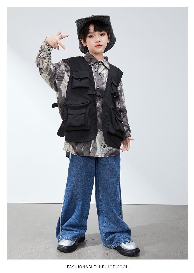 어린이 힙합 댄스 6 월 1 일 코인 소년과 소녀 스트리트 댄스 어린이 패션 옷 쿨 잉크 페인팅 셔츠 세트스토어 가기