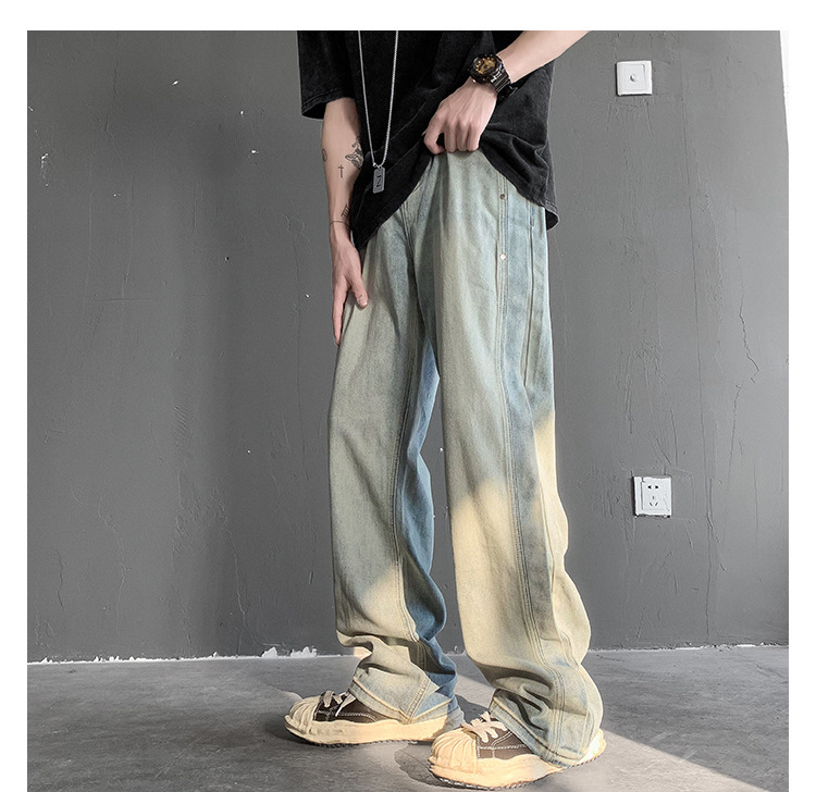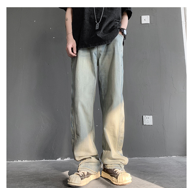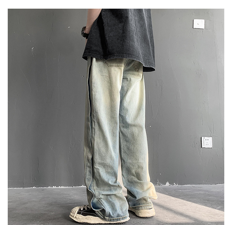 레트로 스티칭 청바지 남성 여름 하이 스트리트 패션 브랜드 스트레이트 바지, 다재다능한 홍콩 스타일 와이드 레그 걸레 바지스토어 가기