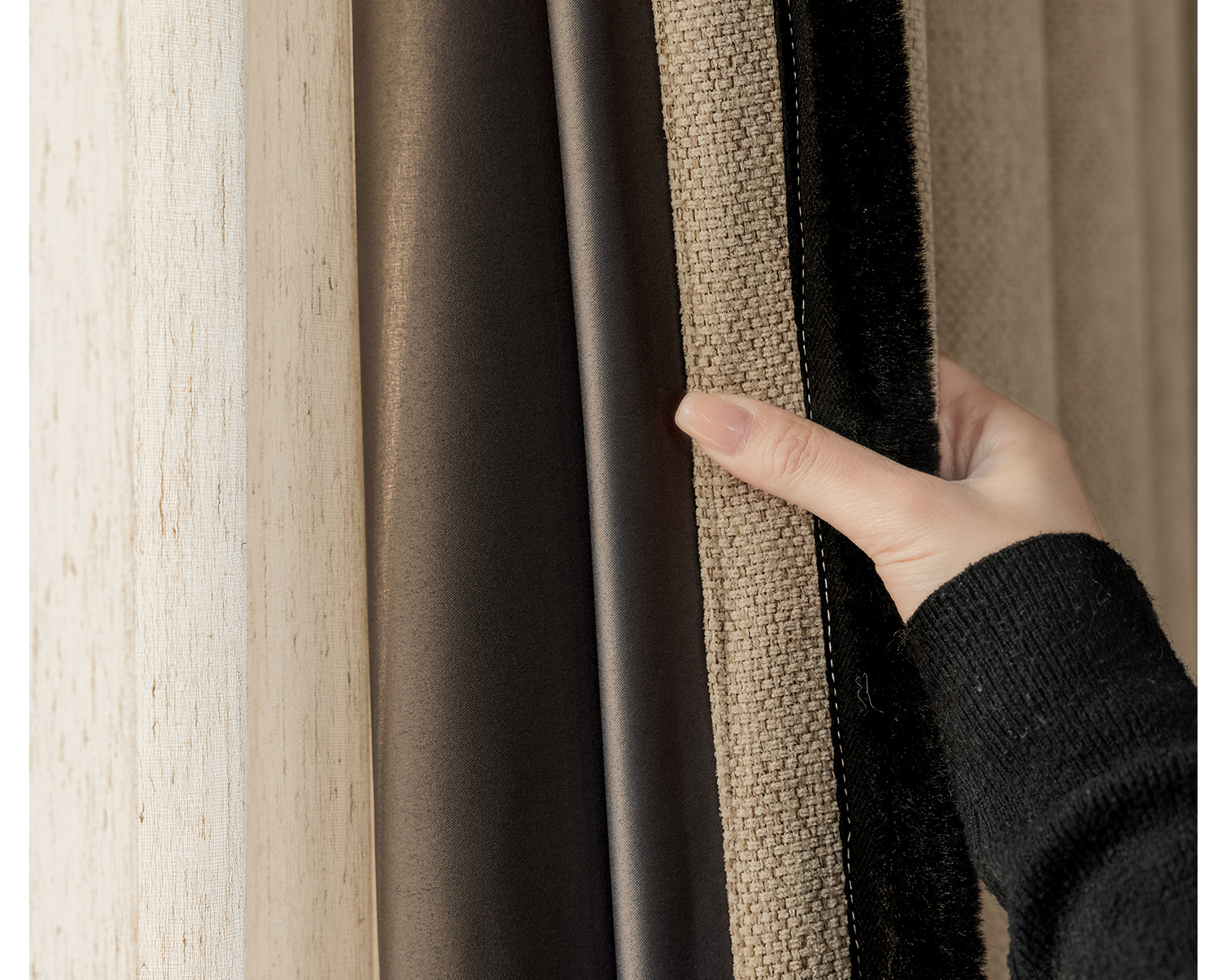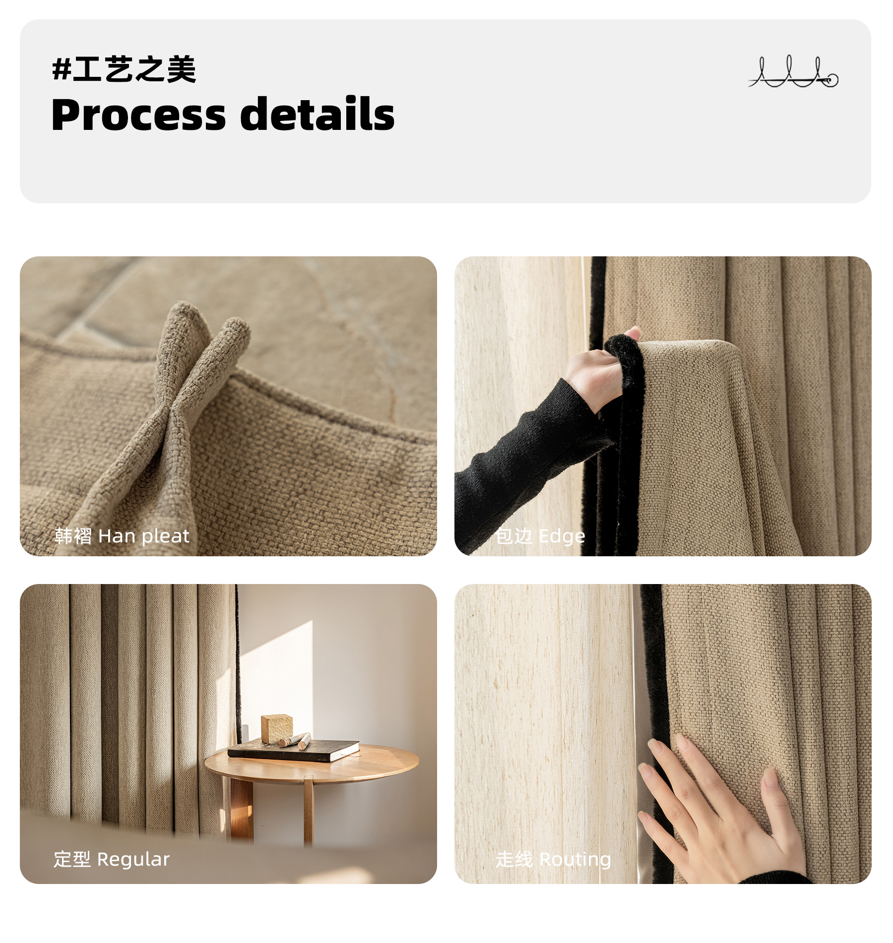 가벼운 프랑스 중부 고대 난양 미국 고급 검은 색 원사 염색 Chenille 거실 두꺼운 크림면과 리넨 커튼