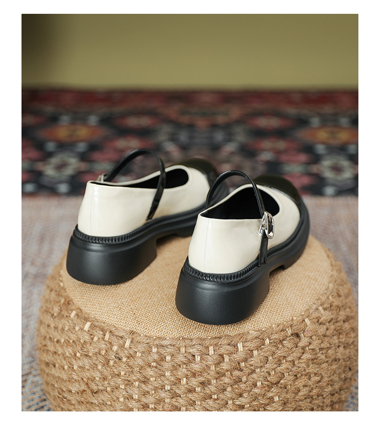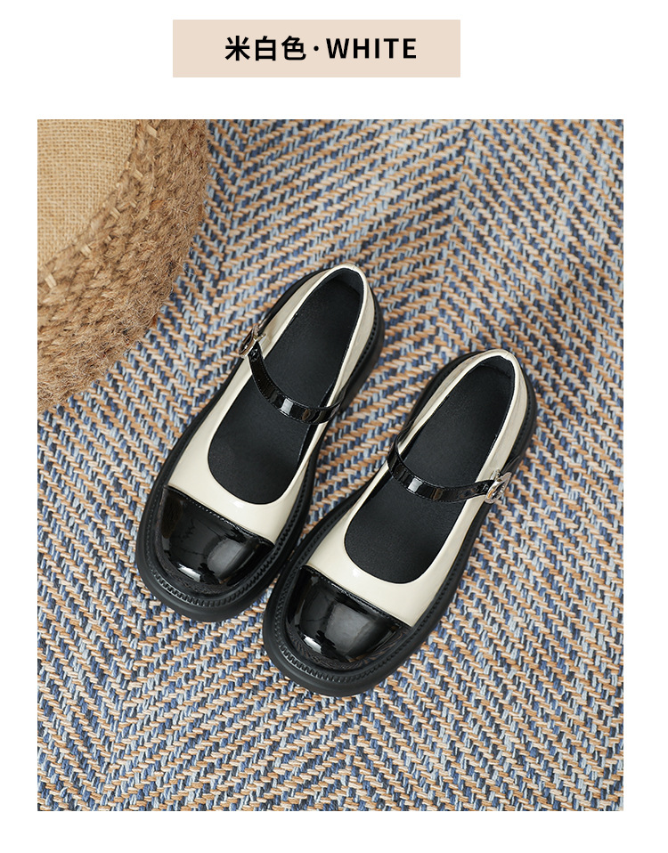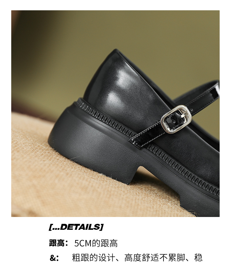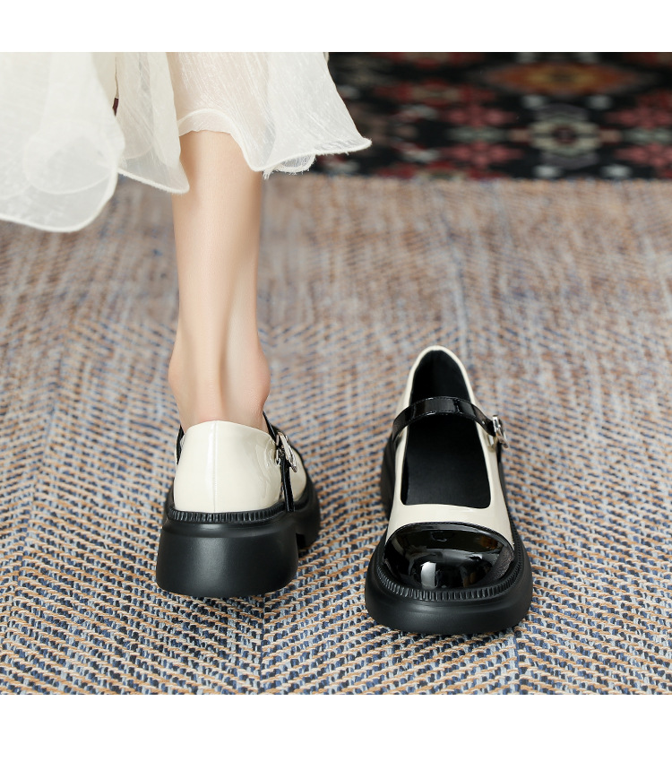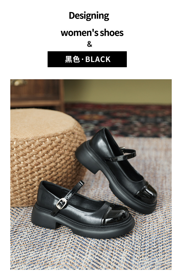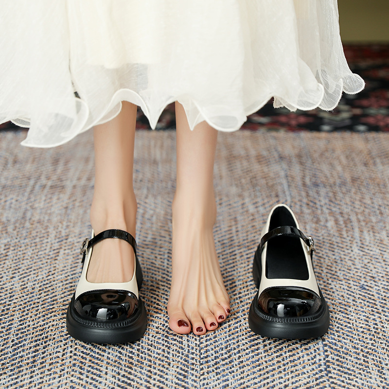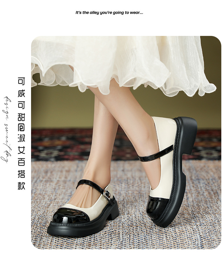 메리 제인 신발 샤넬 스타일 여성 2024 봄 새로운 얕은 입 복고풍 컬러 매칭 작은 가죽 신발 달콤한 청키 힐 여성 신발스토어 가기