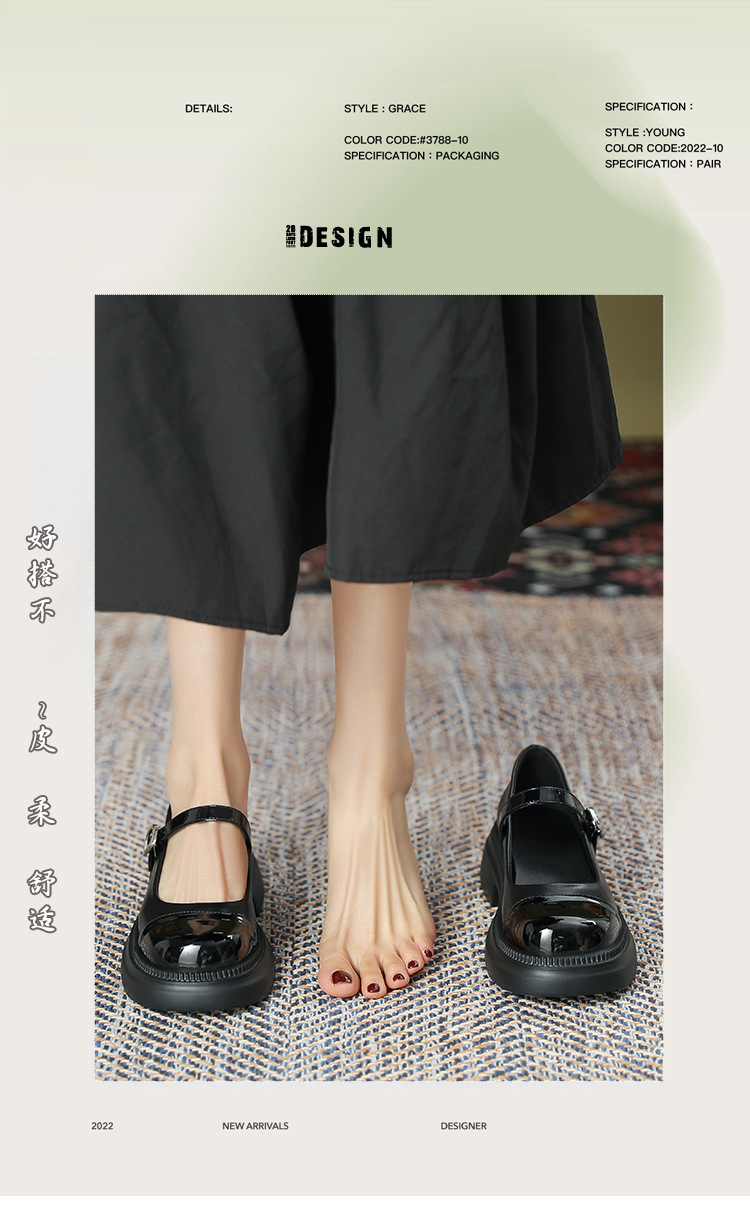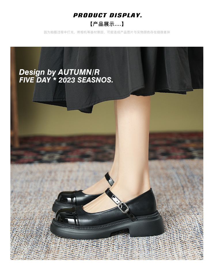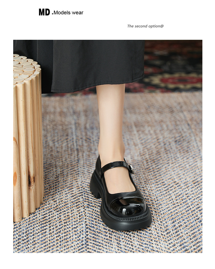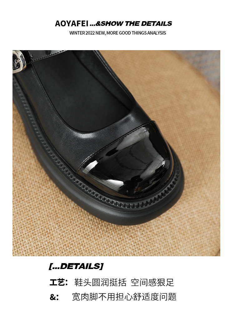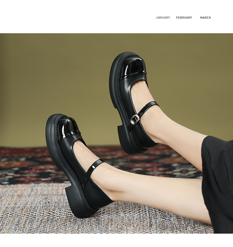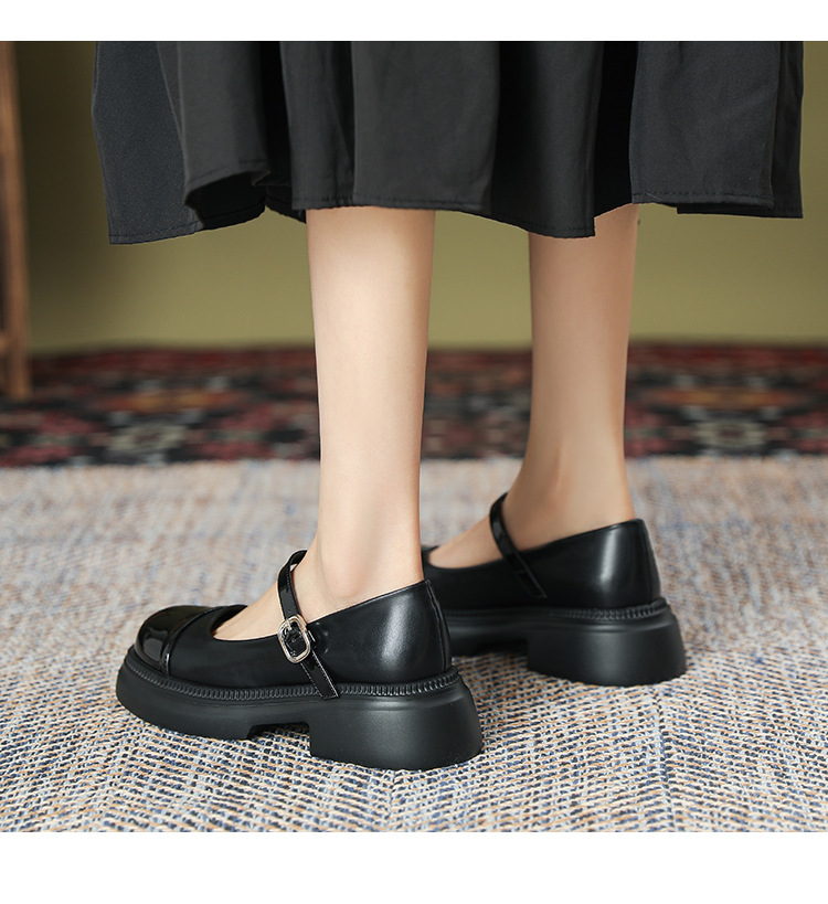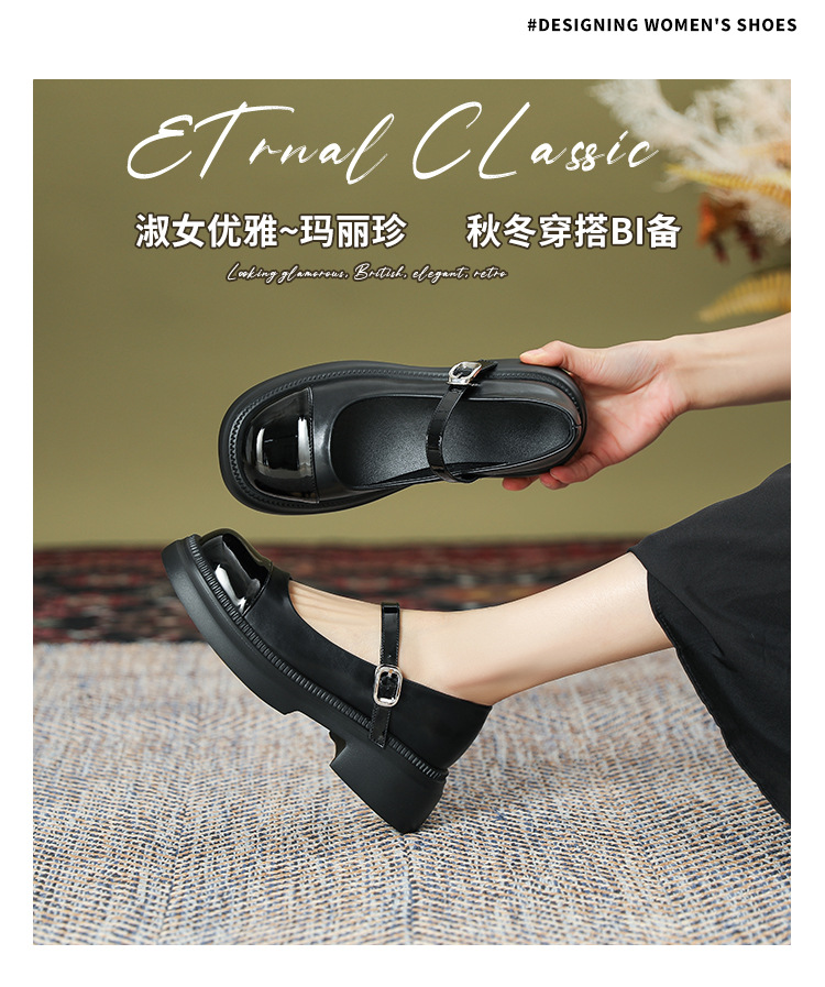 메리 제인 신발 샤넬 스타일 여성 2024 봄 새로운 얕은 입 복고풍 컬러 매칭 작은 가죽 신발 달콤한 청키 힐 여성 신발스토어 가기