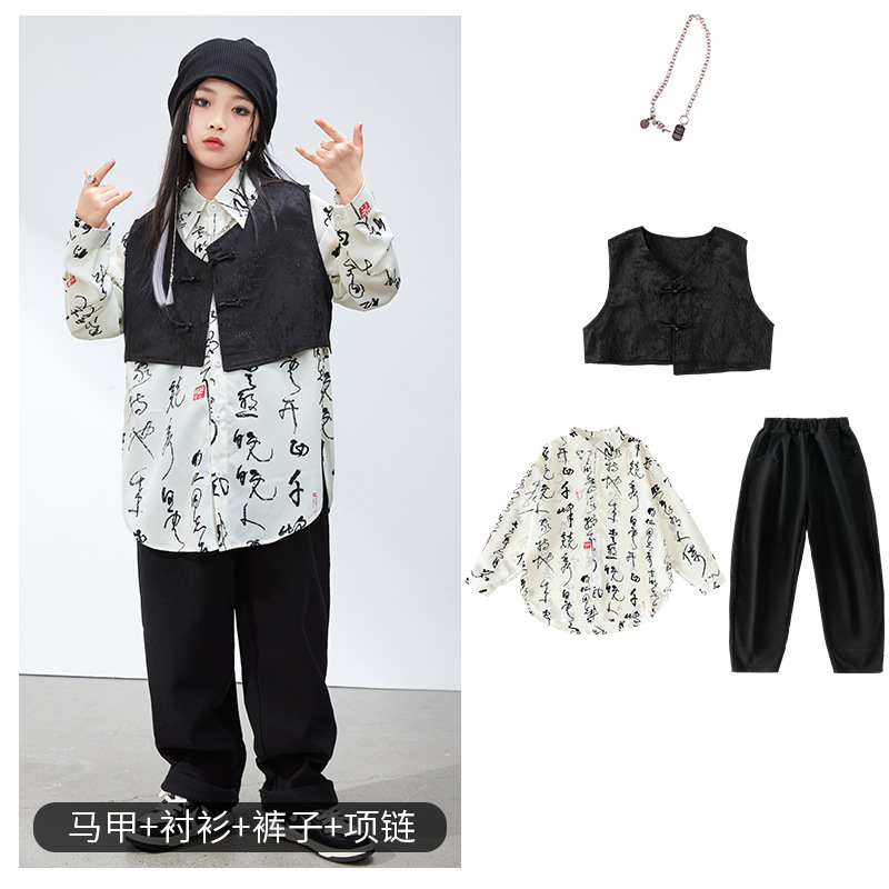 힙합 어린이 패션 원피스 봄과 가을 힙합 힙합 소년 소녀 중국 스타일 세트 어린이 무대 6 월 1 일 원피스