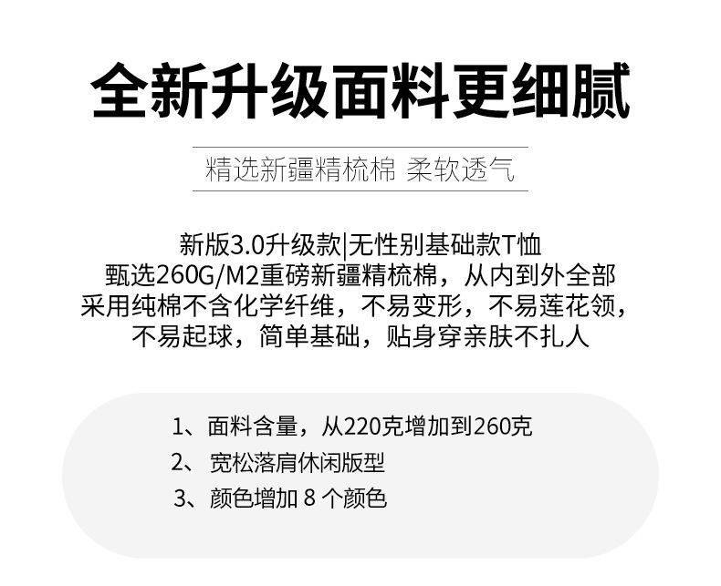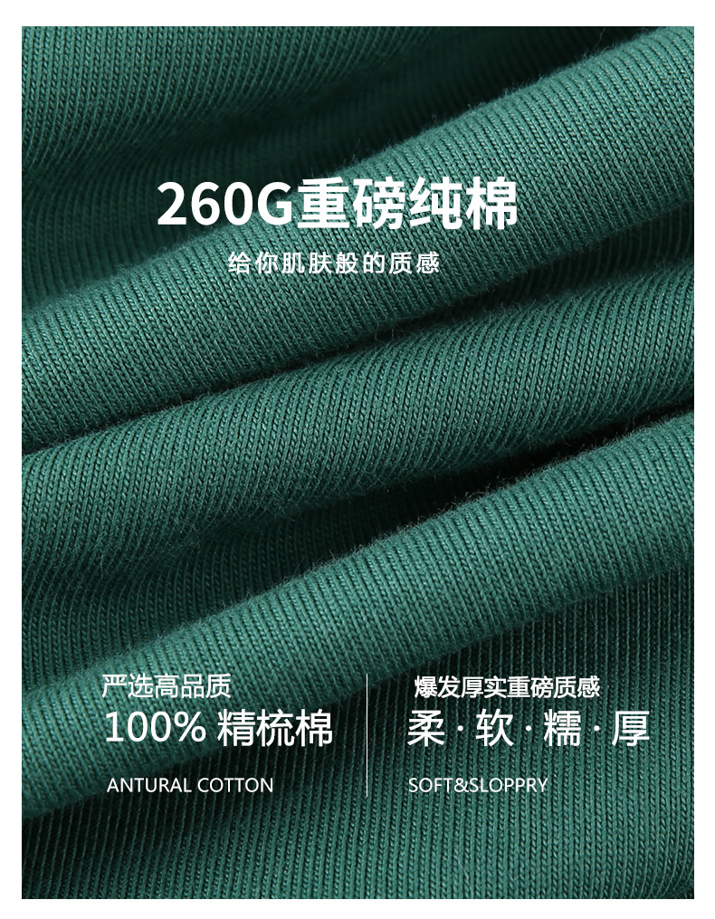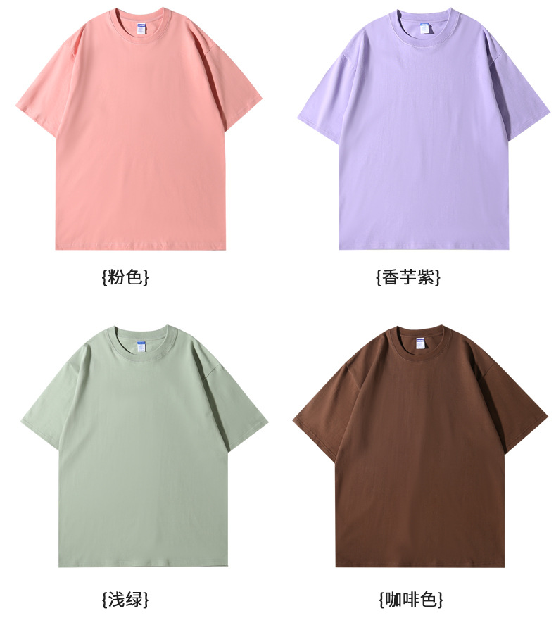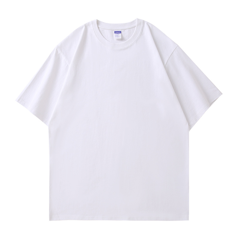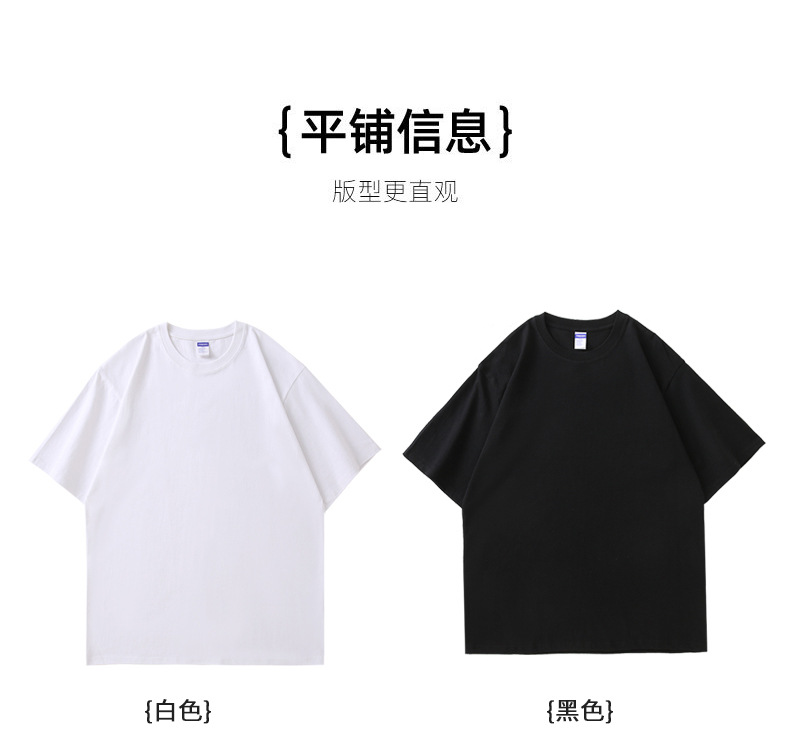 260g 무거운 면 짧은 소매 티셔츠 둥근 목 큰 크기 느슨한 기본 흰색 색상 남성과 여성의 반 소매 배치