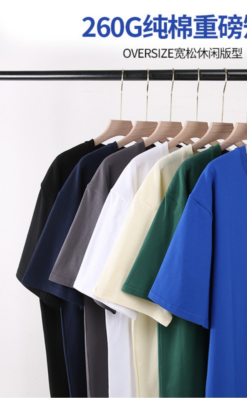 260g 무거운 면 짧은 소매 티셔츠 둥근 목 큰 크기 느슨한 기본 흰색 색상 남성과 여성의 반 소매 배치스토어 가기