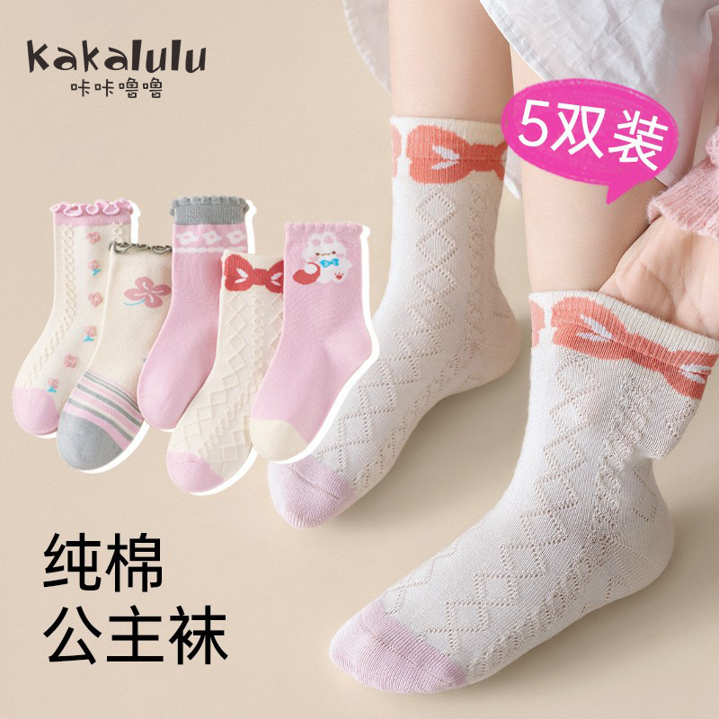 • TW76 - 사랑스러운 공주 - 5켤레 (10A 항균 무봉제 면 양말)