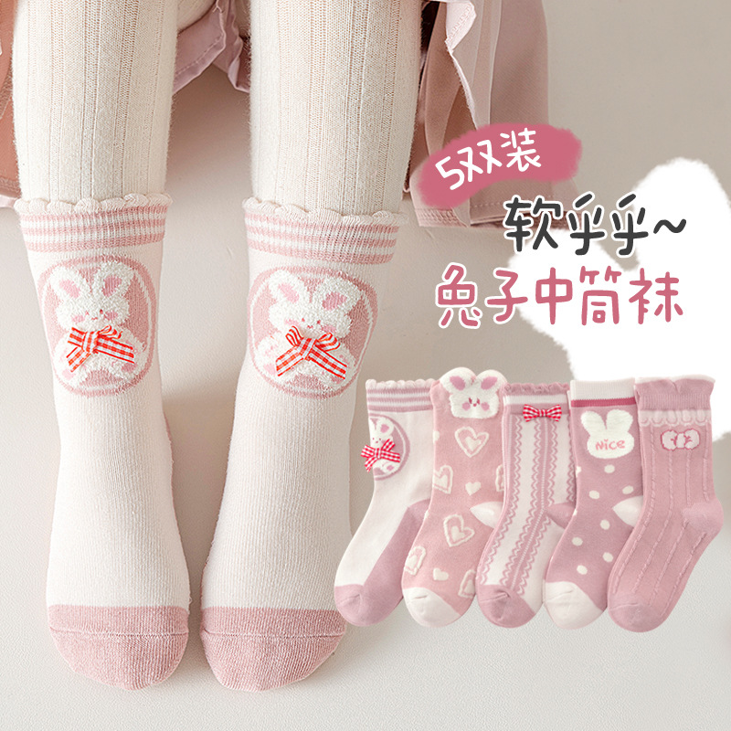 • K70 - 귀여운 토끼 가을 겨울 - 5켤레 [10A 항균 뼈없는 면양말]