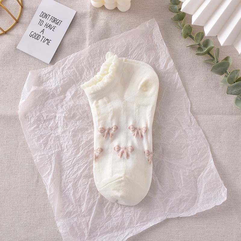 여름 얇은 흰색 양말 여성의 발목 양말 순수한면 통기성 얕은 입 양말 일본 JK 로리타 버블 입 레이스