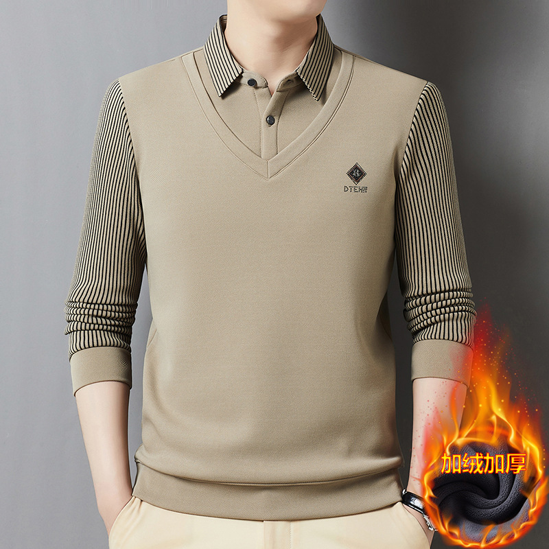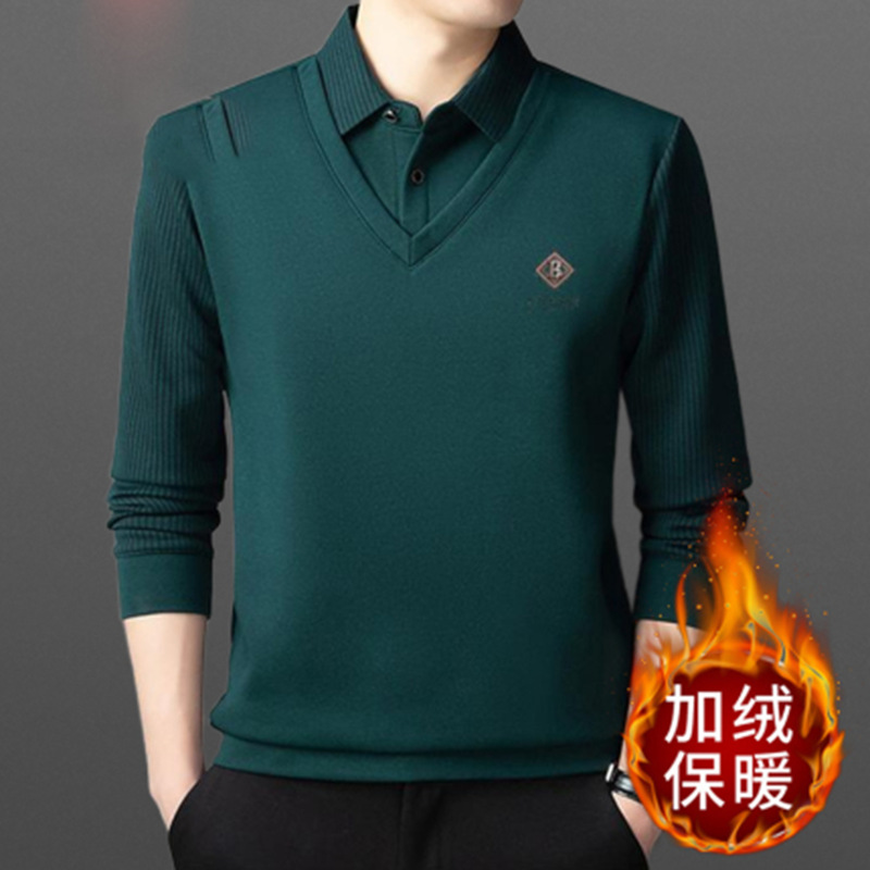 전자 상거래 폭발 겨울 새로운 남성 기모 두꺼운 최고 가짜 투피스 긴팔 티셔츠 Lapp 따뜻한베이스 니트웨어