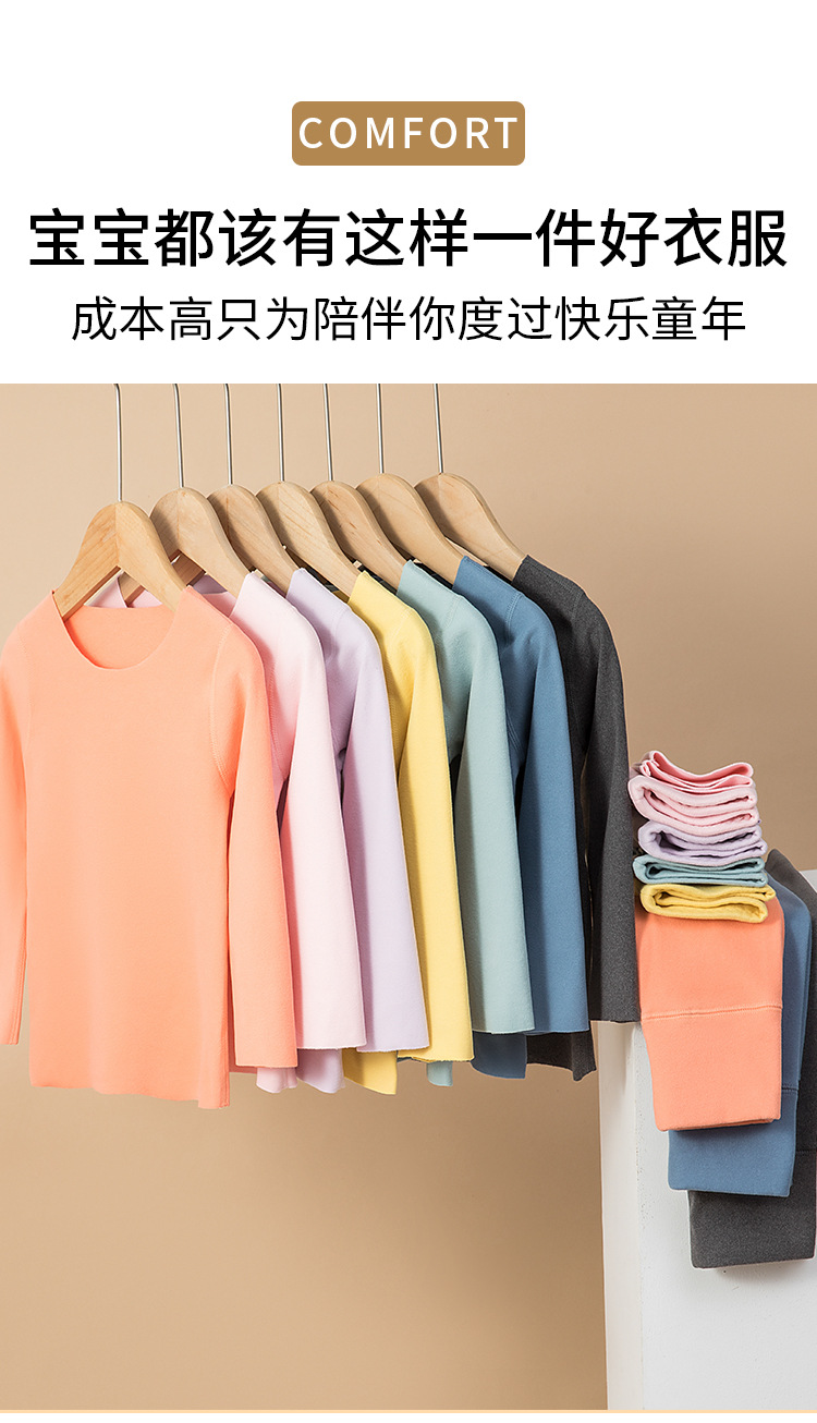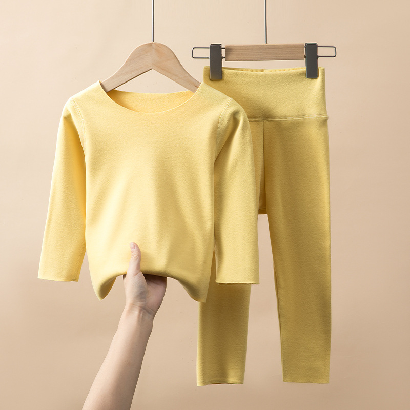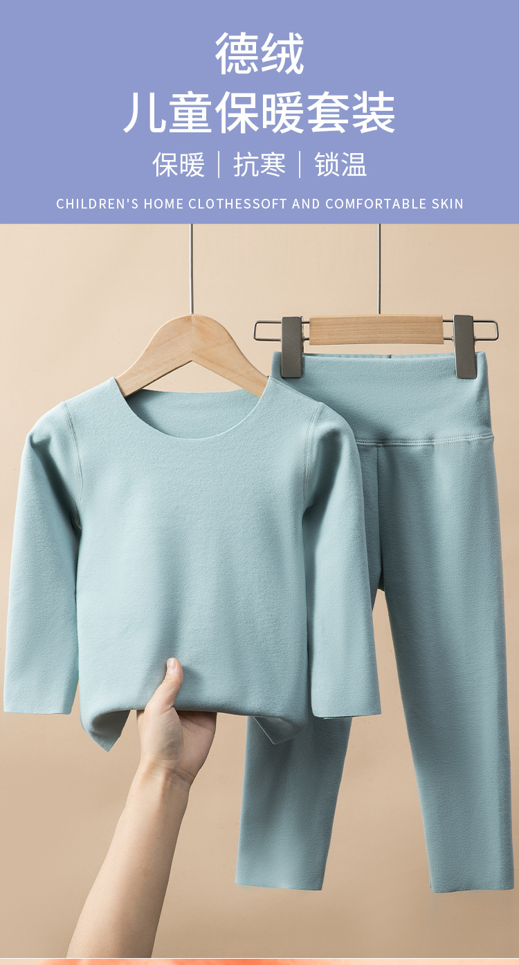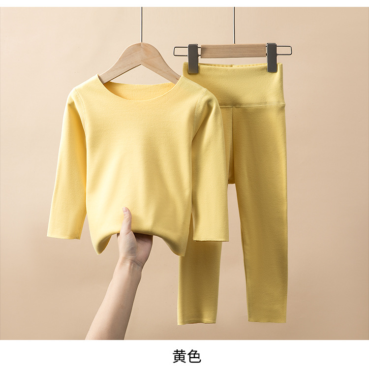 소년의 가을과 겨울 드 벨벳 열 속옷 기모 소녀 가을 옷 긴 바지 높은 허리 배꼽 보호 잠옷 홈 착용 투피스 세트스토어 가기