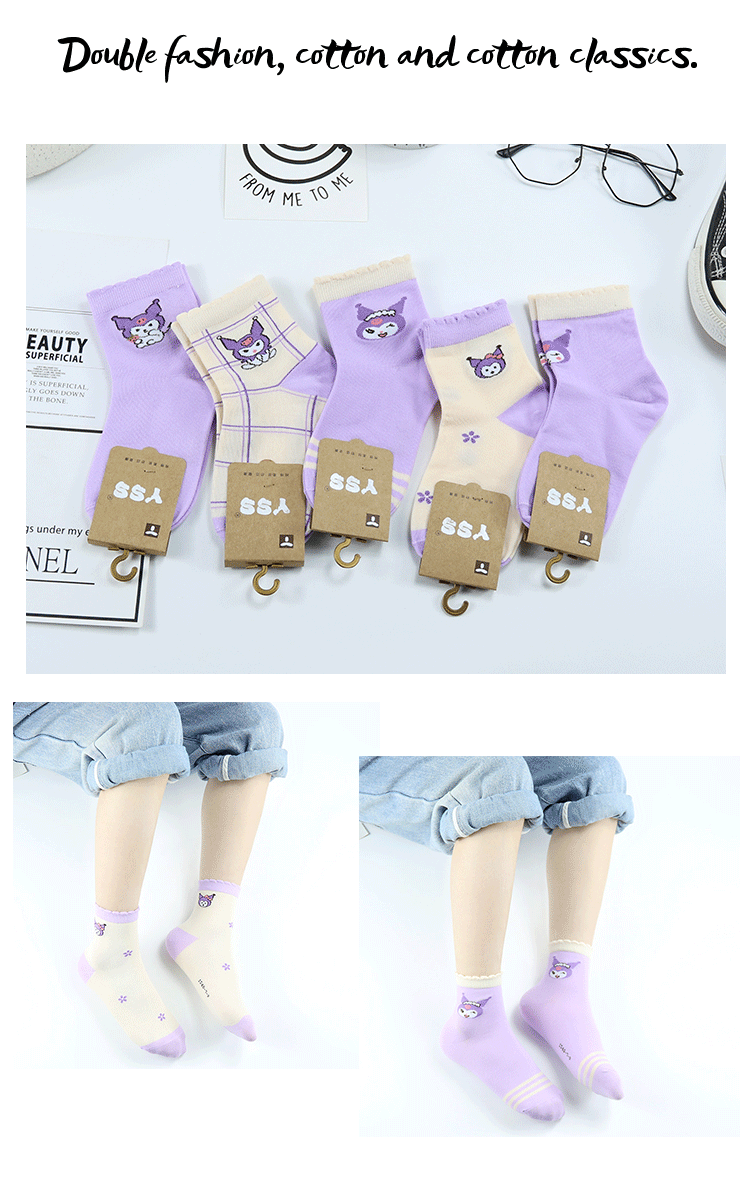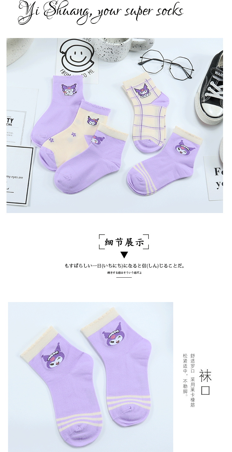 어린이 더블 양말 봄과 여름 새로운 만화 쿨로 미 양말을 빗어 한국식 소녀의 세련된 양말 뼈없는 양말