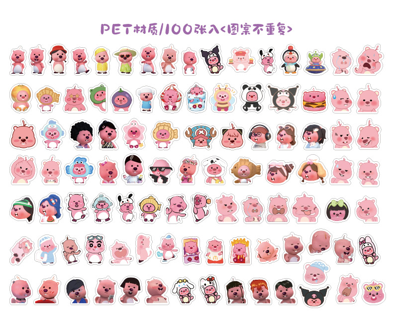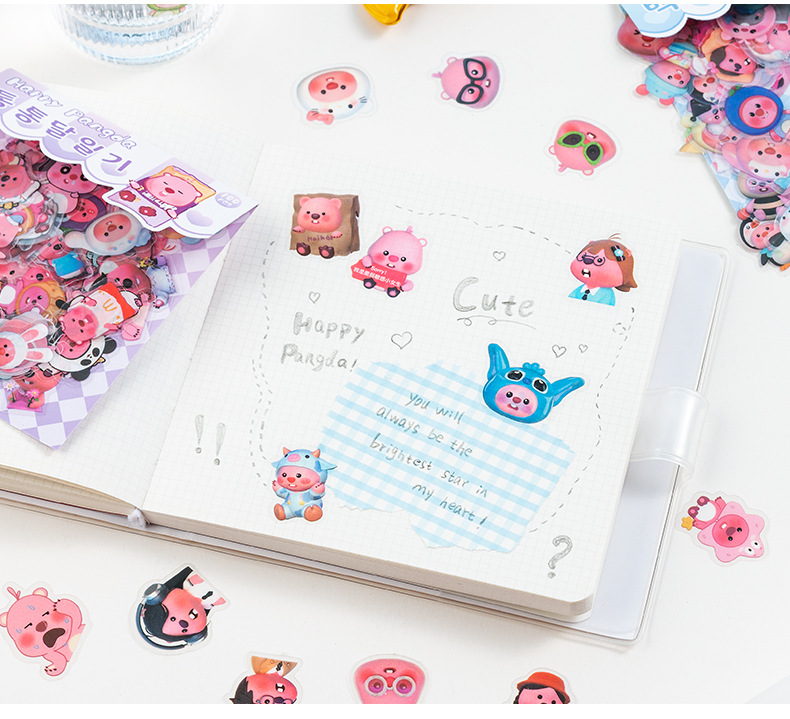 해피 chuanda 시리즈 100 조각 방수 pvc 투명 스티커 종이 가방 diy 저널 일기 장식 동물 스티커