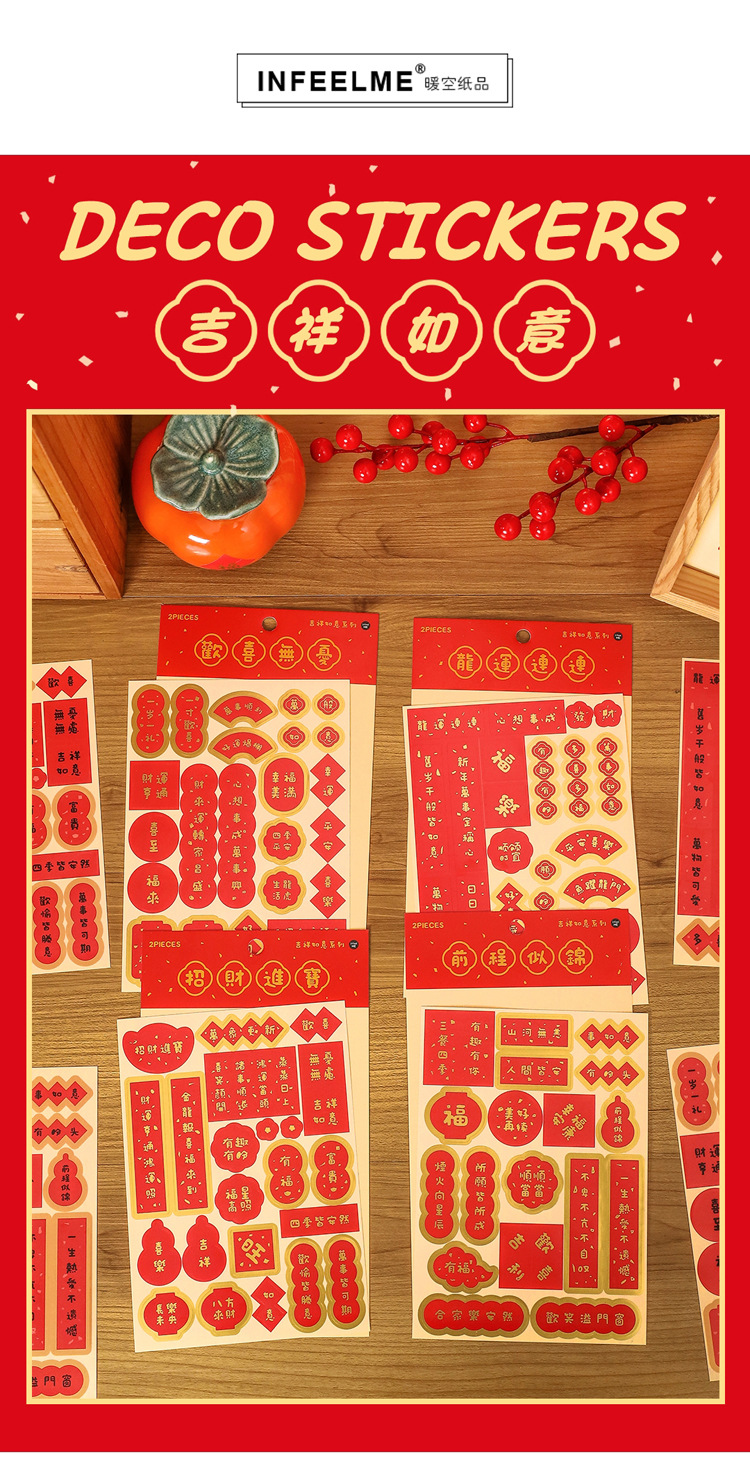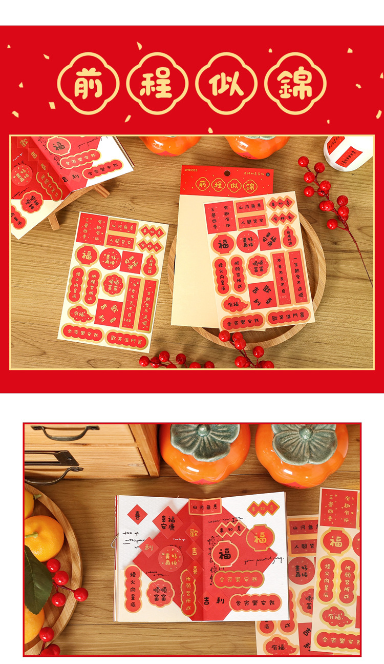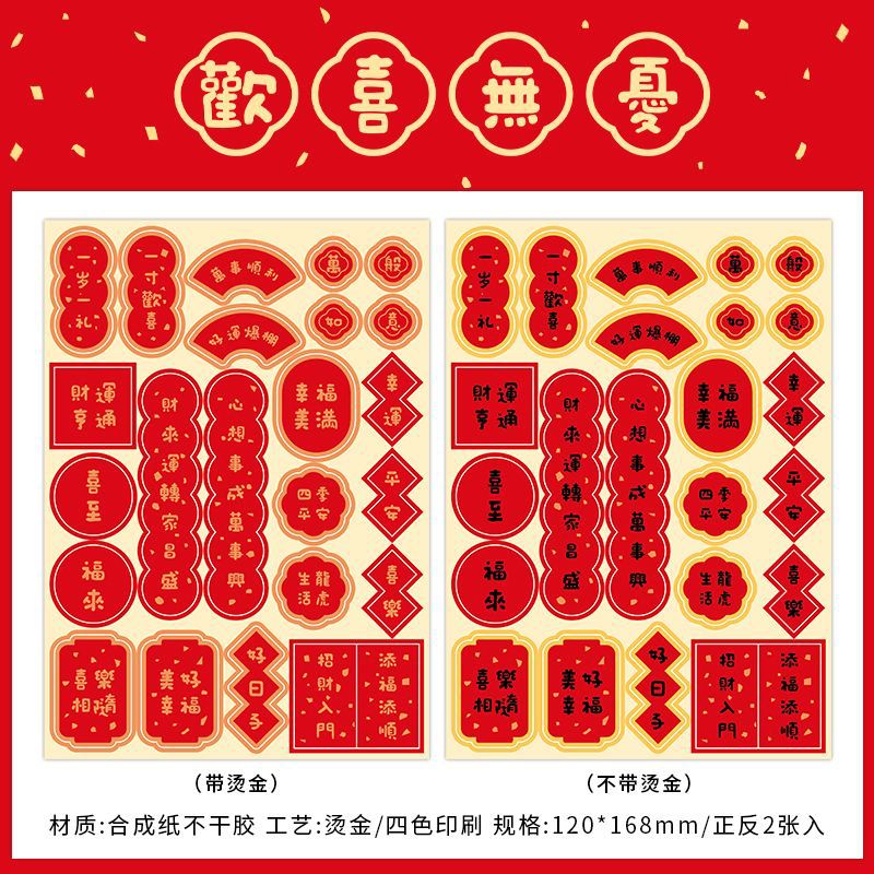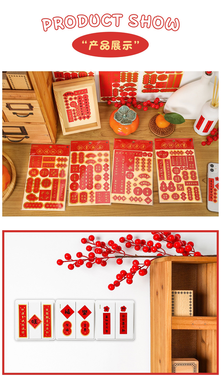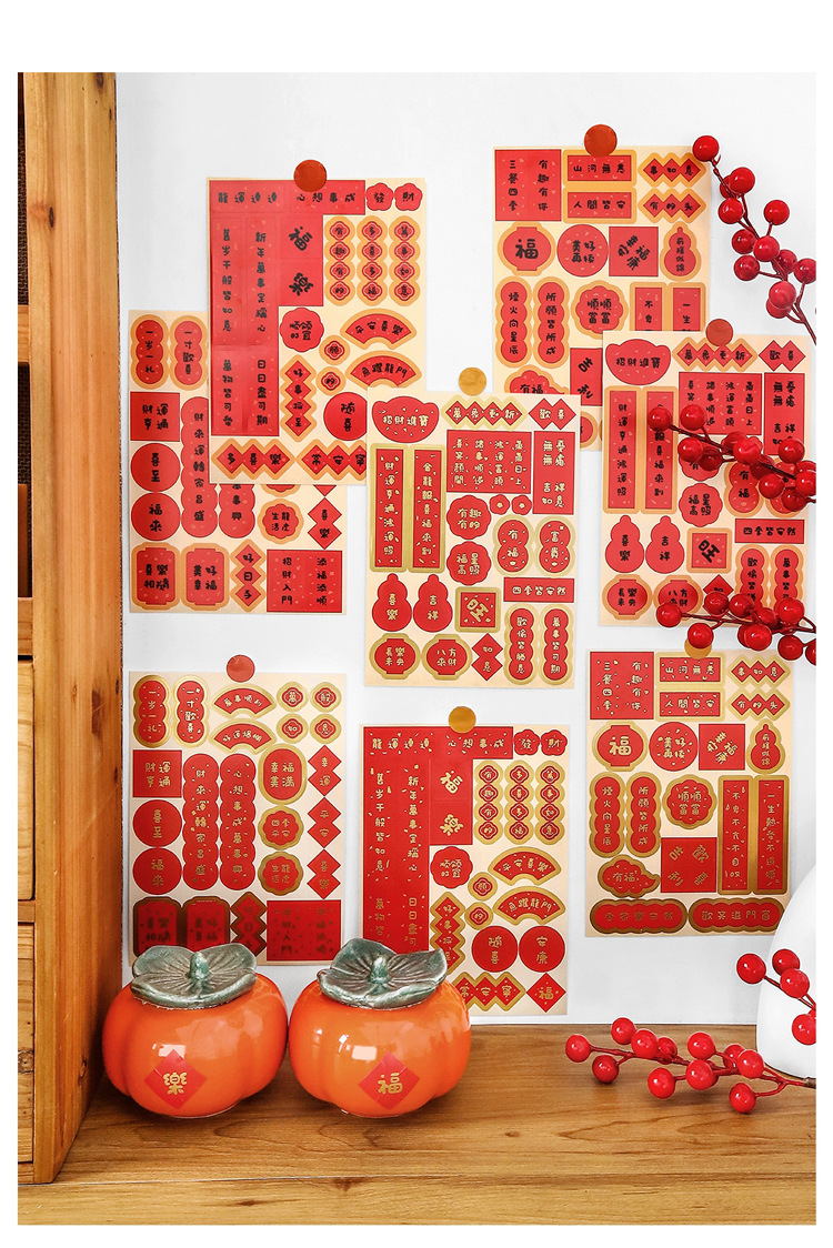 행운의 축복 도금 스티커 미니 커플 중국 고대 스타일 아름다운 텍스트 새해 소재 저널 장식