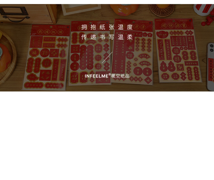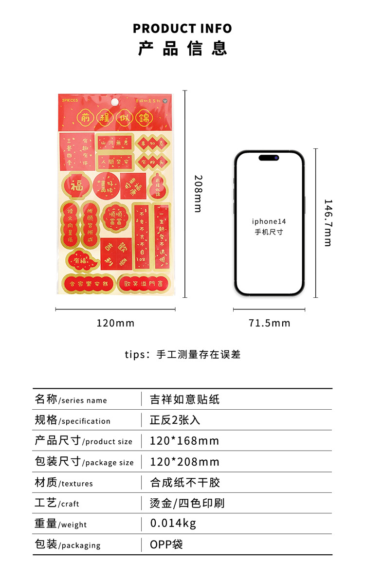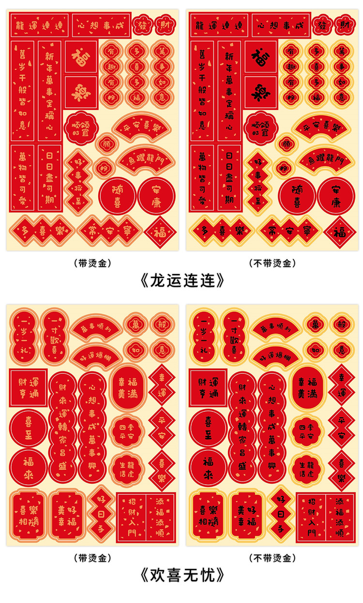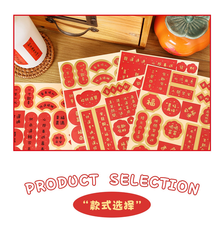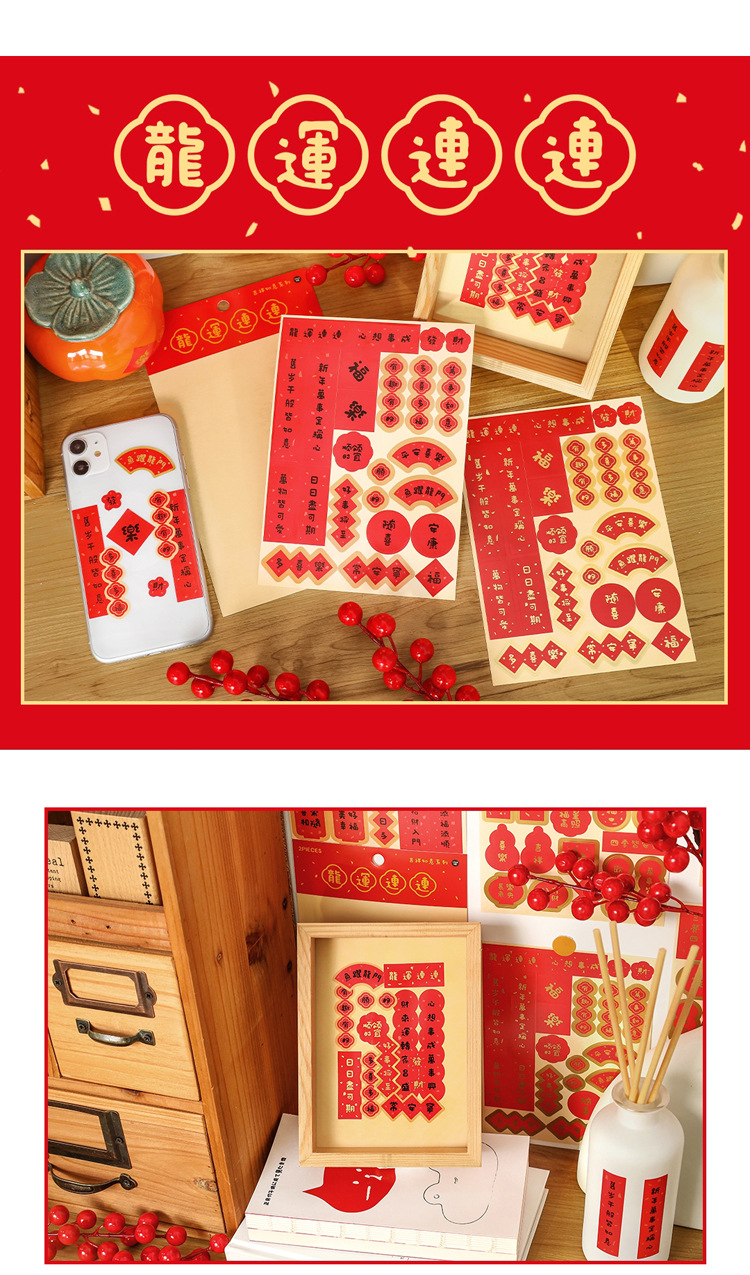 행운의 축복 도금 스티커 미니 커플 중국 고대 스타일 아름다운 텍스트 새해 소재 저널 장식