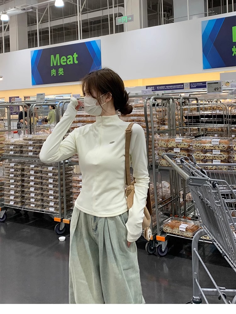 미국 스타일의 복고풍 하프 터틀넥 이너 벨벳 바닥 셔츠 봄과 가을 새로운 인터넷 유명 인사 슬림 핏 쇼트 탑스토어 가기