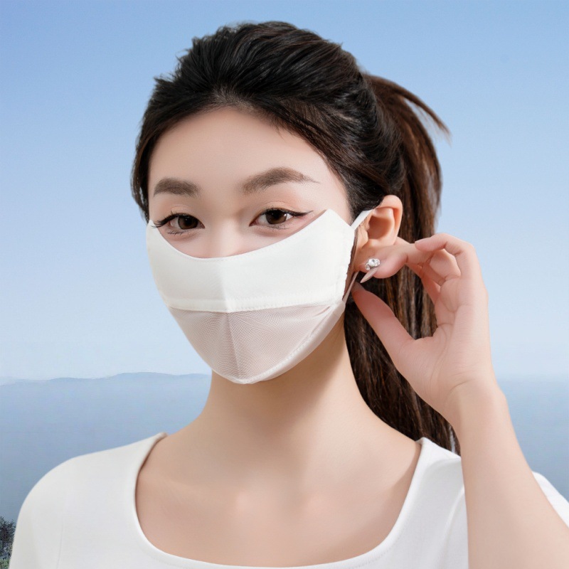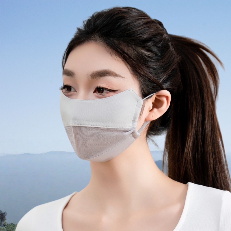 여름 태양 보호 마스크 아이스 실크 메쉬 통기성 마스크 차양 야외 방진 UV 보호 마스크 여성용
