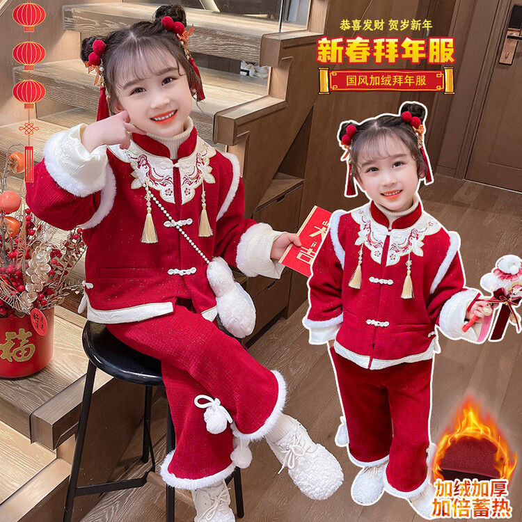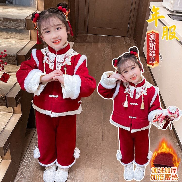 소녀 신년 옷 겨울 옷 아기 소녀 1 세 원피스 어린이 중국 스타일 한부 어린이 겨울 신년 옷 아동복