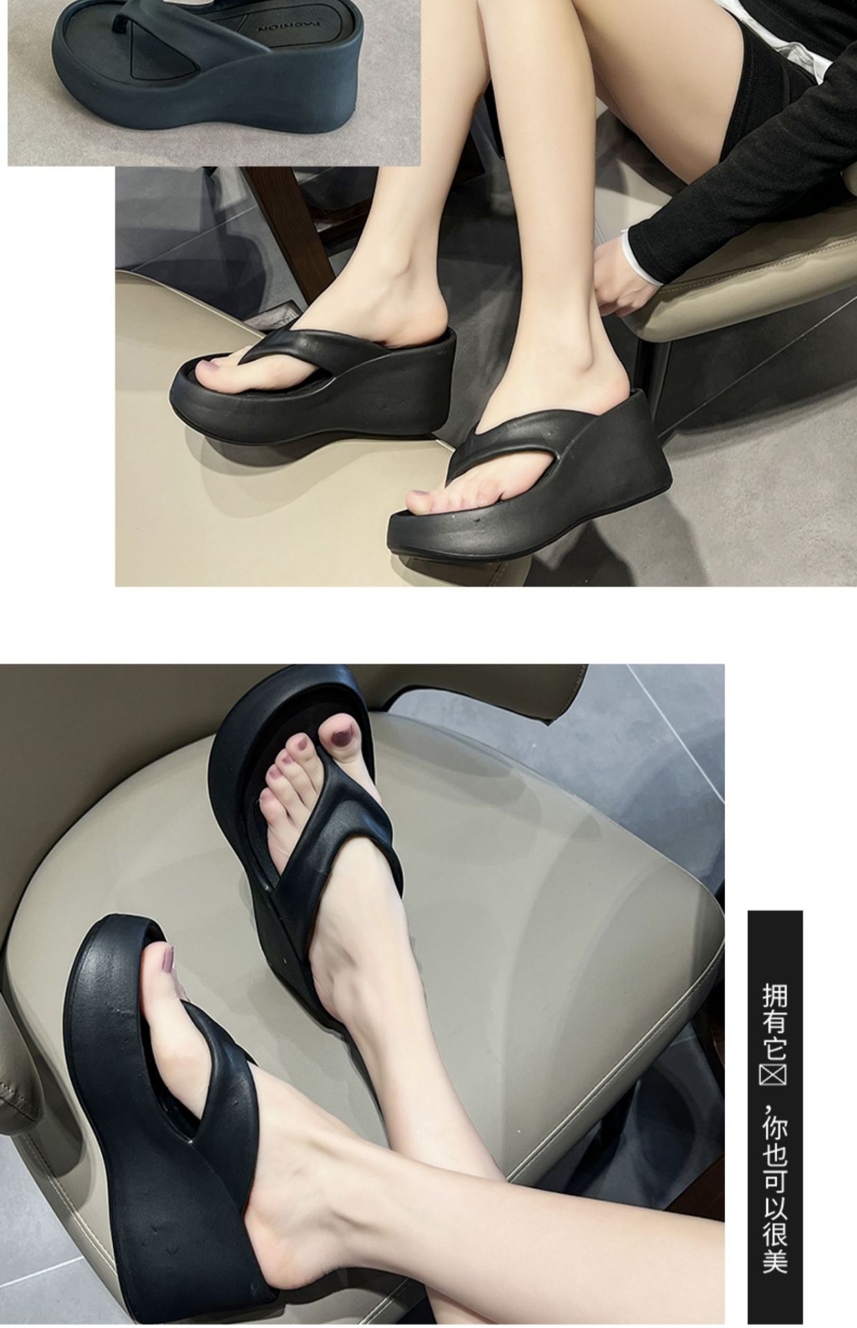 Flip-flops Women's 2025 새로운 사이버 유명한 플립 플롭 플랫폼 신발 쐐기 두꺼운 밑창 올 매치 해변 슬리퍼