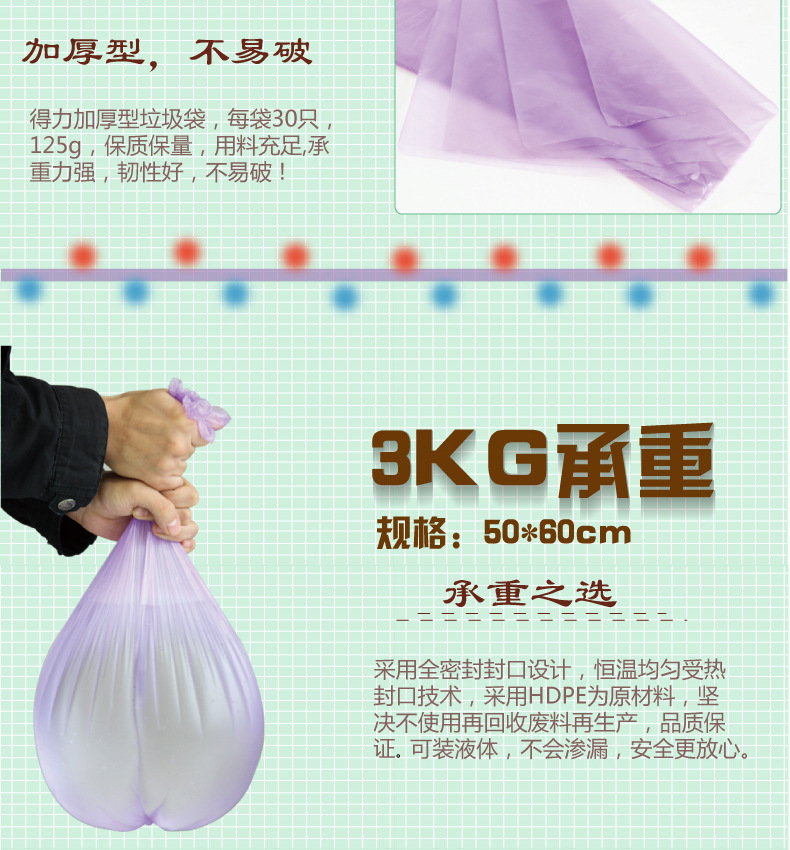 델리 9573 홈 오피스 쓰레기 봉투 두꺼운 플라스틱 쓰레기 봉투 포인트 브레이크 45*55cm 30 팩