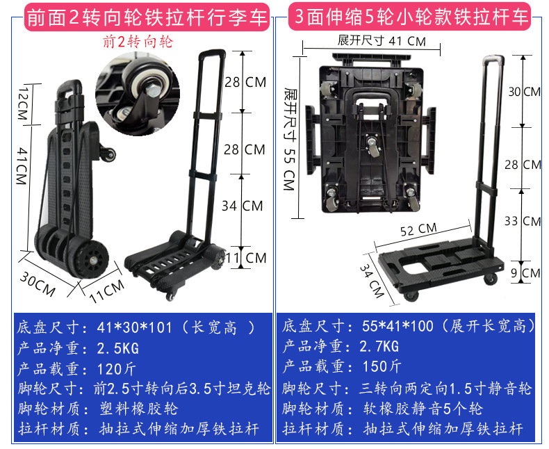 • 쇼핑백 35*25 4 륜 알루미늄 합금 트롤리 벨트 120kg