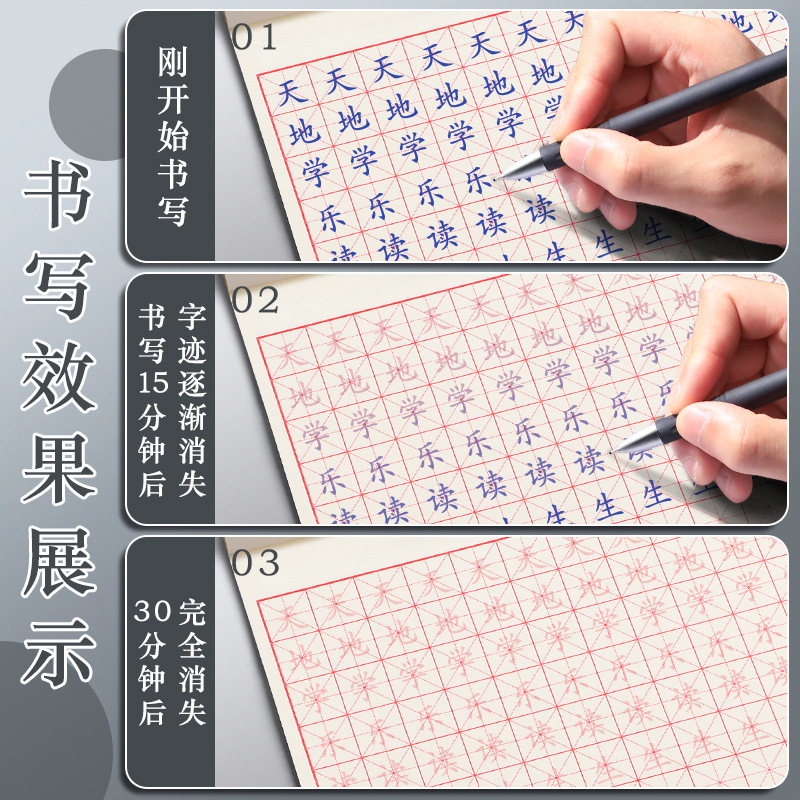 자동 사라지는 어린이 그루브 연습 코퍼북 특수 매직 펜 Traceless 재 작성 페이드 초등학교 제거 연습