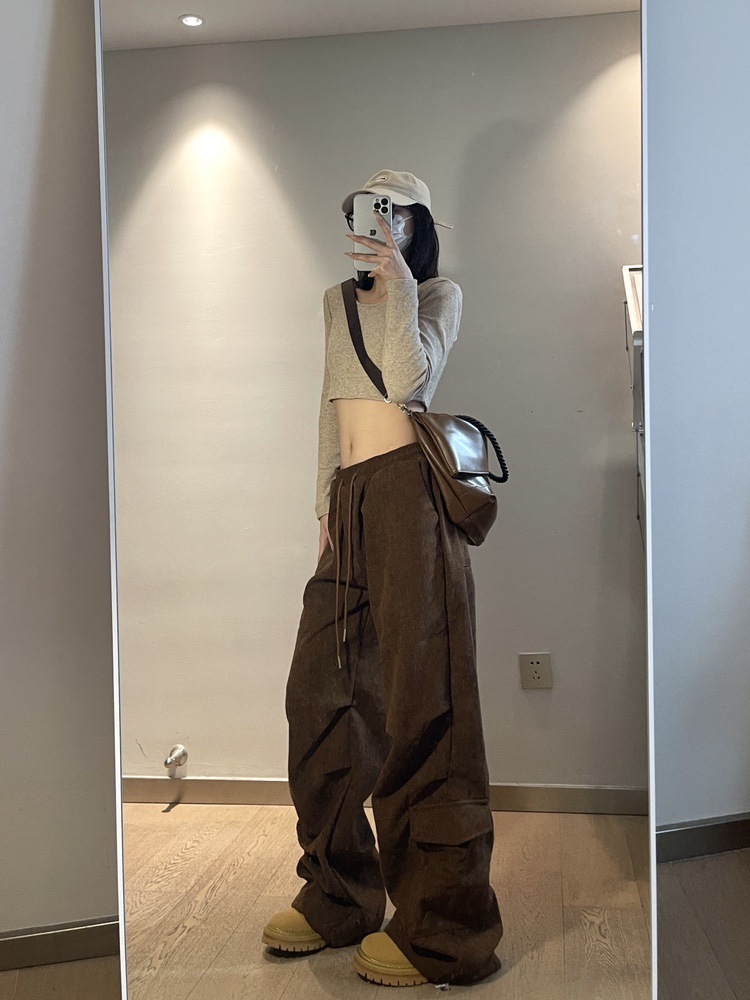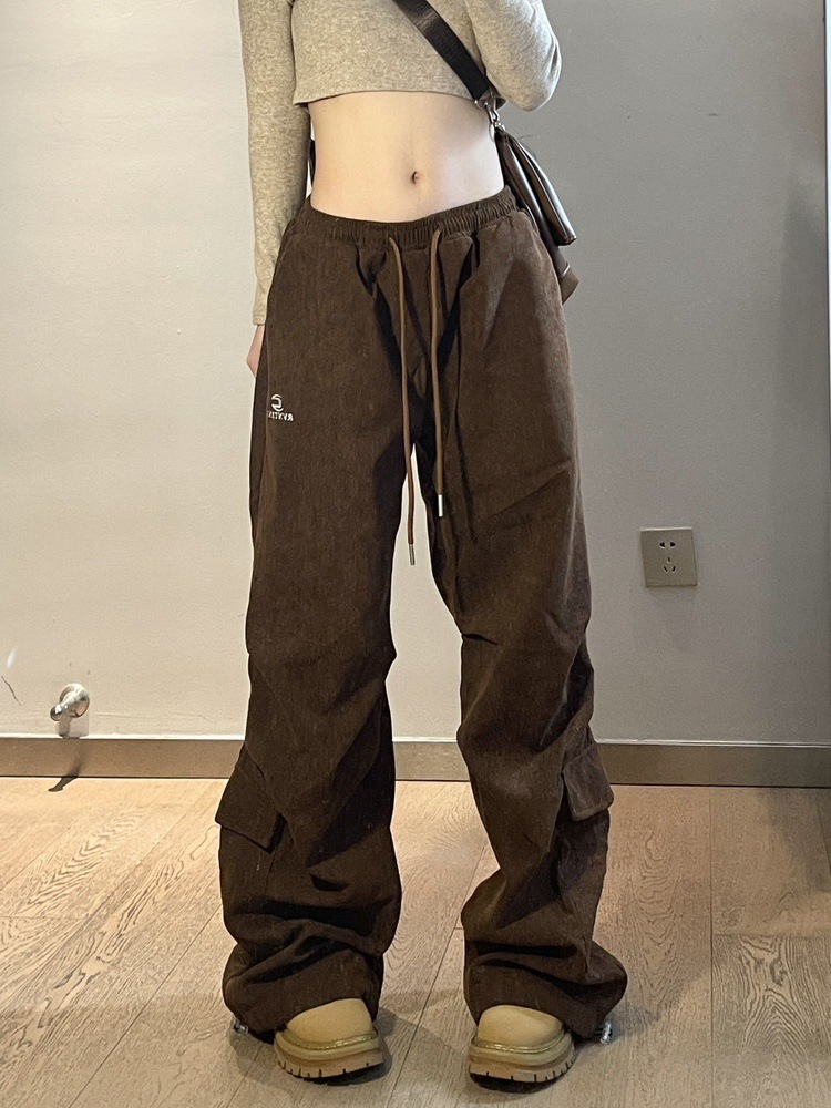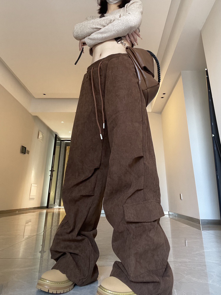 Maillard, 여성의 가을과 겨울 기모 두꺼운 아메리칸 스타일 레트로 힙 캐주얼 루즈 스포츠 트렌디 바지