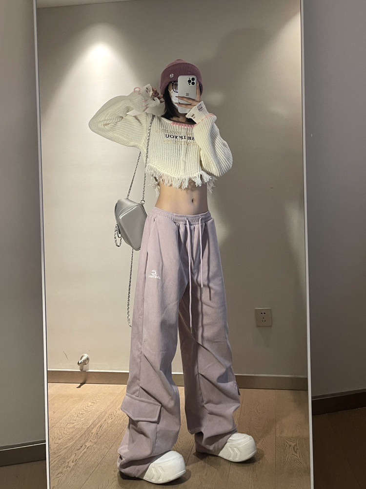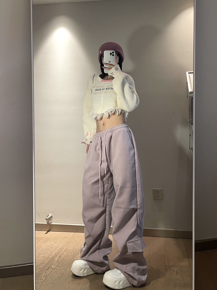 Maillard, 여성의 가을과 겨울 기모 두꺼운 아메리칸 스타일 레트로 힙 캐주얼 루즈 스포츠 트렌디 바지스토어 가기