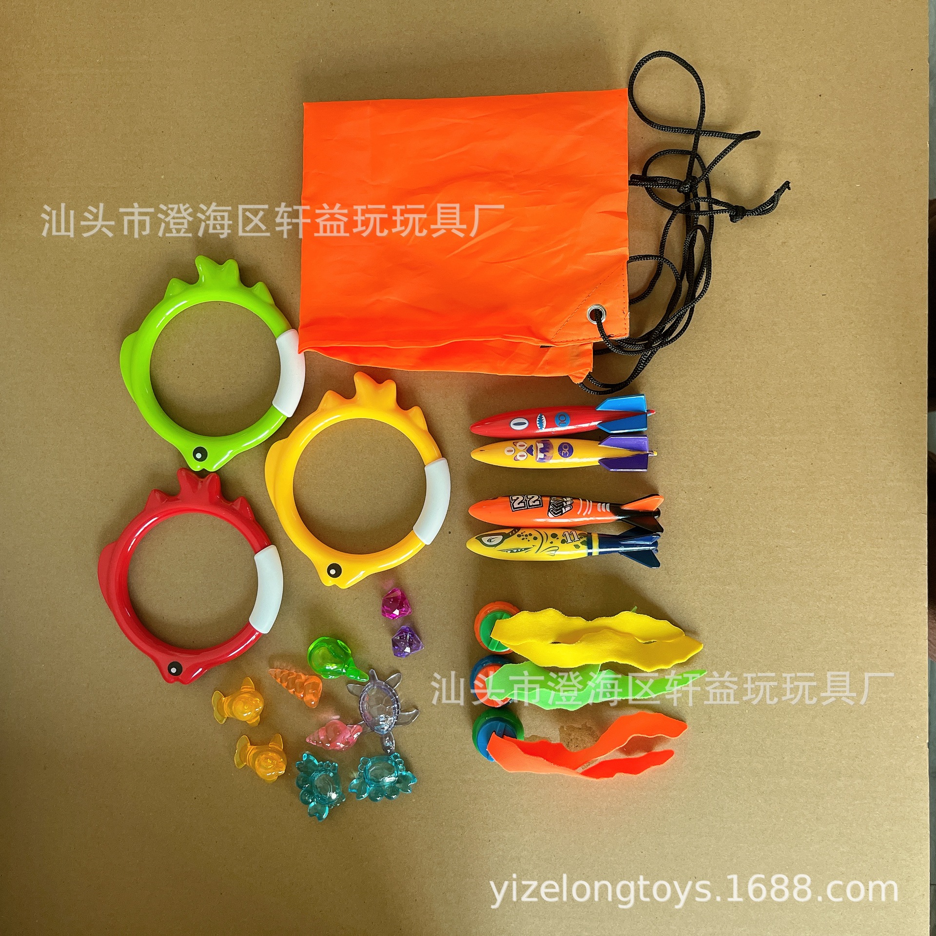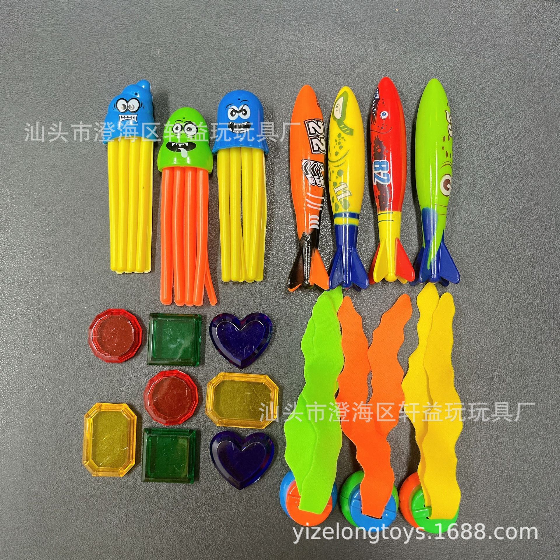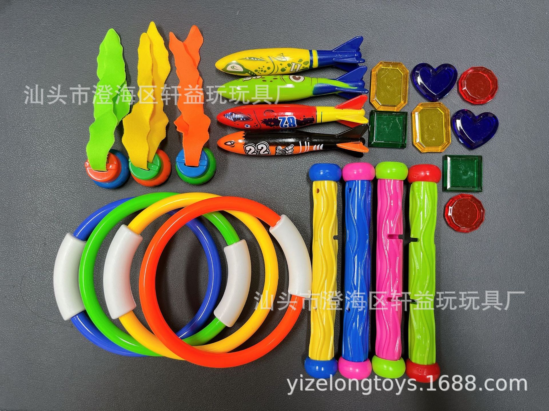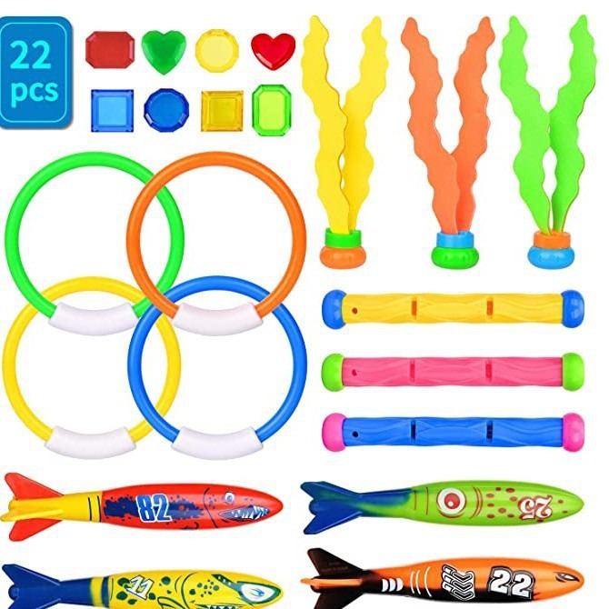 • 다이빙 22 피스 세트 (링 4 어뢰 4 수생 식물 3 긴 스틱 3 보석 8) 570g