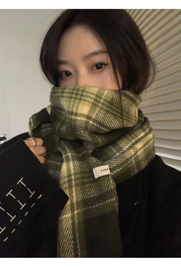 스카프 겨울 여성의 2023 새로운 복고풍 격자 무늬 스카프 학생 따뜻한 두꺼운 녹색 목도리 서양식 하이 엔드 감각스토어 가기
