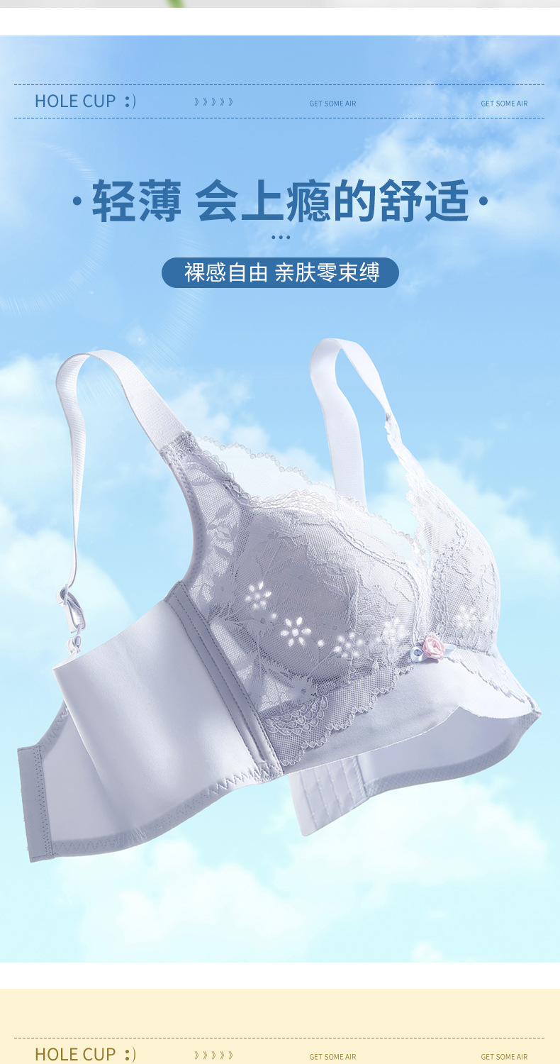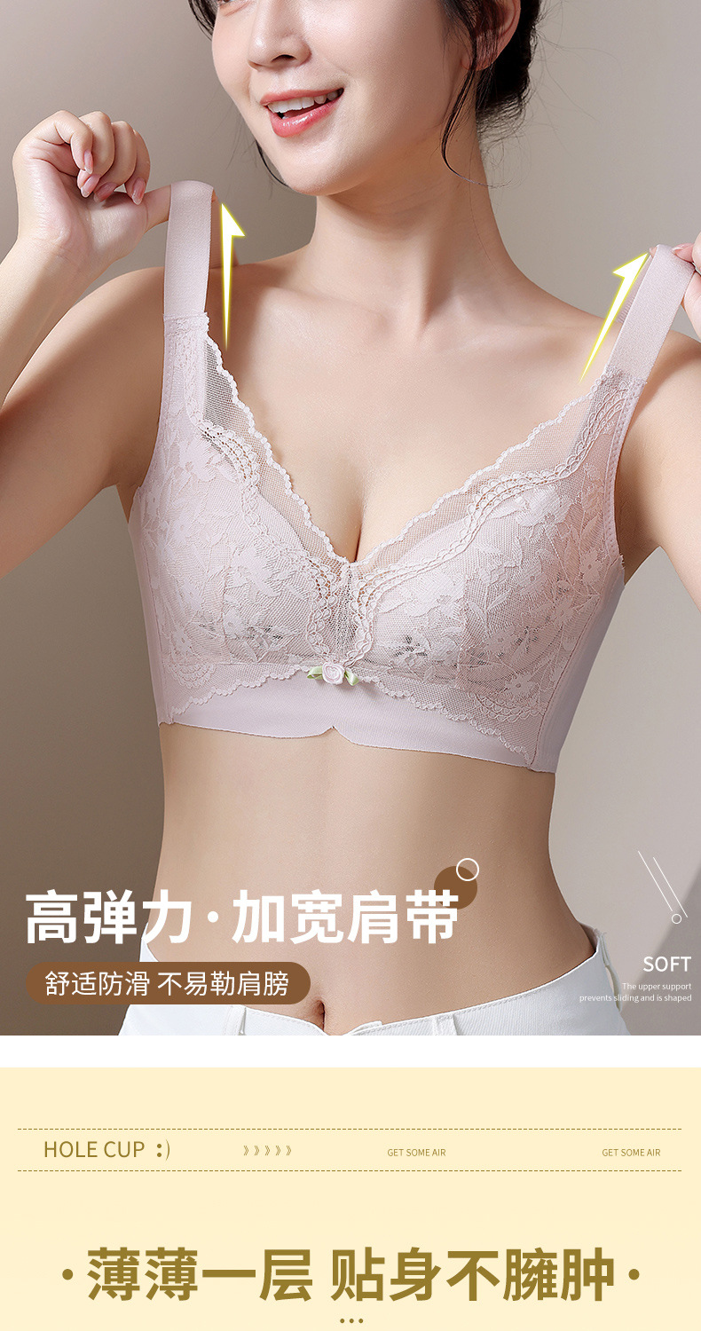여성용 심리스 속옷, 여름용 얇은, 큰 가슴, 작은 푸쉬업, 처짐 방지, 가슴 수축 속옷, 여성용 레이스 브라