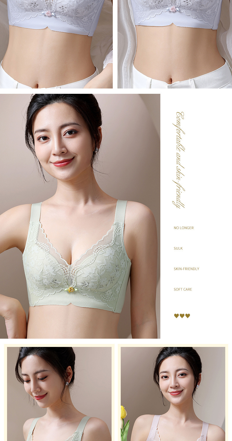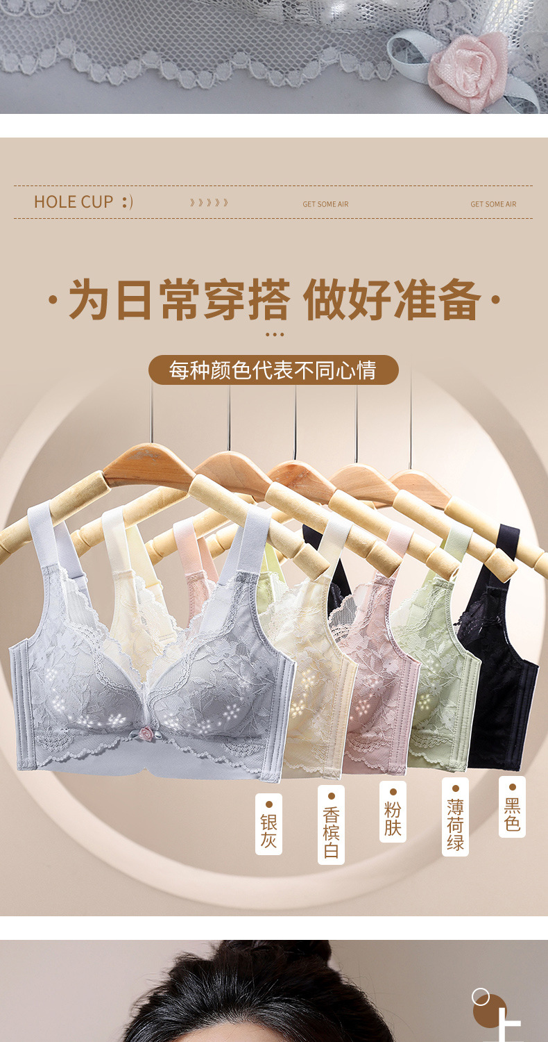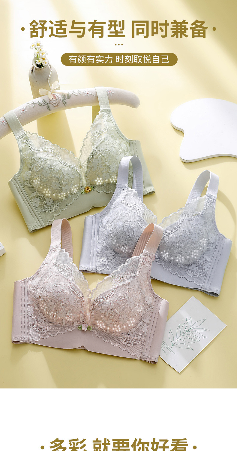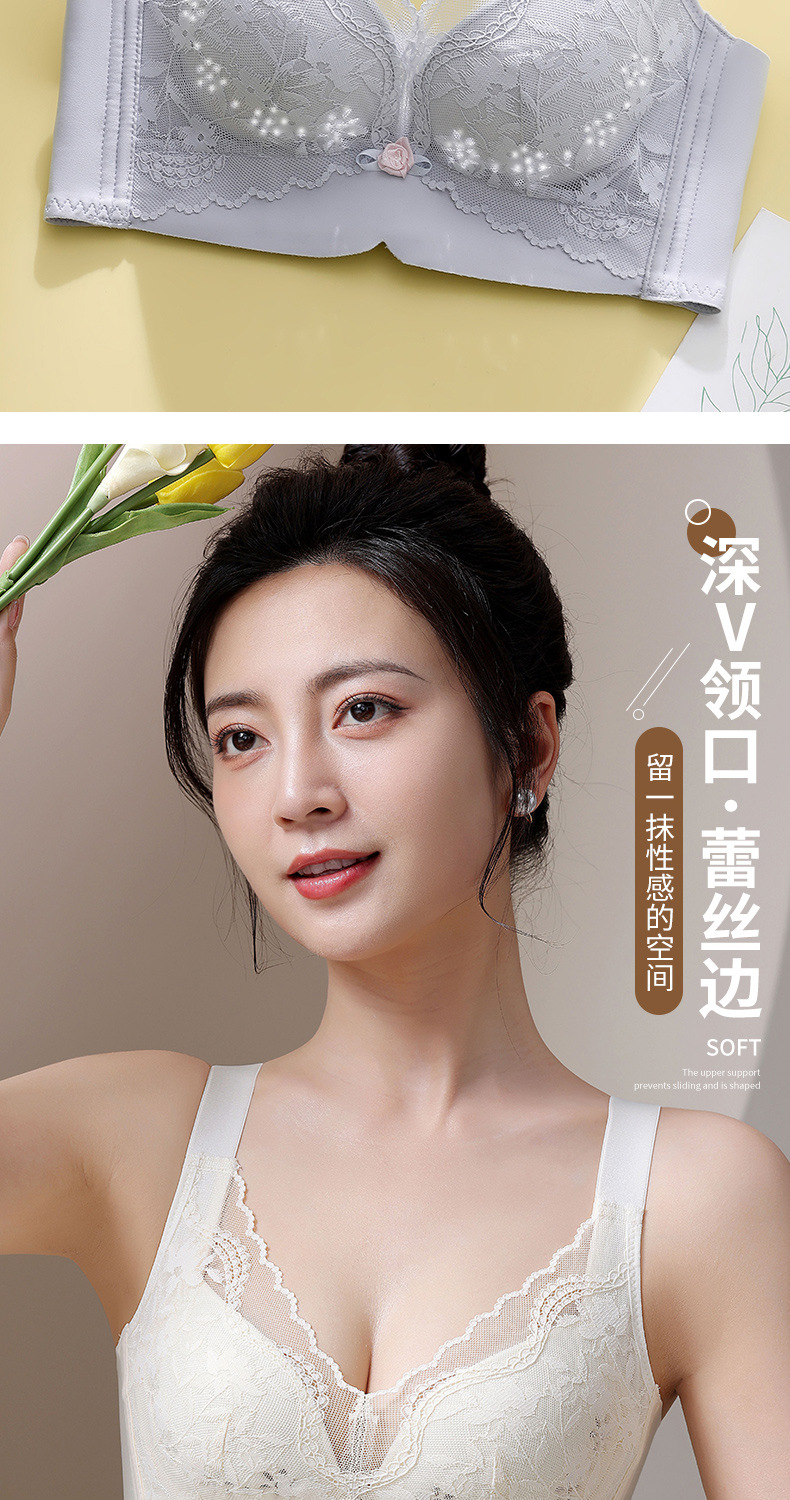여성용 심리스 속옷, 여름용 얇은, 큰 가슴, 작은 푸쉬업, 처짐 방지, 가슴 수축 속옷, 여성용 레이스 브라스토어 가기
