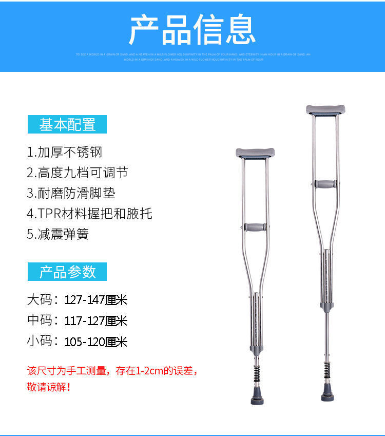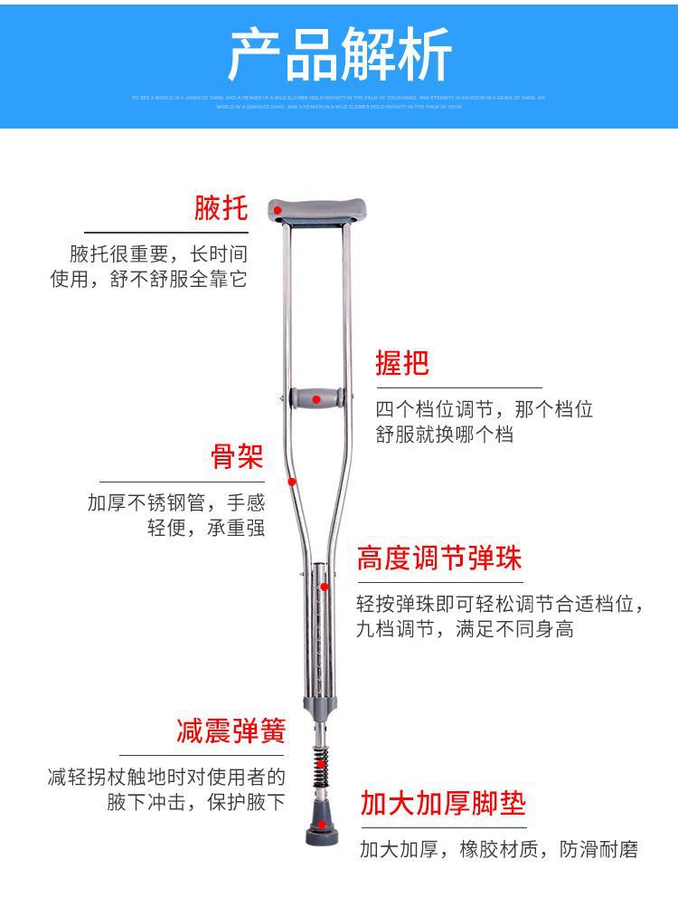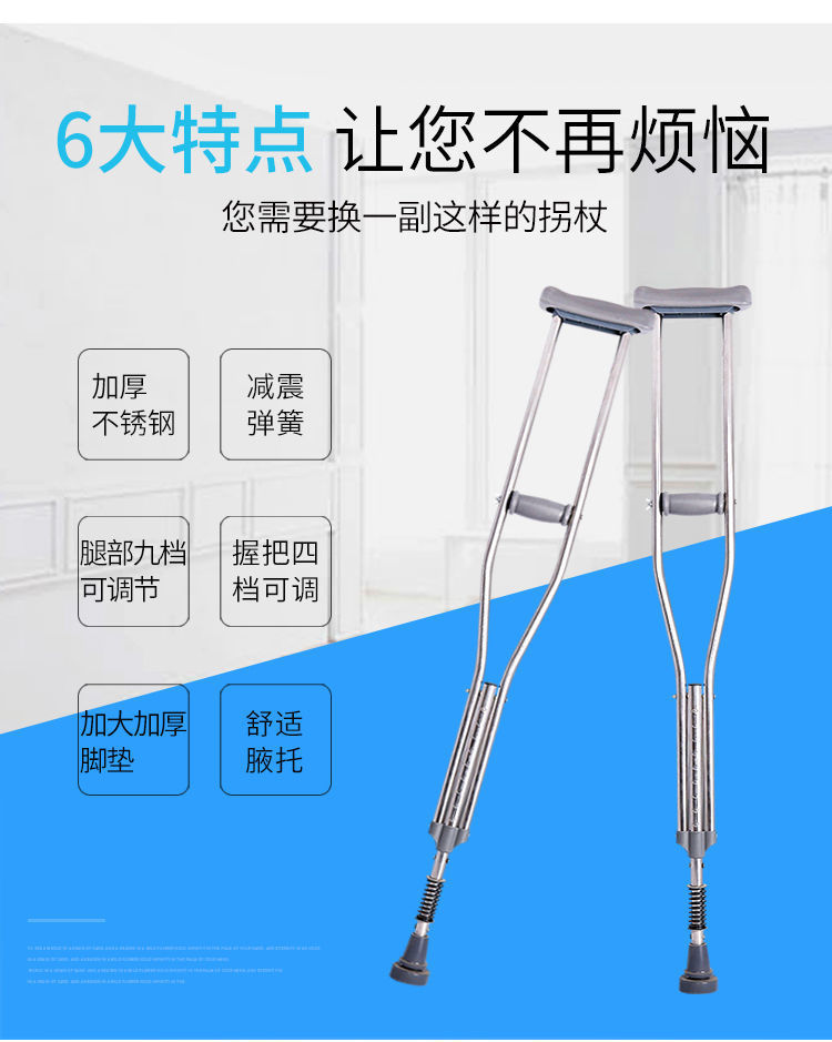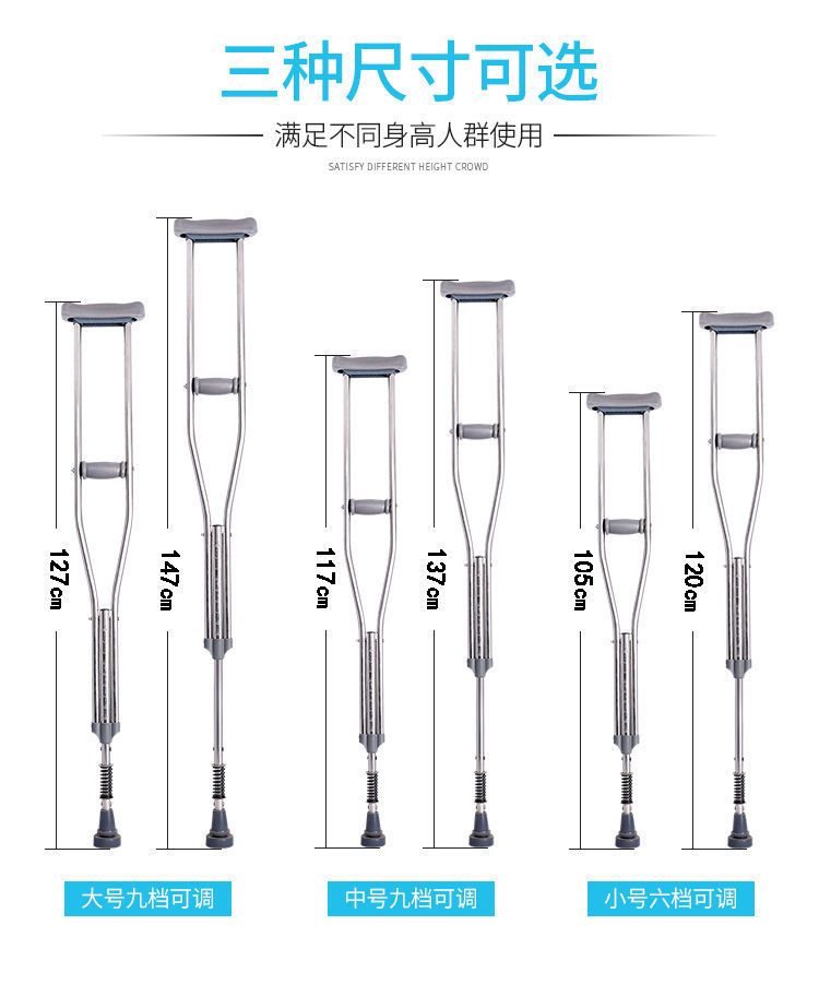 공장 노인 목발 골절 겨드랑이 목발, 젊은이들을위한 미끄럼 방지 목발 두 배 목발 8 발 목발 오토바이 기둥 워커스토어 가기