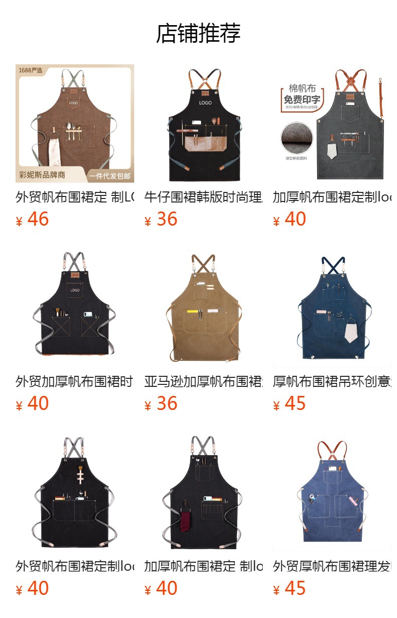 국경 두꺼운 캔버스 앞치마 맞춤 로고 커피 메이커 특별 베이킹 밀크 티 샵 레스토랑 주방 가정용 앞치마스토어 가기