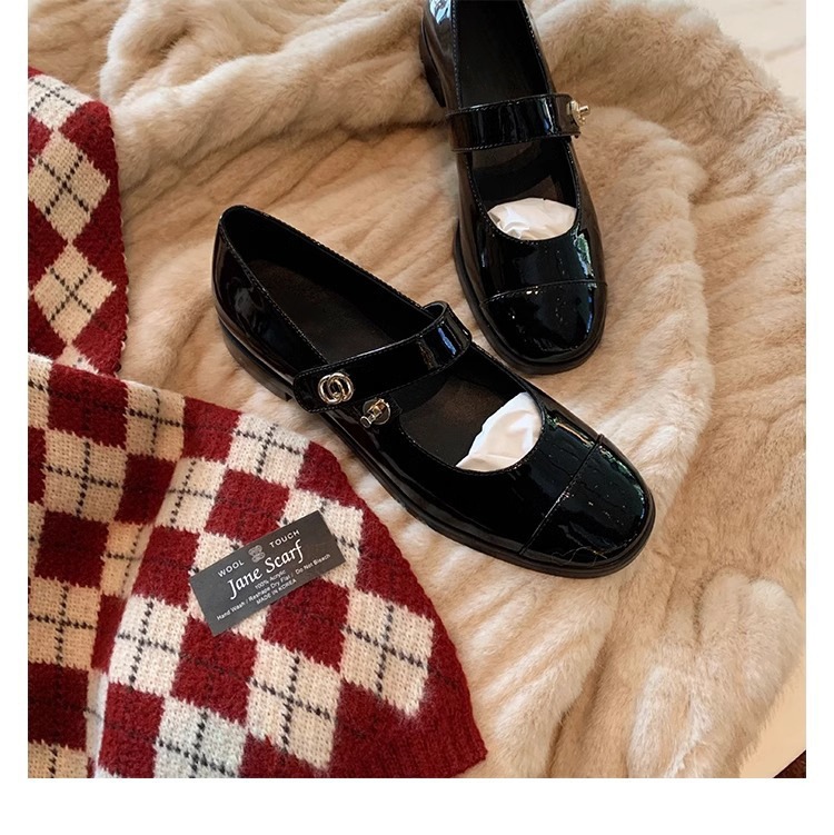 프렌치 컬리지 스타일 클래식 만능 라운드토 얕은 굽 스트랩 청키힐 메리제인 여성 가죽 신발 봄여름