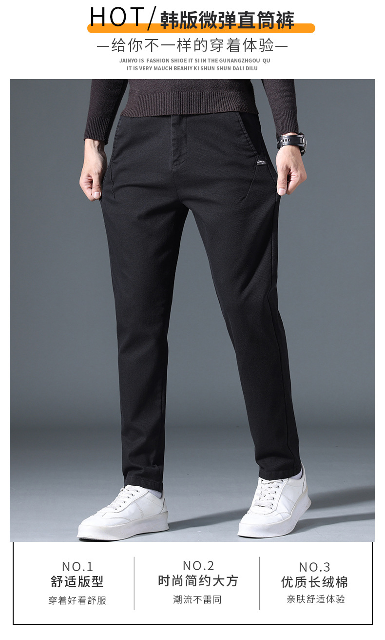 부티크 남자 유행 남자 유행 간단한 마이크로 탄성 긴 바지 소년 한국 스타일 가벼운 캐주얼 올 매치 스트레이트 바지 남자스토어 가기