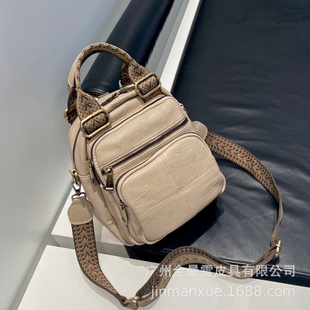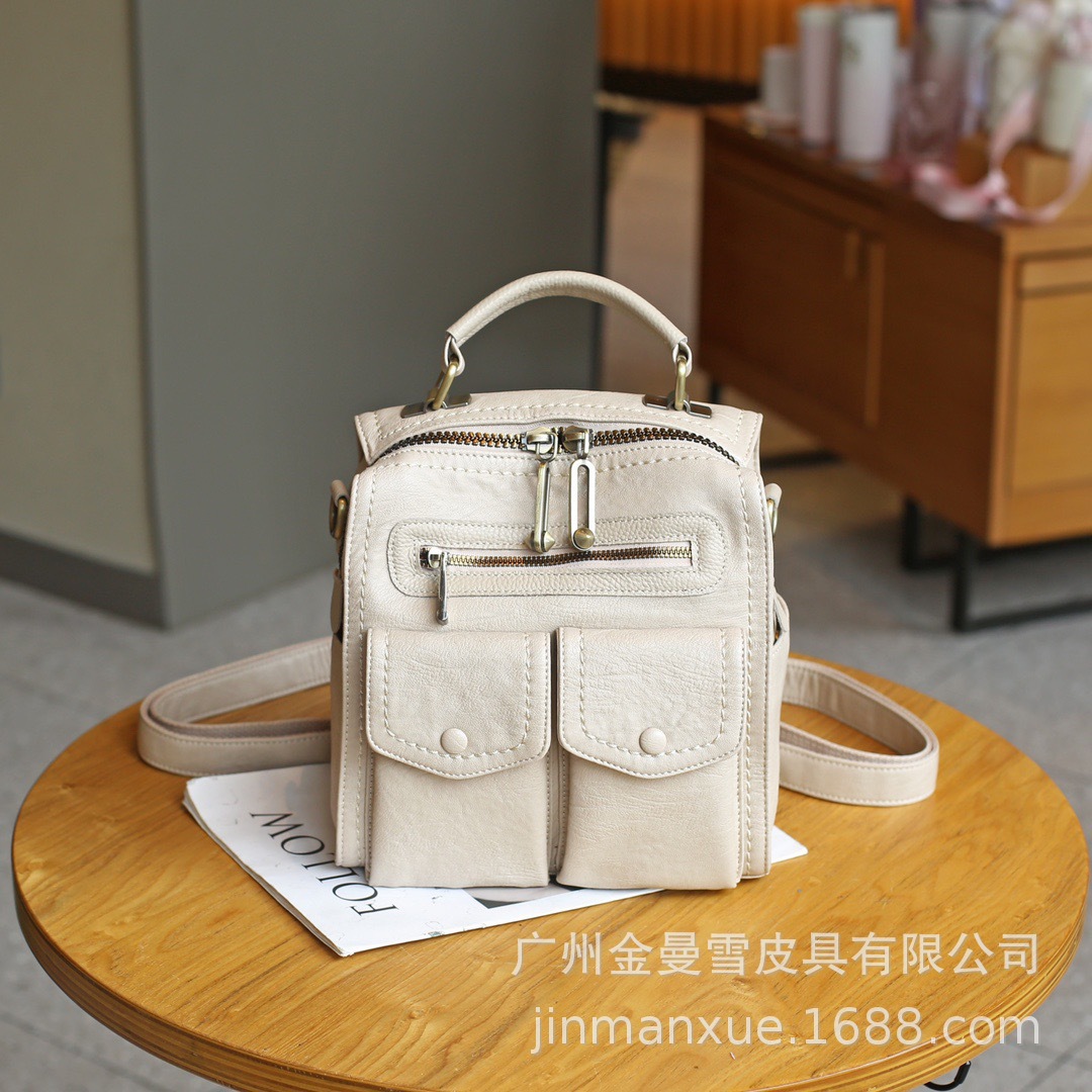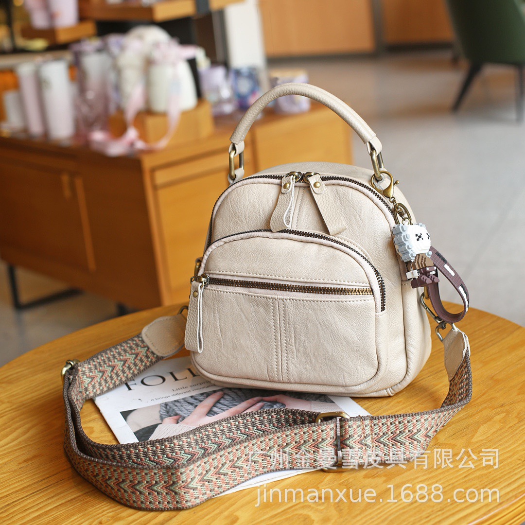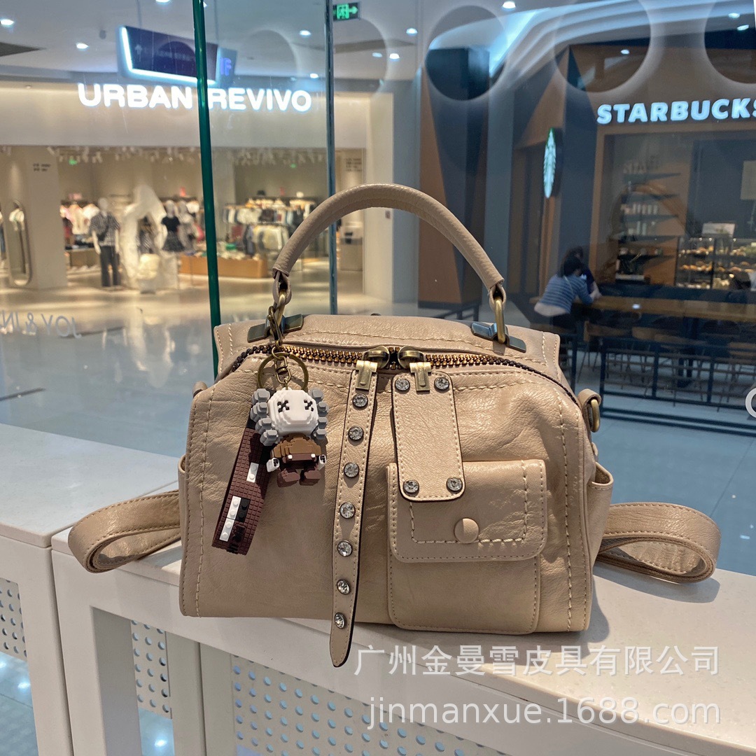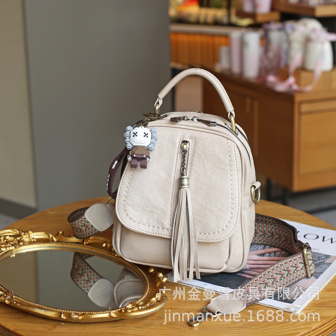 2025년 신상 양가죽 오트밀 애플 오리지널 컬리지 스타일 레트로 심플 크로스백 캐주얼 숄더백 백팩스토어 가기