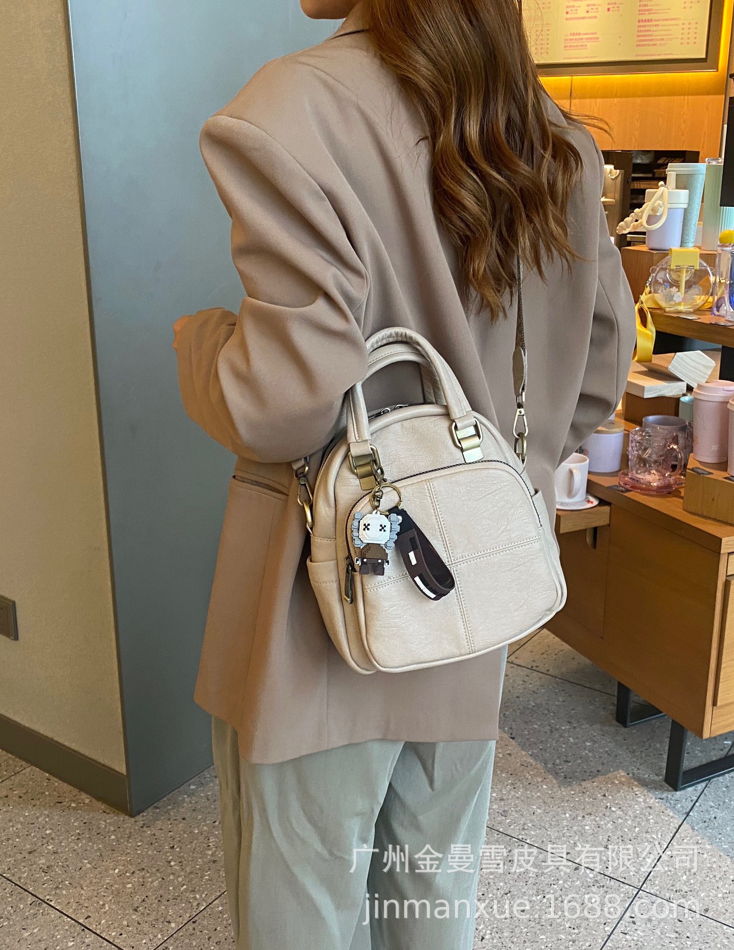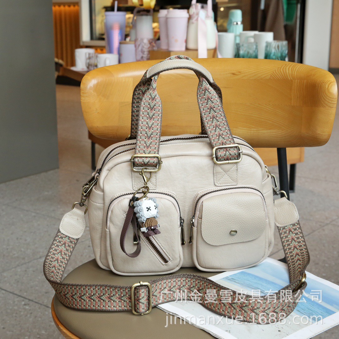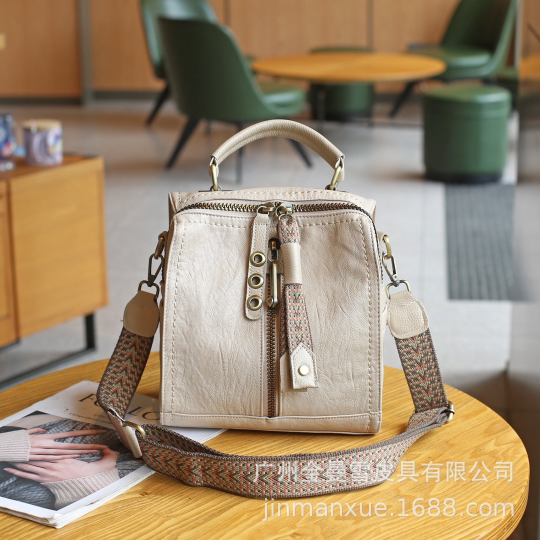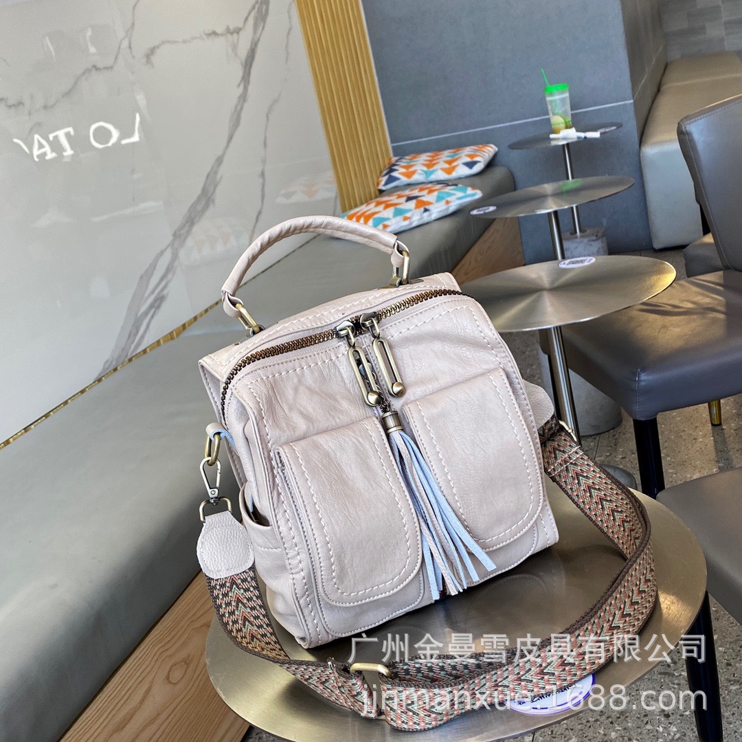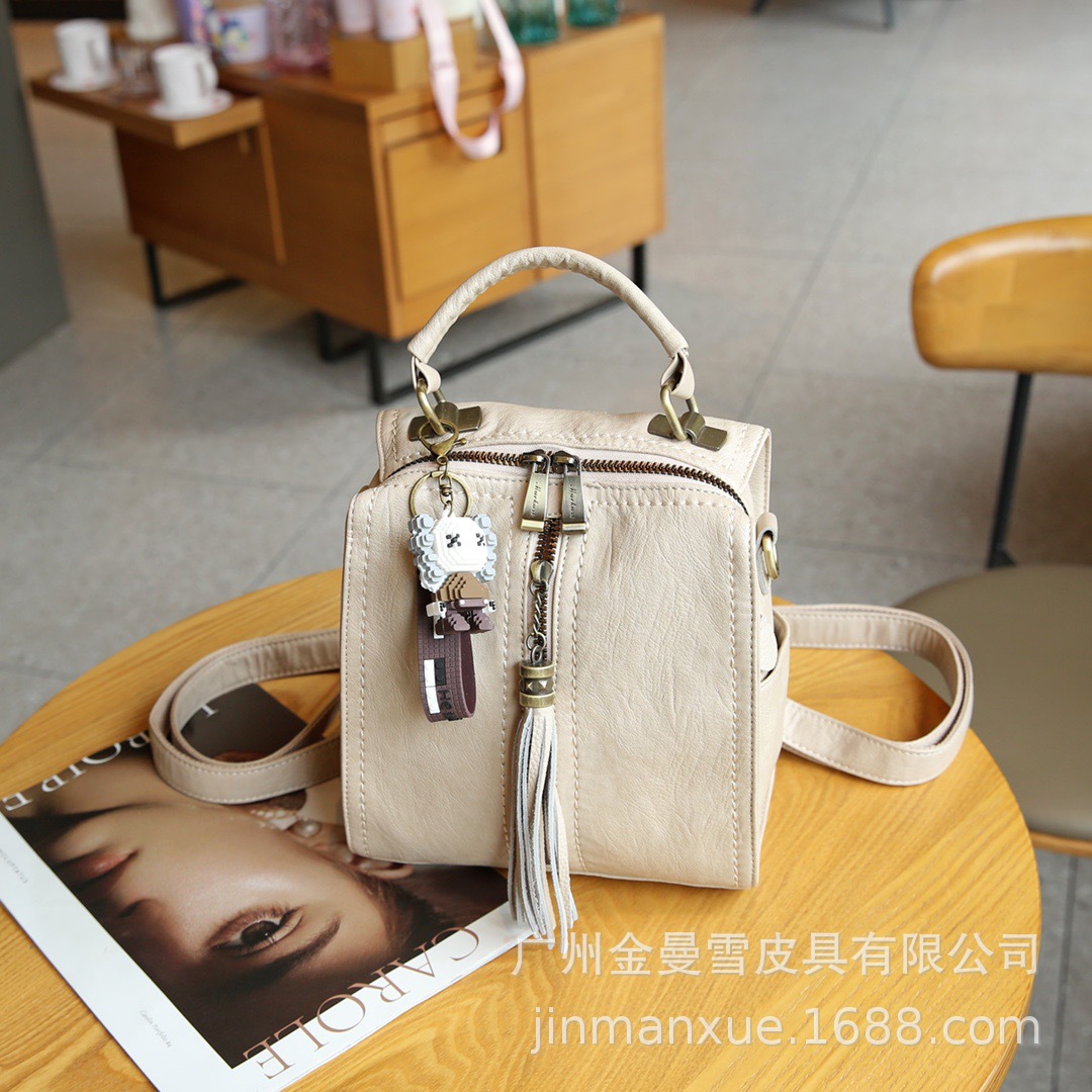 2025년 신상 양가죽 오트밀 애플 오리지널 컬리지 스타일 레트로 심플 크로스백 캐주얼 숄더백 백팩스토어 가기