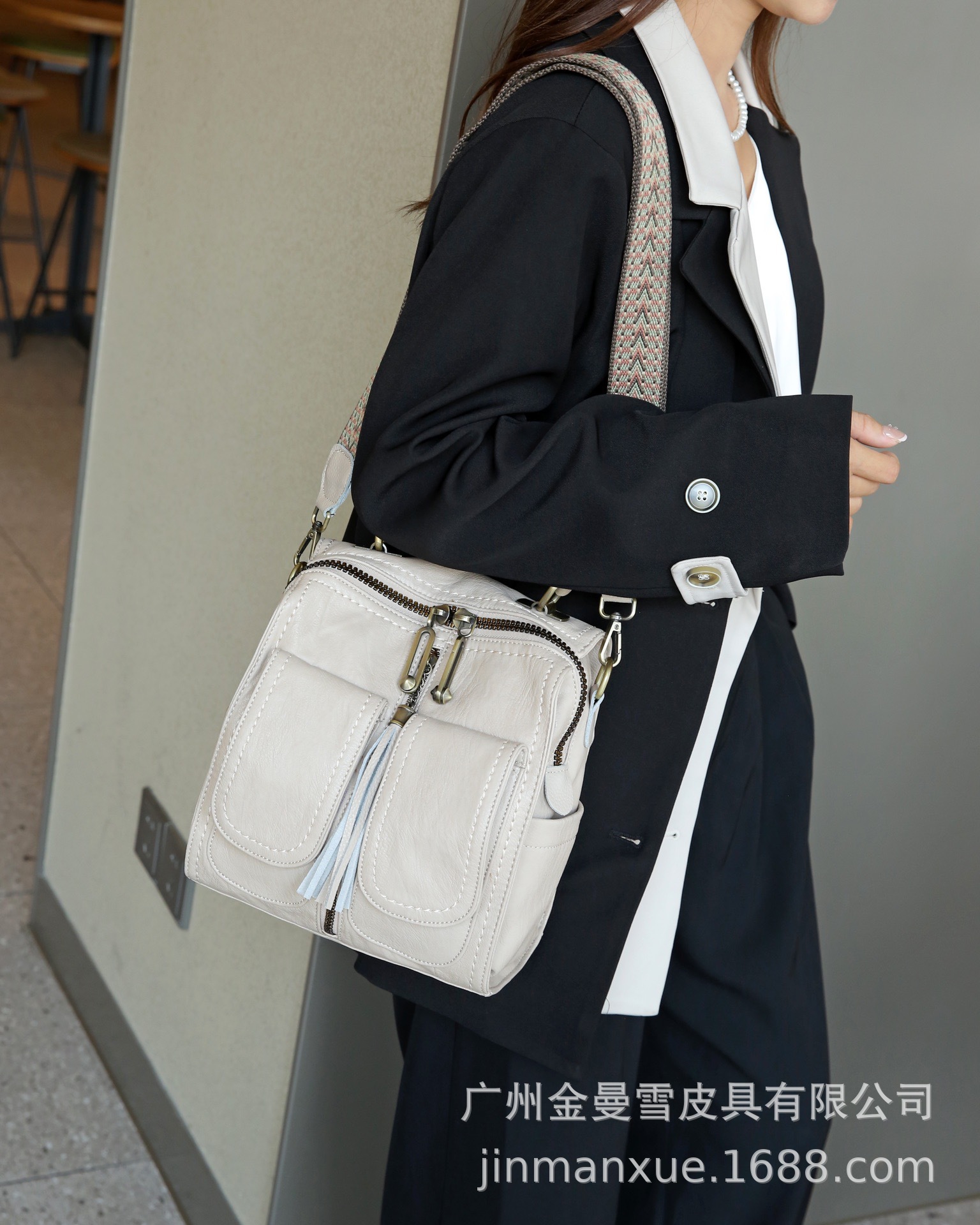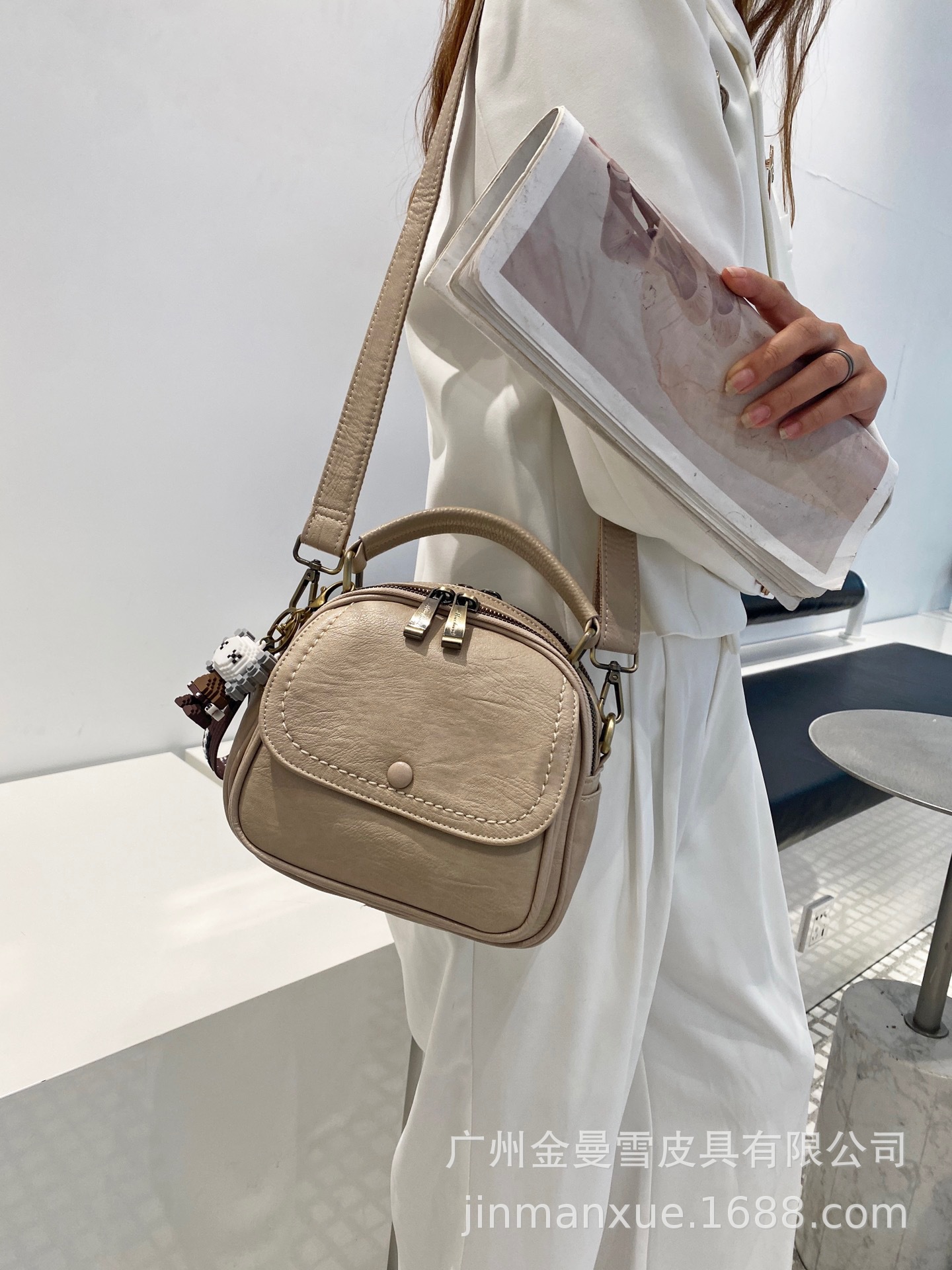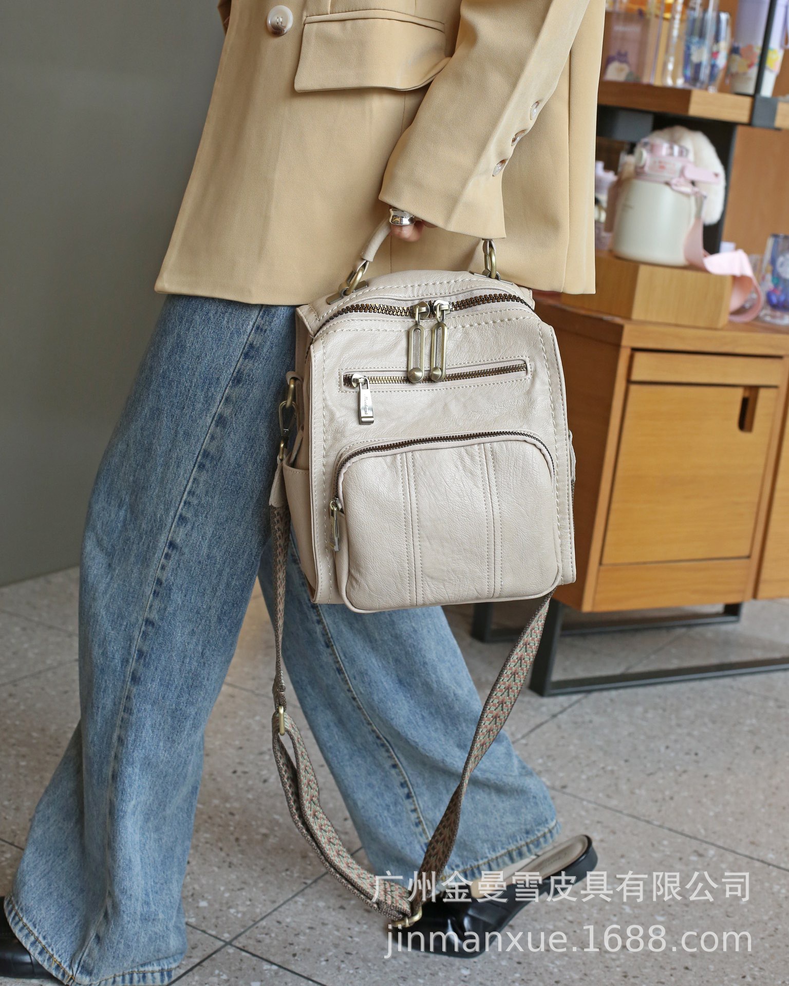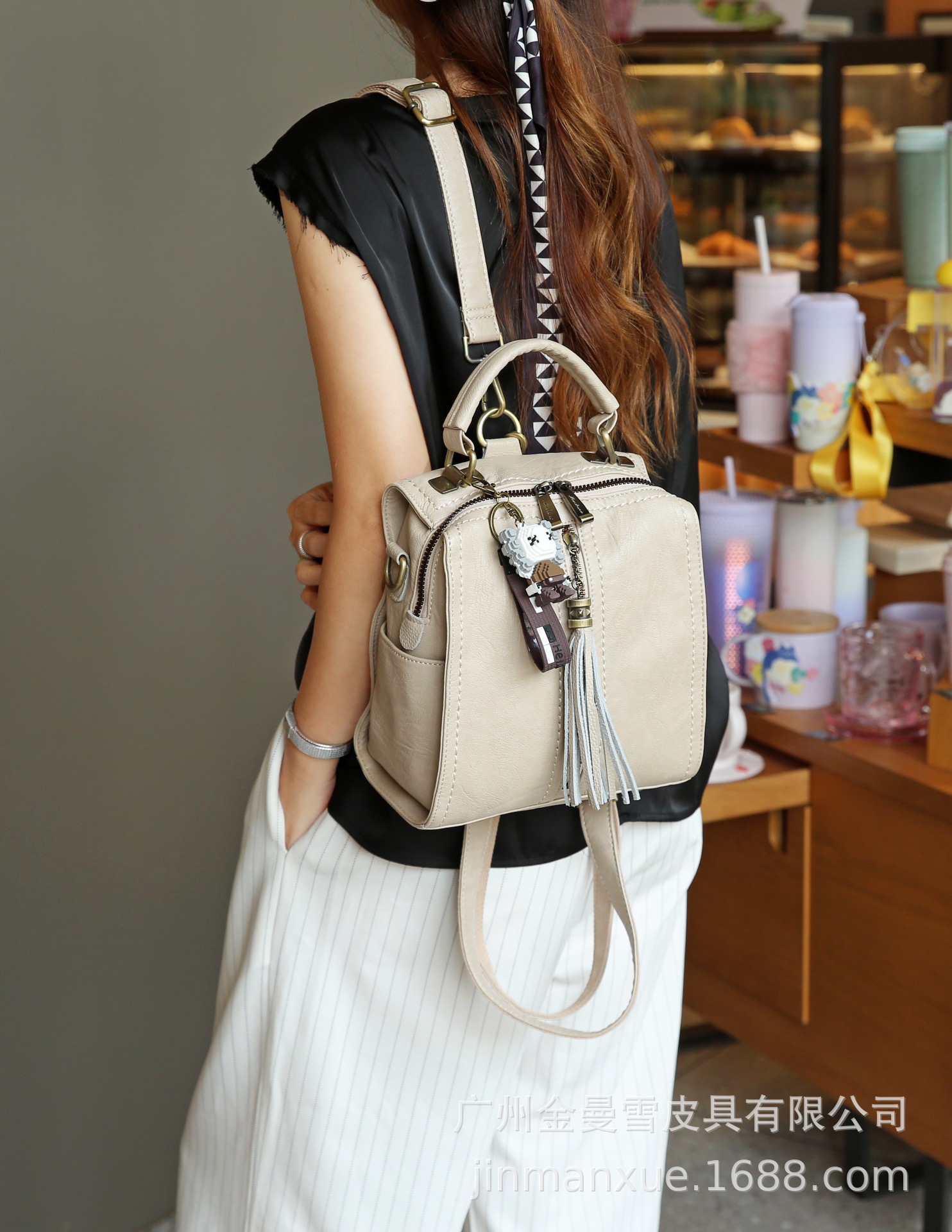 2025년 신상 양가죽 오트밀 애플 오리지널 컬리지 스타일 레트로 심플 크로스백 캐주얼 숄더백 백팩스토어 가기