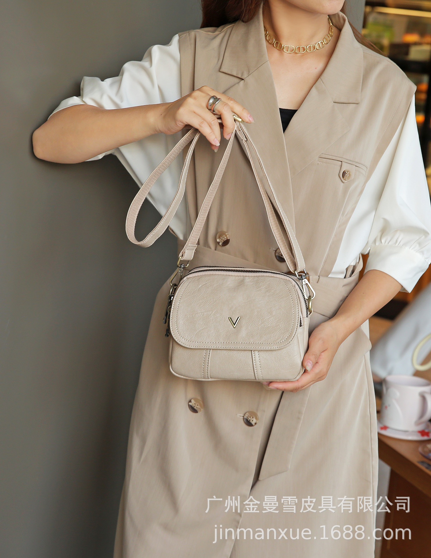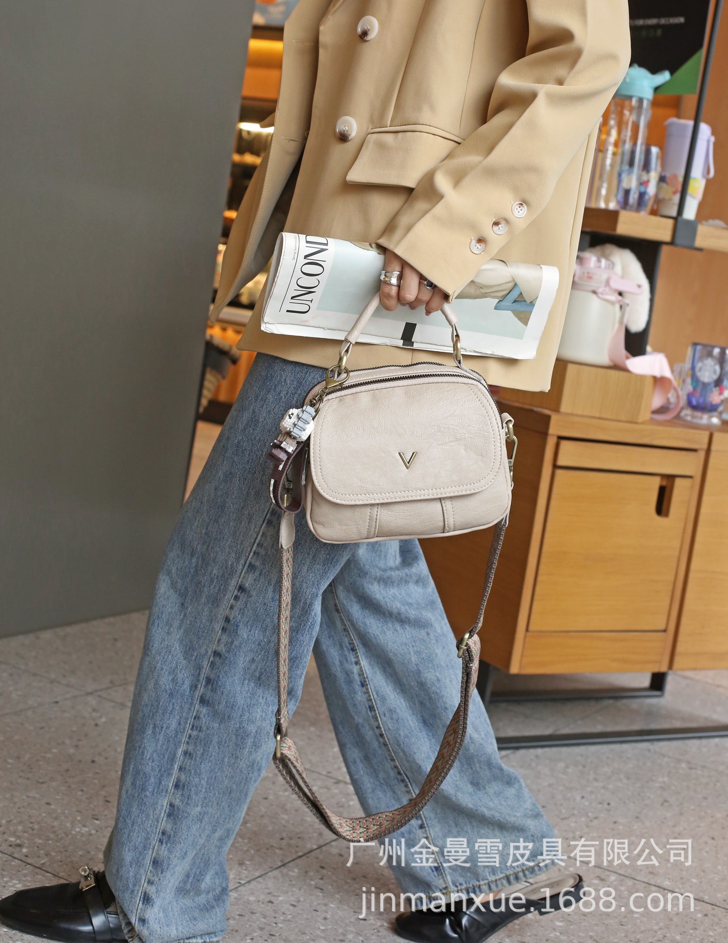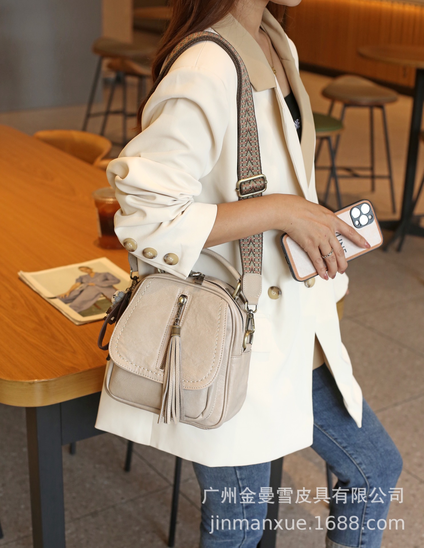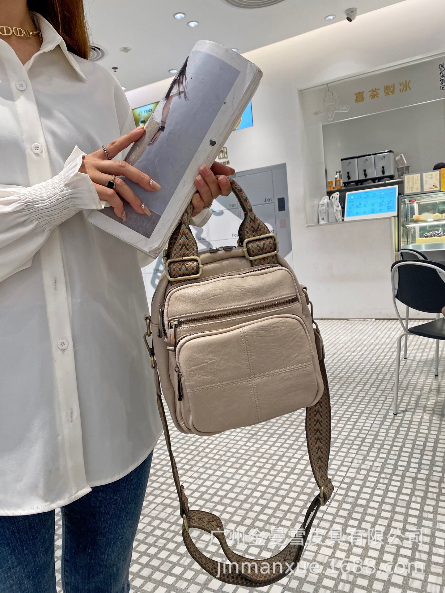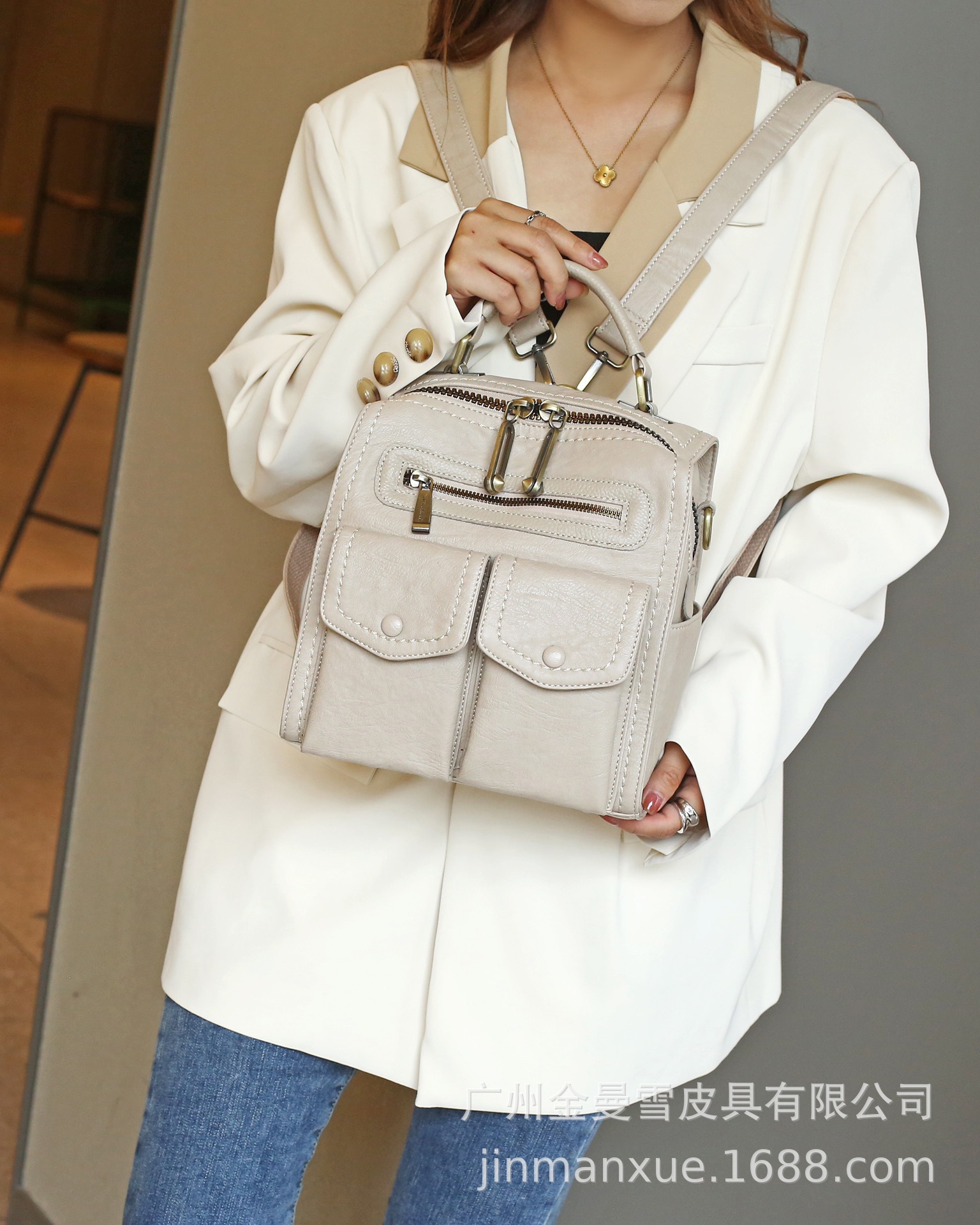 2025년 신상 양가죽 오트밀 애플 오리지널 컬리지 스타일 레트로 심플 크로스백 캐주얼 숄더백 백팩스토어 가기