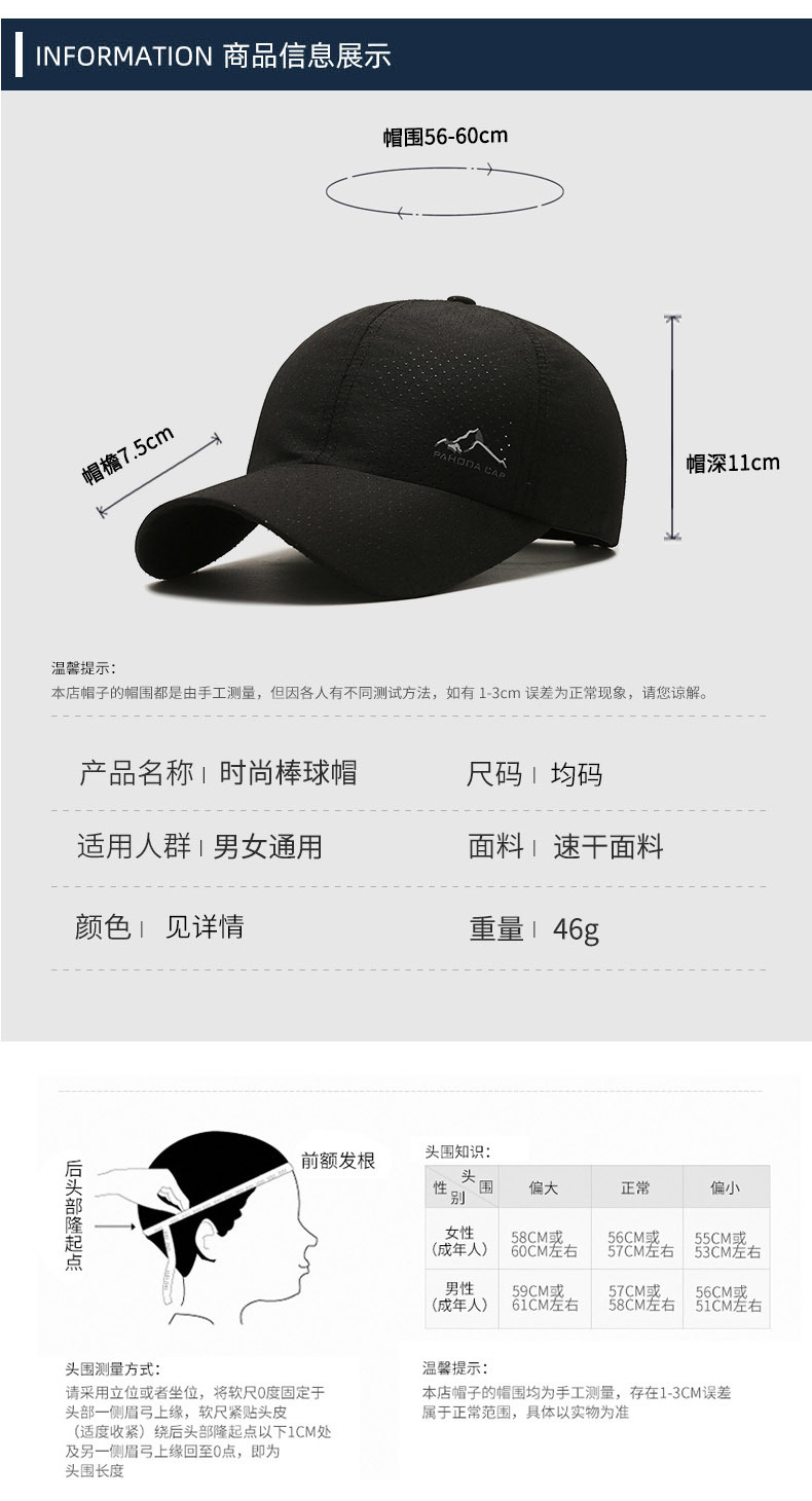 여름 속건 야구 모자, 산 피크 프린트 펀치 캡, 야외 스포츠 및 레저용 태양 모자, 국경 간 생방송스토어 가기