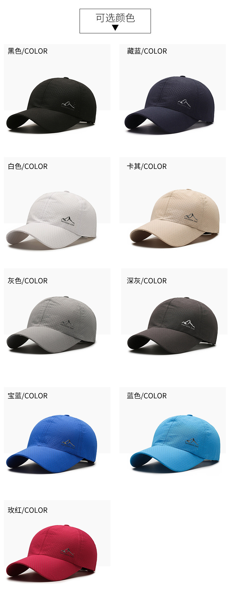 여름 속건 야구 모자, 산 피크 프린트 펀치 캡, 야외 스포츠 및 레저용 태양 모자, 국경 간 생방송