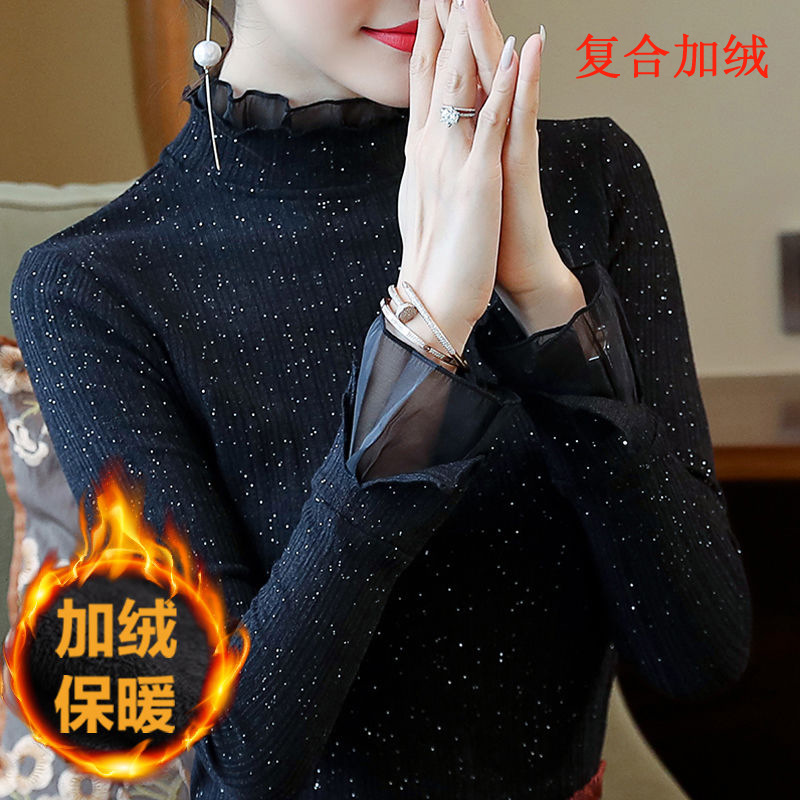 [얇은/기모] 2024 새로운 가을 바지 셔츠 유행 내부 셔츠 긴팔 여성 티셔츠 가을과 겨울 탑스토어 가기