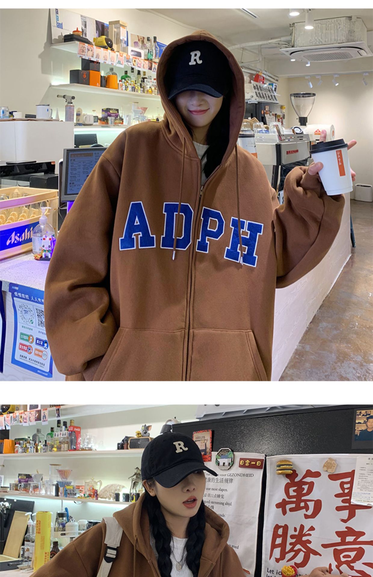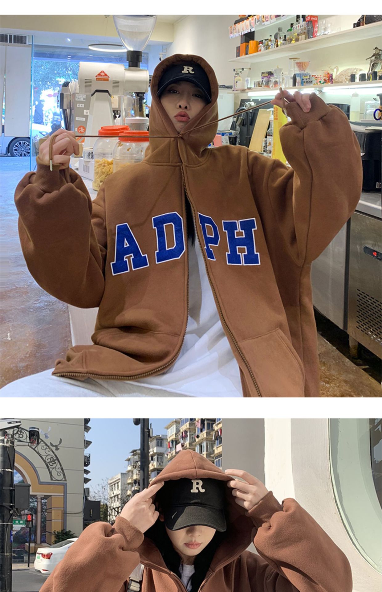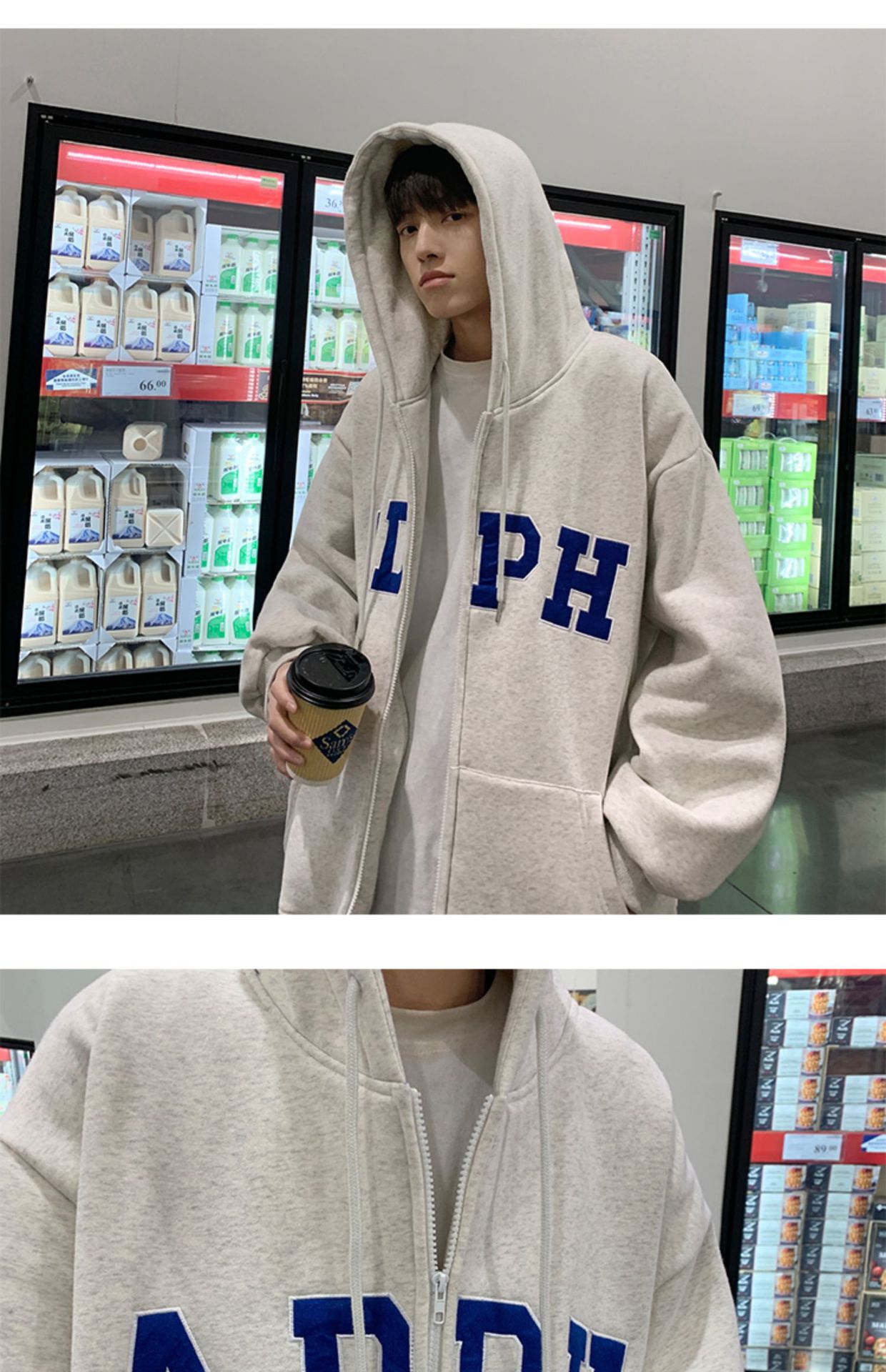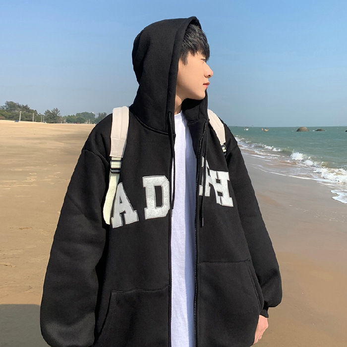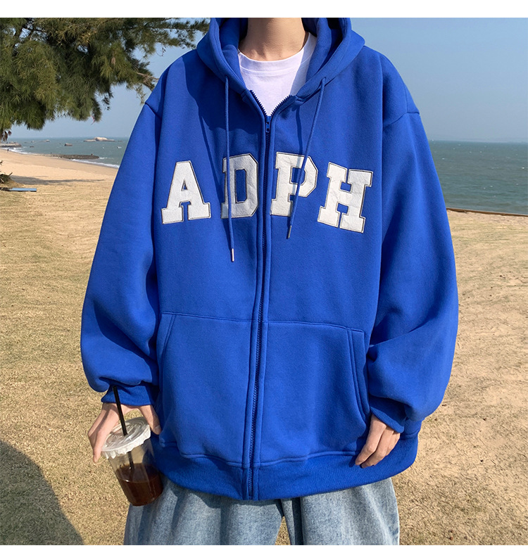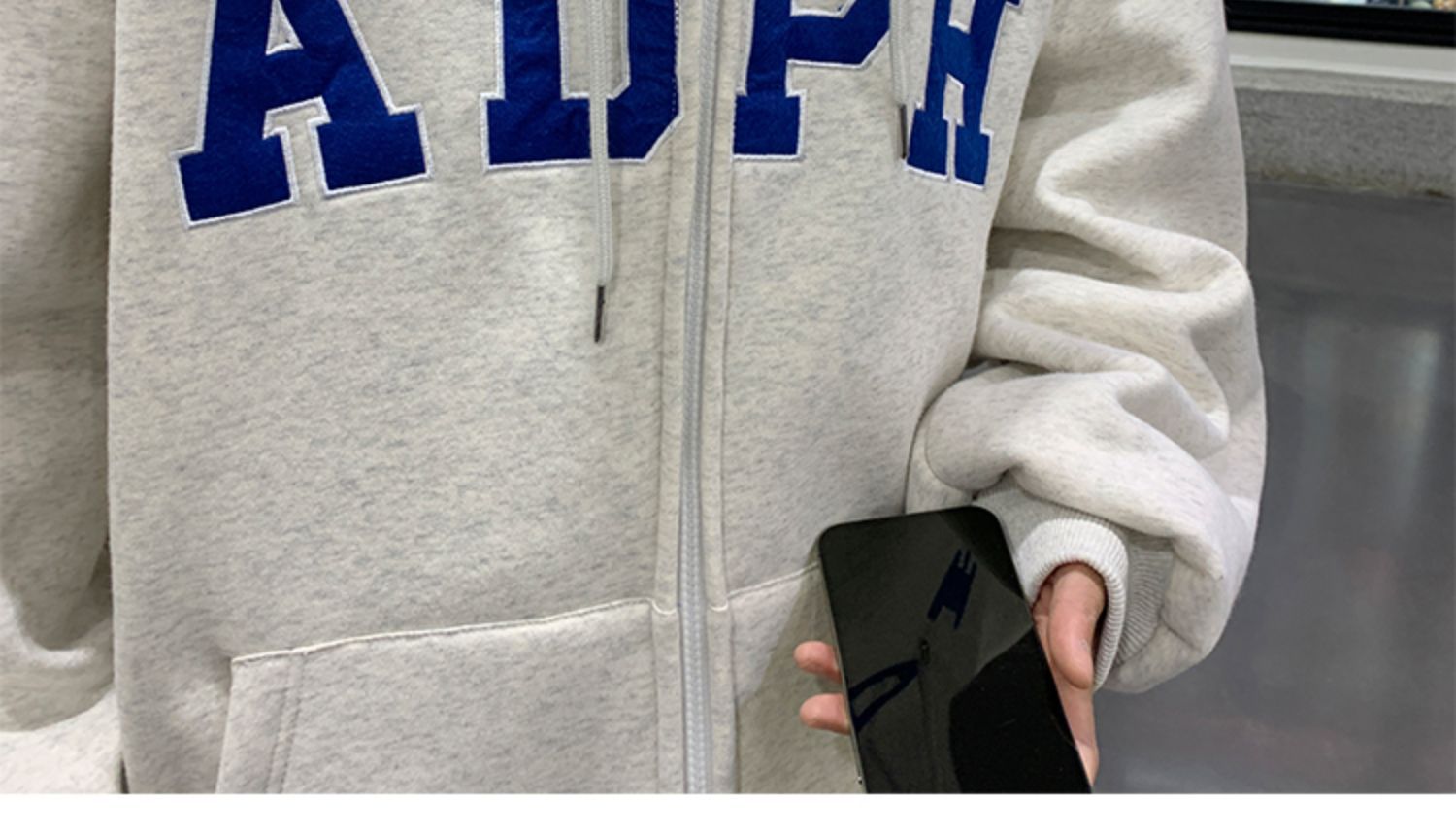 미국 스웨터 코트 남자의 가을과 겨울 패션 브랜드 느슨한 기모 겨울 2024 새로운 후드 지퍼 카디건 옷스토어 가기