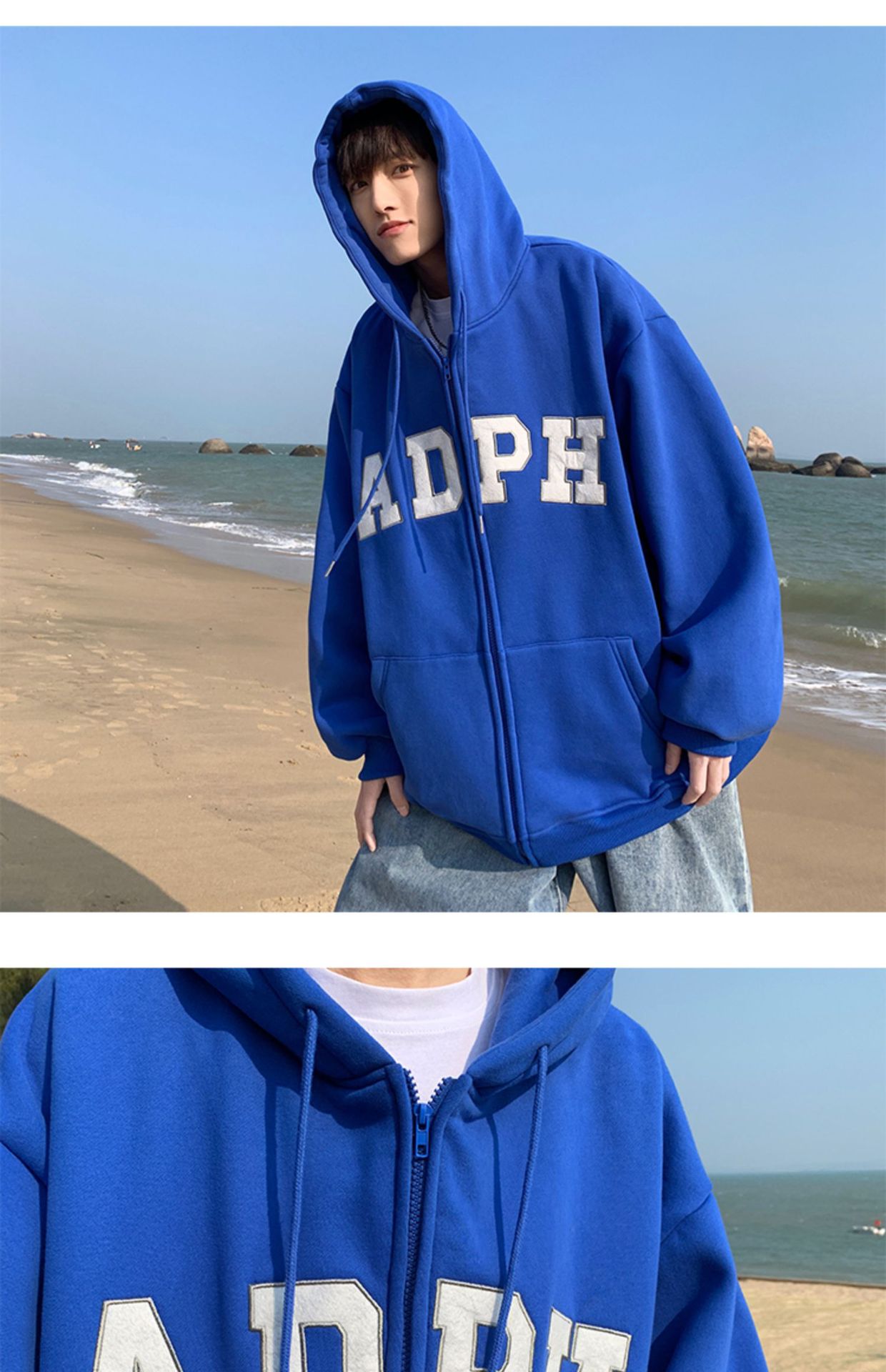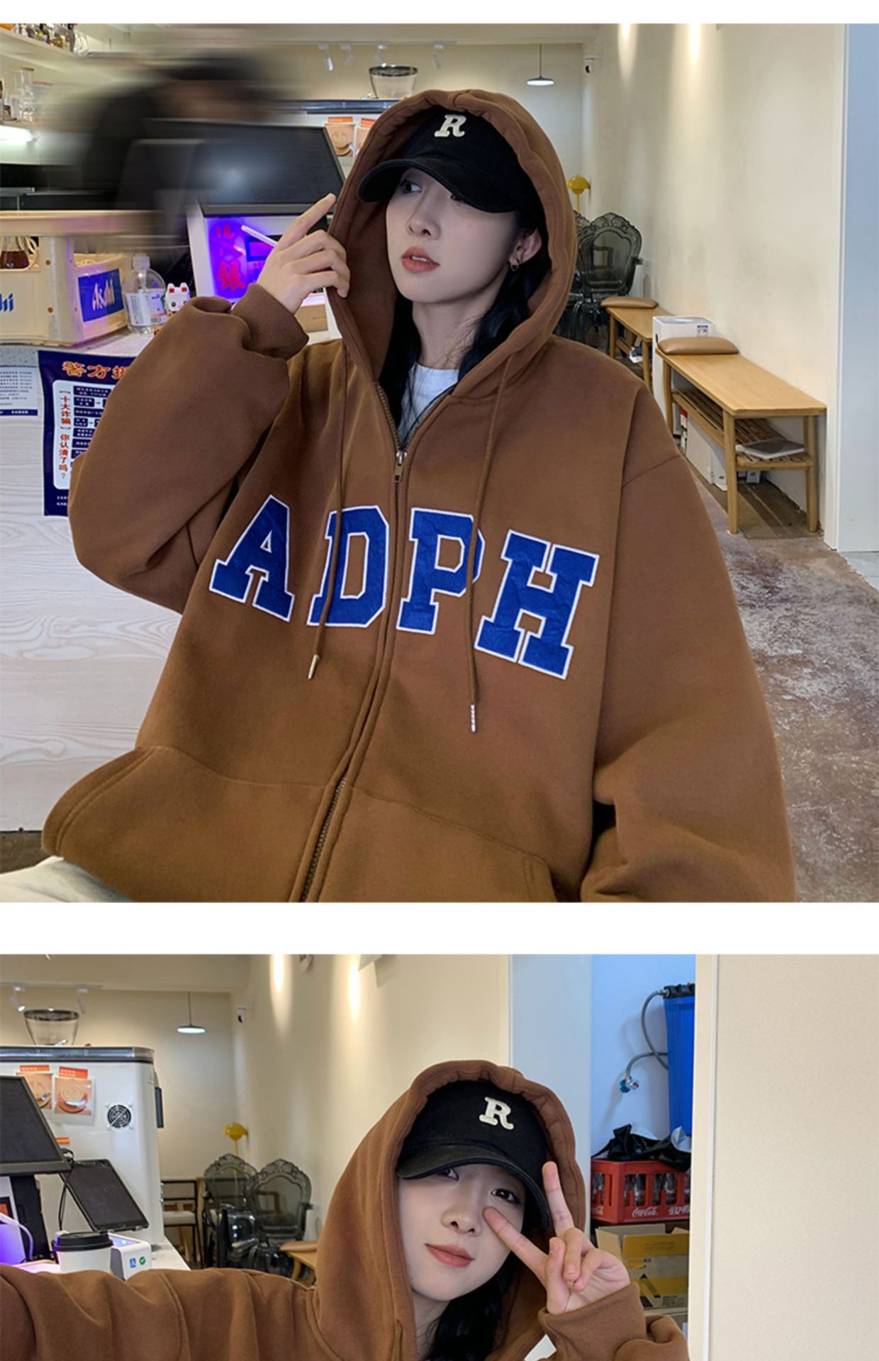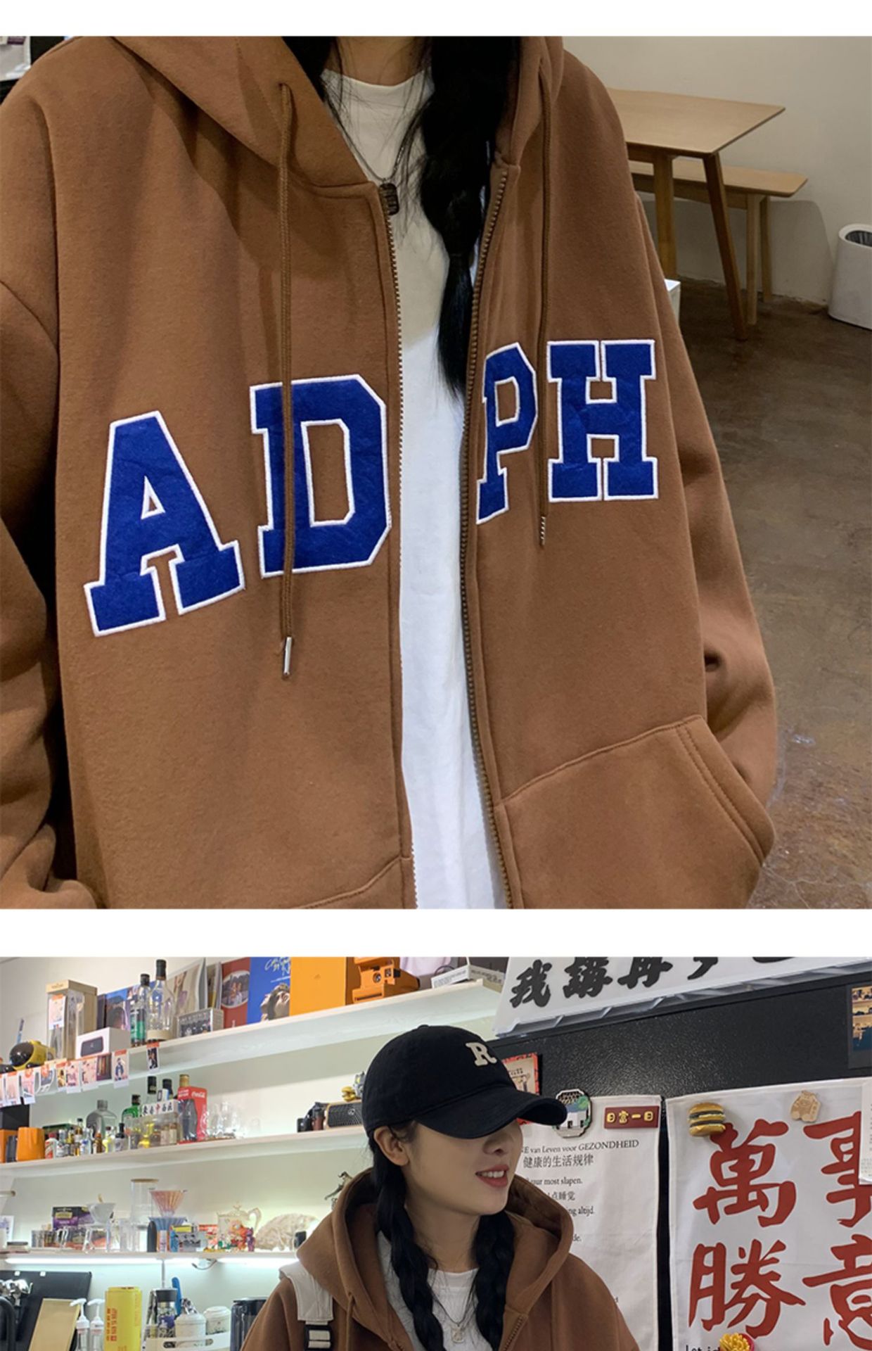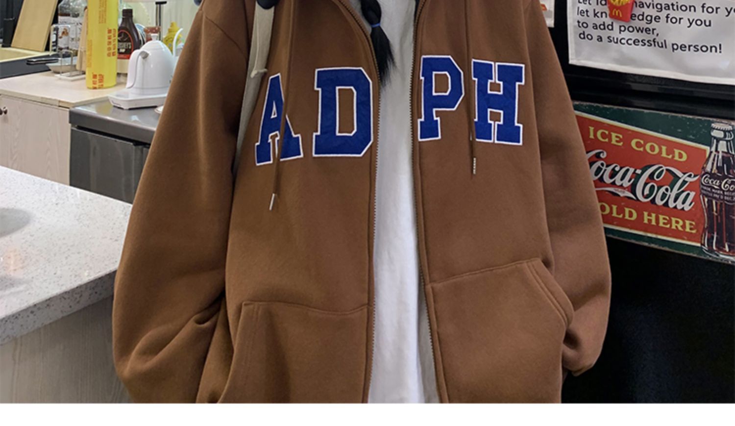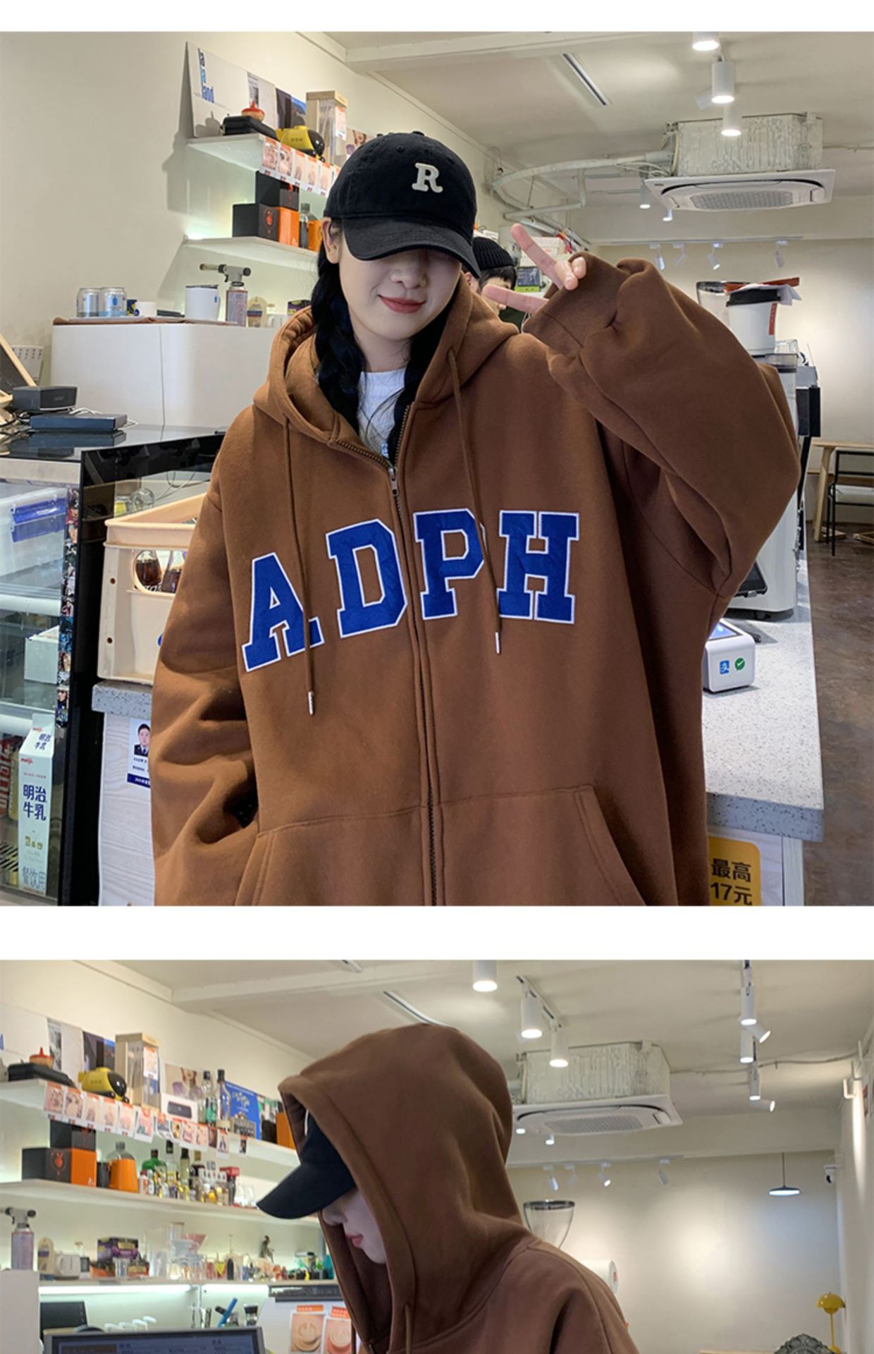미국 스웨터 코트 남자의 가을과 겨울 패션 브랜드 느슨한 기모 겨울 2024 새로운 후드 지퍼 카디건 옷스토어 가기