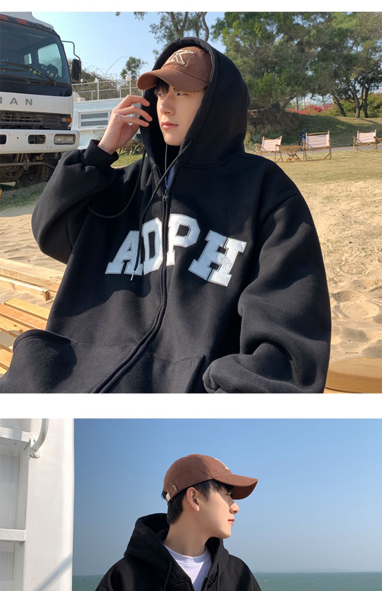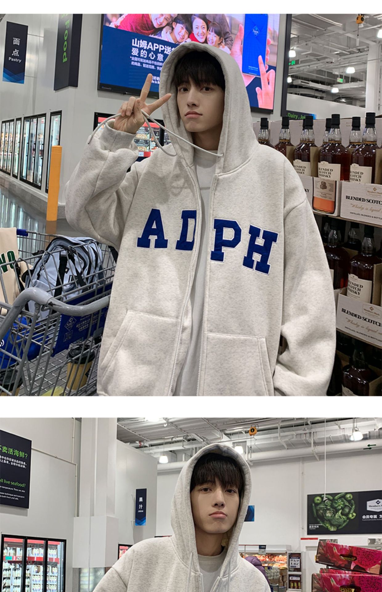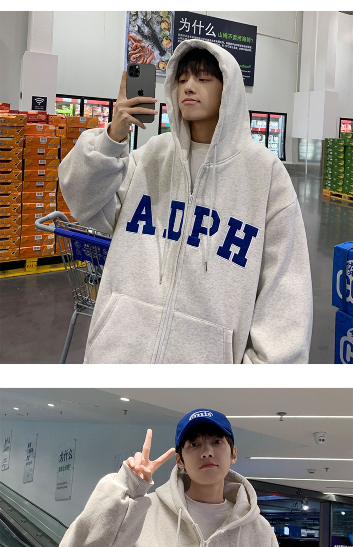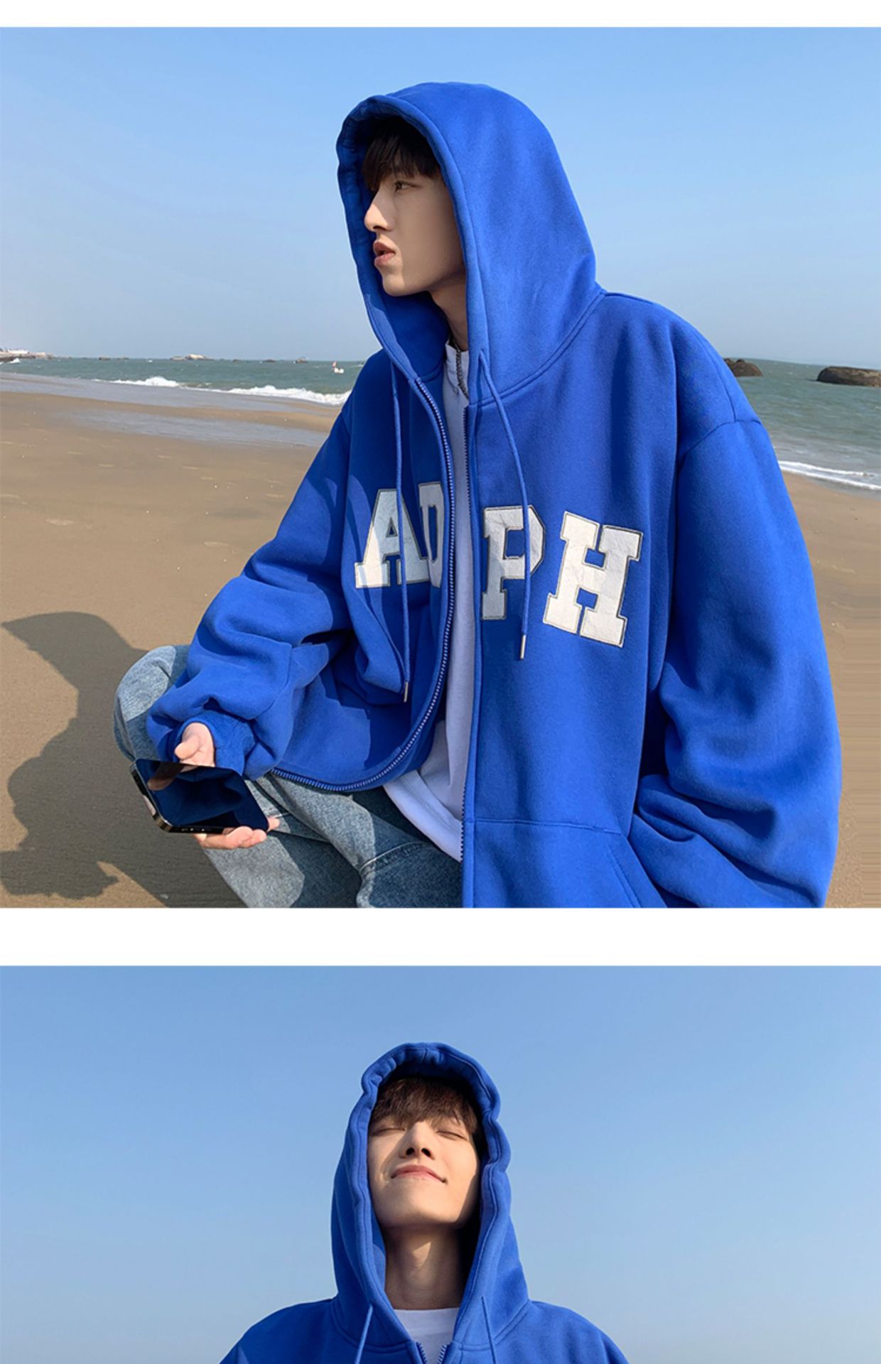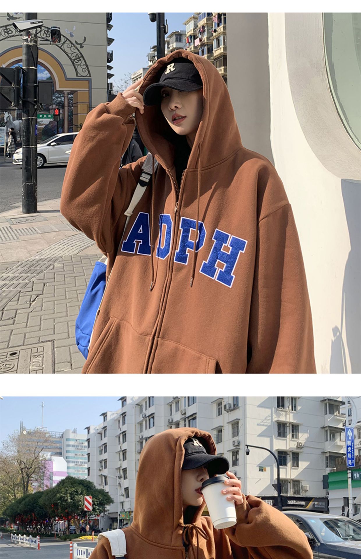 미국 스웨터 코트 남자의 가을과 겨울 패션 브랜드 느슨한 기모 겨울 2024 새로운 후드 지퍼 카디건 옷스토어 가기